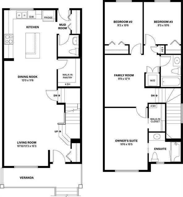 Midtown – 106 Midgrove Greenway SW: QUICK POSSESSION available. This Cascade model built by Shane Homes is a 1,596 sq ft. two-storey paired home with 3 bedrooms and 2.5 bathrooms and a double detached garage. This 1,584 sq ft 2 storey home features an open main floor with front entry coat closet & rear mudroom with closet; a spacious living room with large window; kitchen with stainless steel appliances, a walk-in pantry and island and a central dining area and 2 pc powder room. The upper level features a large primary bedroom with walk-in closet and 3 pc ensuite with walk-in shower; 2 additional bedrooms; bonus room; 4 pc main bathroom and stacked upper level laundry. Situated in Midtown of Airdrie, just steps away from the pond, pedestrian bridge, promenade with shops, and nearby schools. Airdrie is less than 20 mins to the Calgary airport, less than 10 mins to the QE II, and 15 mins to north Calgary. Other homes, pre-construction & new construction are available through the showhome at 1 Midgrove Lane. Showhome Hours: Monday – Thursday: 2:00 – 8:00 PM. Weekends & Holidays: 12:00 – 5:00 PM. Call for more info! Builder Size: 1,636 sq ft. RMS based on blueprints provided by the builder: 1,596 sq ft. 3-D tour from the showhome.