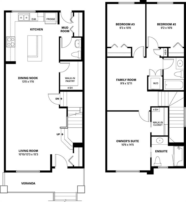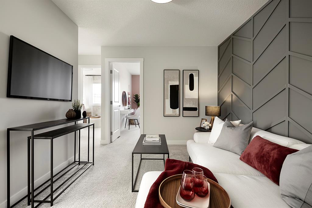Midtown – 110 Midgrove Greenway SW: QUICK POSSESSION available. Introducing the Cascade model built by Shane Homes. This 1,584 sq ft two-storey paired home includes 3 bedrooms, 2.5 bathrooms and a detached double car garage. This home features an open main floor with front entry coat closet; spacious living room with large window; kitchen with stainless steel appliances, walk-in pantry and island and a central dining area and 2 pc powder room. The upper level has a spacious primary bedroom with walk-in closet and 3 pc ensuite with walk-in shower; 2 additional bedrooms in the rear of the home; a bonus room; 4 pc main bathroom and stacked laundry. Situated in Midtown of Airdrie, just steps away from the pond, pedestrian bridge, promenade with shops, and nearby schools. Airdrie is less than 20 mins to the Calgary airport, less than 10 mins to the QE II, and 15 mins to north Calgary. Other homes, pre-construction & new construction are available through the showhome at 1 Midgrove Lane. Showhome Hours: Monday – Thursday: 2:00 – 8:00 PM. Weekends & Holidays: 12:00 – 5:00 PM. Call for more info! Builder Size: 1,624 sq ft. RMS based on blueprints provided by the builder: 1,584 sq ft. Photos and 3-D tour from the showhome.