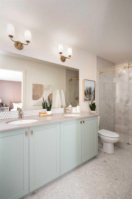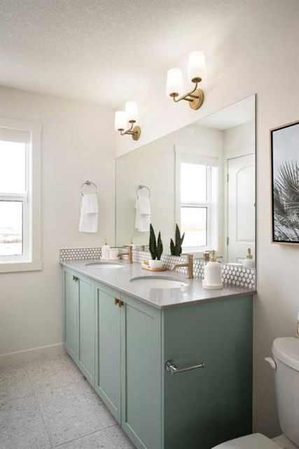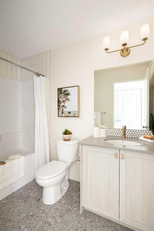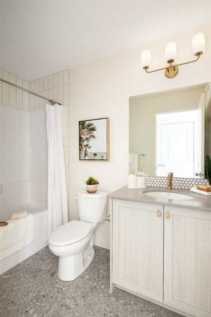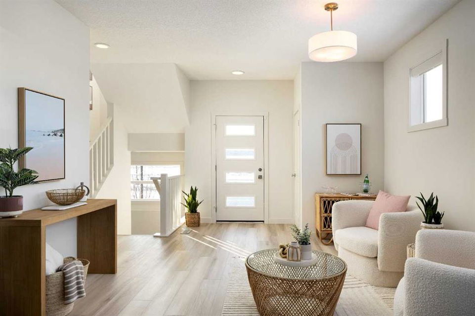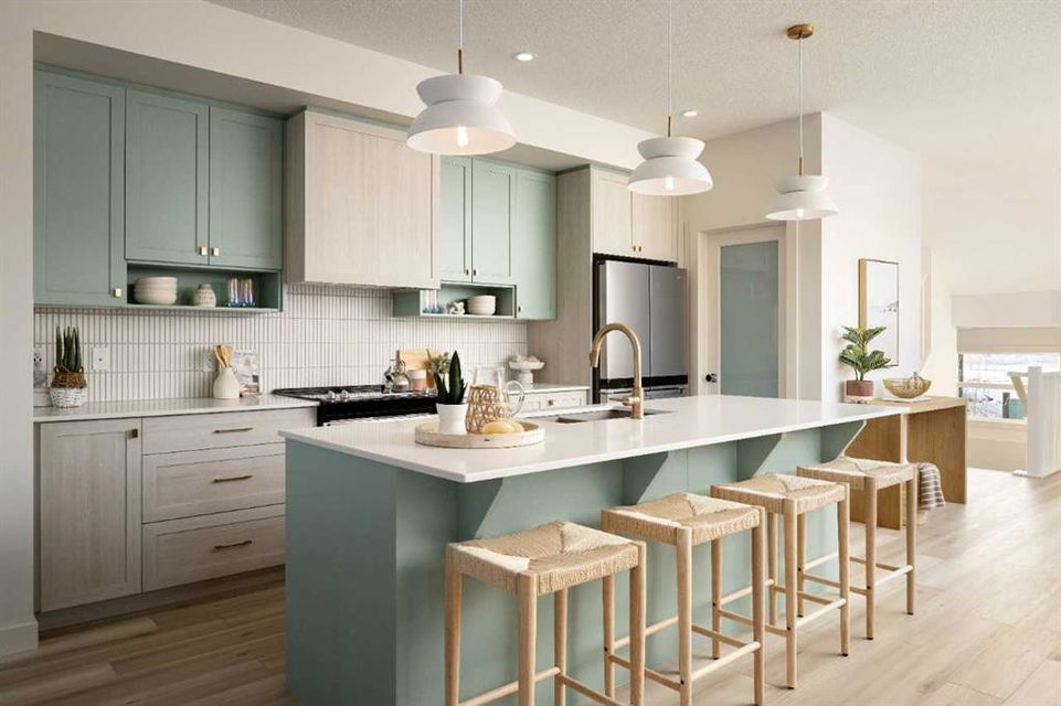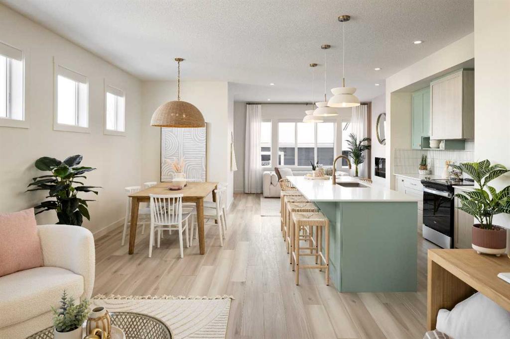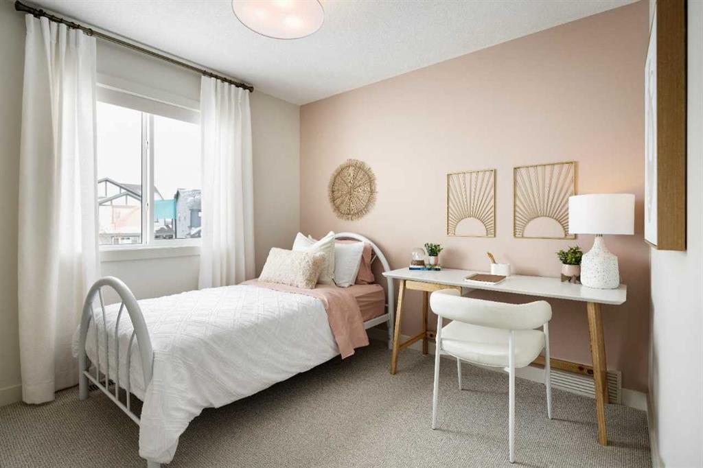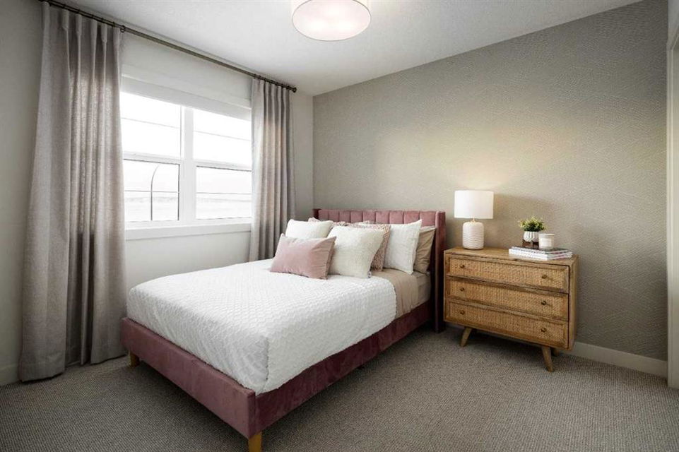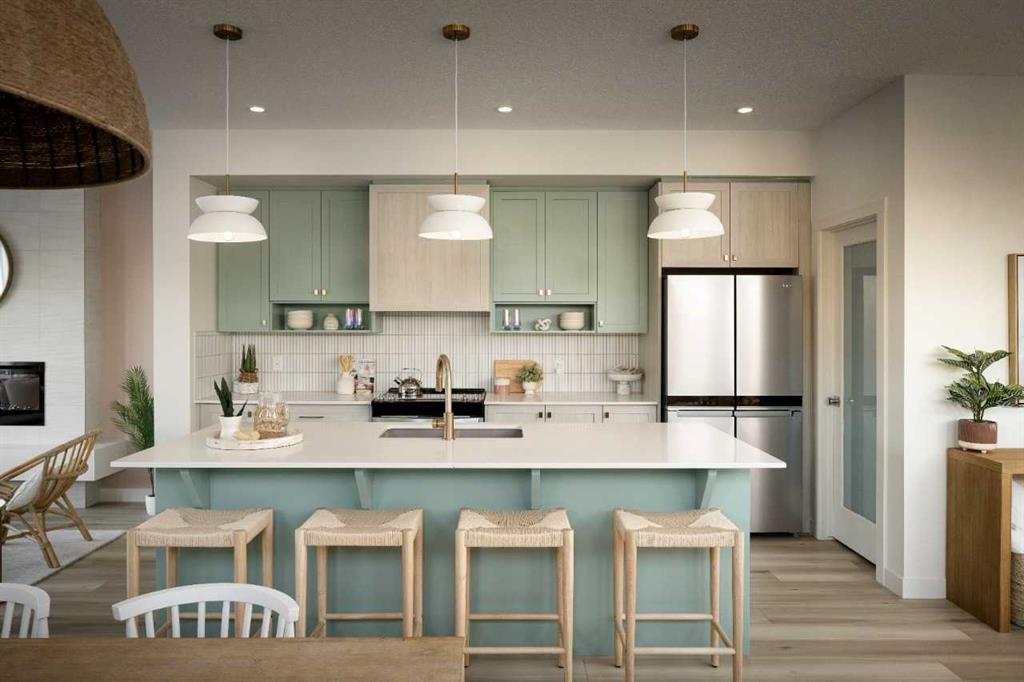 Welcome to the Kingston Showhome in Vermilion Hill, by Shane Homes! This 1,730 sq. ft. two-story home offers 3 bedrooms, 2.5 bathrooms, and a 2-car garage. The Prairie Elevation adds timeless curb appeal, while Luxury Vinyl Plank (LVP) flooring and upgraded lighting enhance the interior. The main floor features a larger dining nook, central island, built-in pantry, and added cabinetry for extra storage and functionality. The open-concept living room includes an electric fireplace and leads to a private rear deck with a glass railing. Upstairs, the owner’s bedroom is designed for luxury, with a double vanity, tiled shower, tub, and walk-in closet. Two additional bedrooms and 9′ basement ceilings complete the home. Furniture / Art & Accessories are available for purchase at an additional cost. Photos may be representative.
