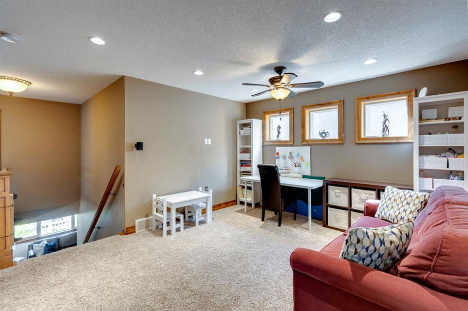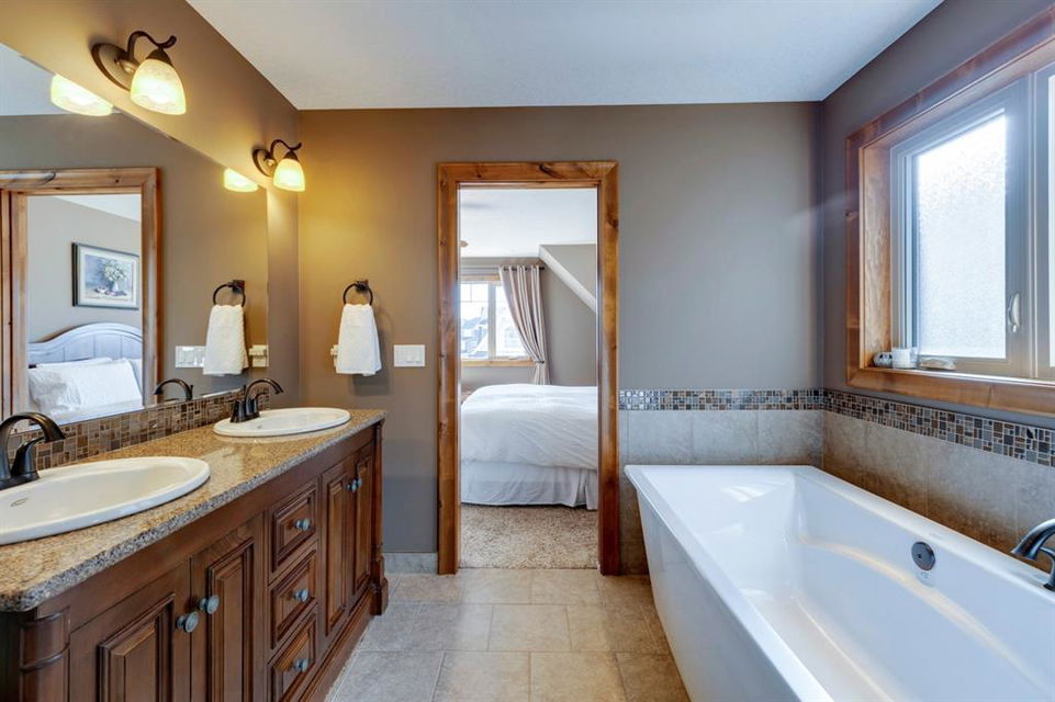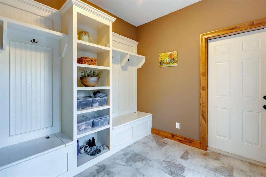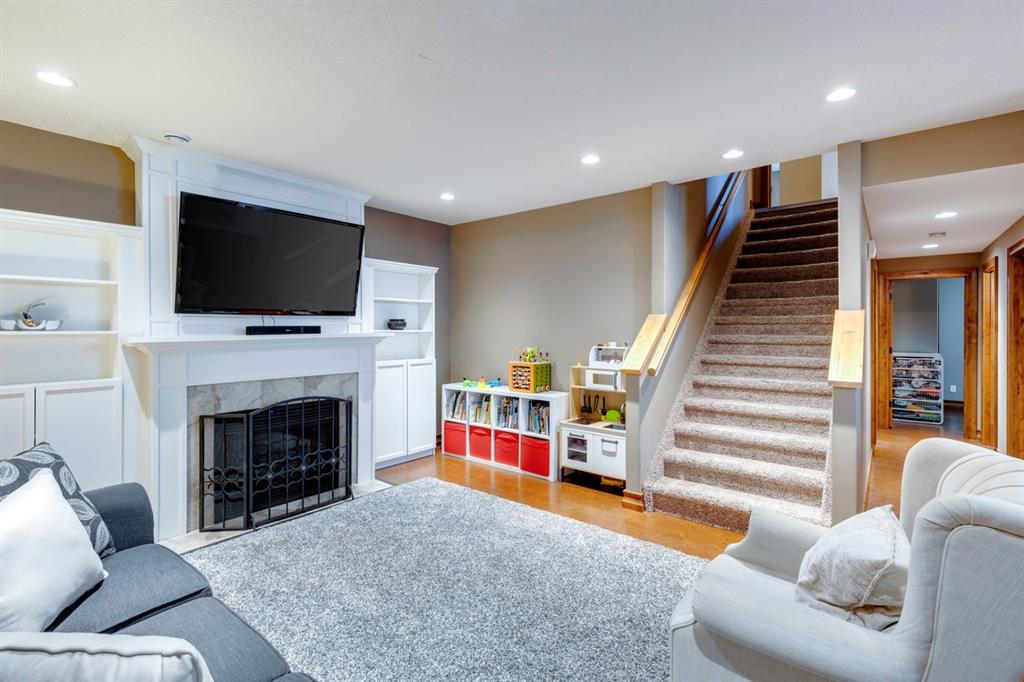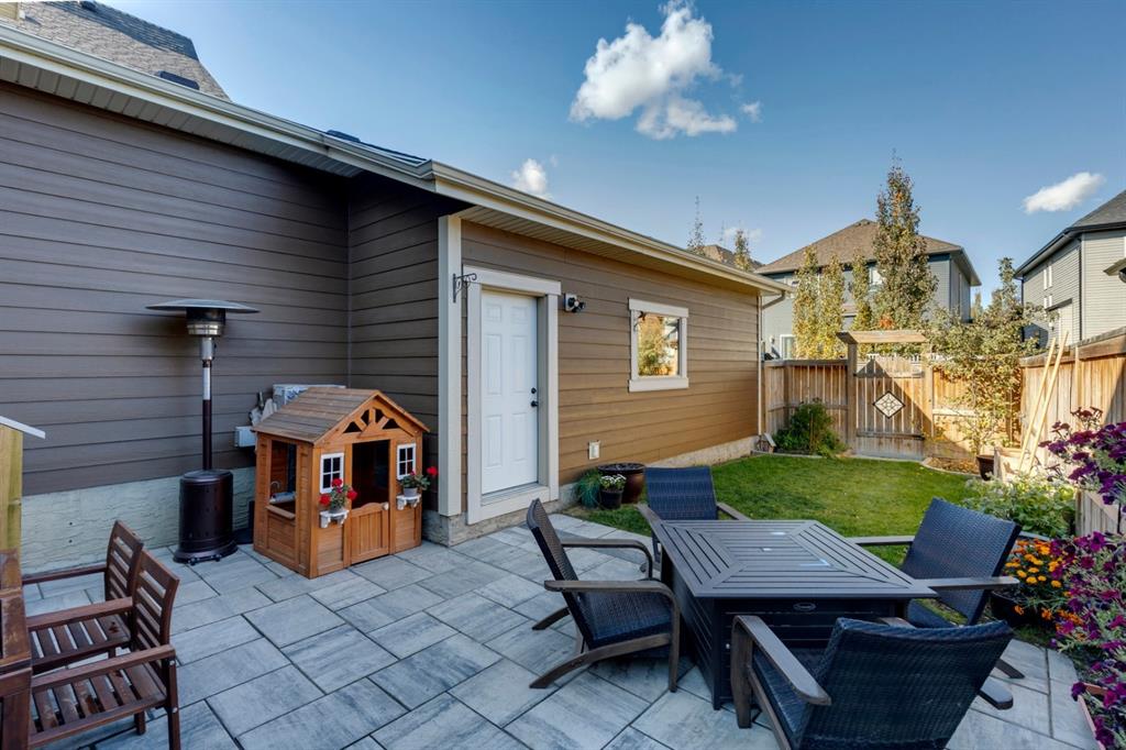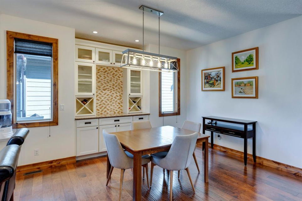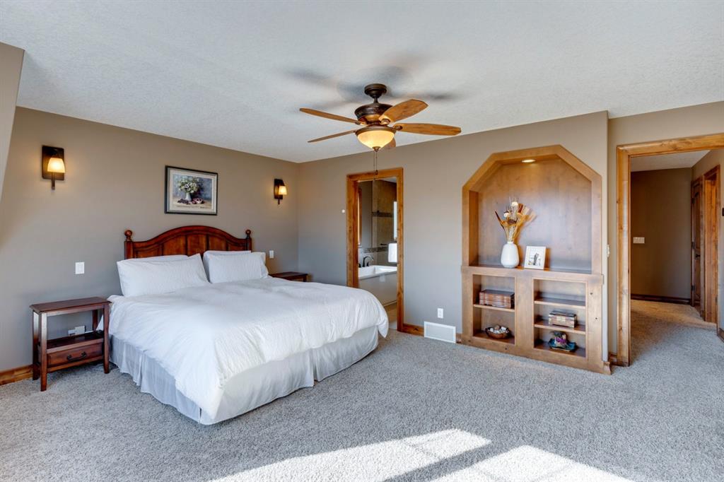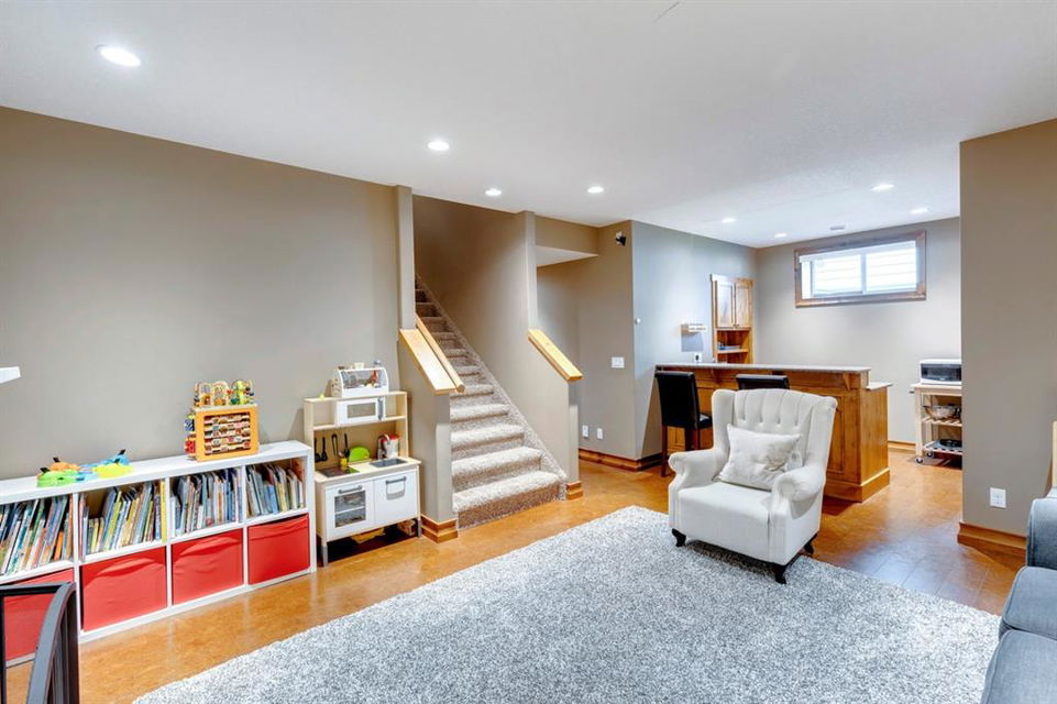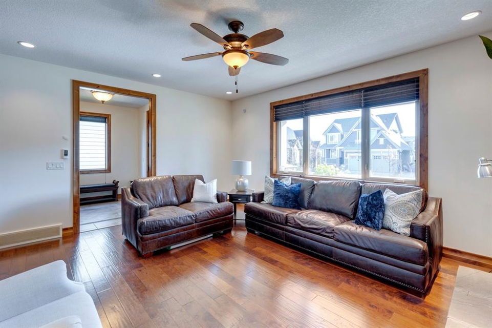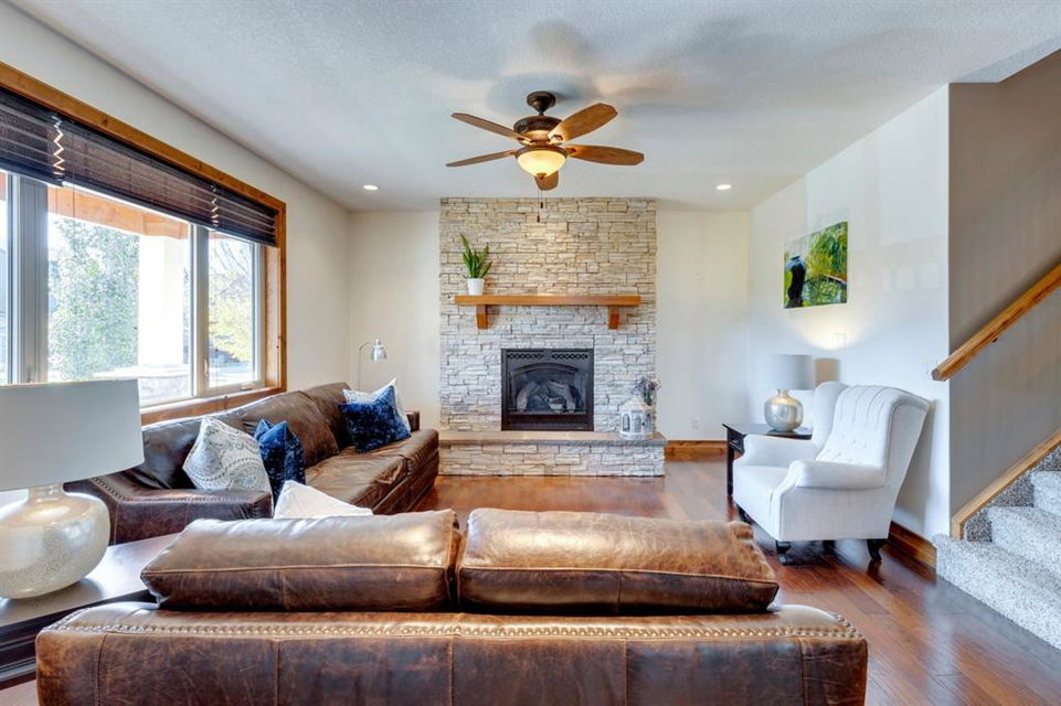 Coopers Crossing – 1146 Coopers Drive SW: Welcome to this extraordinary, custom-built 2,501 square foot home in the prestigious community of Coopers Crossing. This mountain-style home with 3 + 2 bedrooms, 3.5 bathrooms and a fully developed lower level. The warm and inviting main floor showcases the home’s style with a beautiful stone surround gas fireplace in the living room opens to the large dining area and kitchen. The bright and modern kitchen features stainless steel appliances, quartz countertops, island with an eating bar; large walk-in pantry; a home office with custom cabinetry and built-in desk; a powder room and mudroom with built-in lockers. From here enter the oversized, heated, double car garage with additional workshop & storage areas. The upper floor’s impressive & bright primary bedroom features grand windows, a large walk-in closet & 5-piece ensuite. The upstairs includes two additional large bedrooms with walk-in closets and a spacious bonus room; a 4-piece main bathroom and a laundry room with sink. The fully developed 1,048 square foot lower level features a family room with built-in gas fireplace, wet bar with beverage fridge and dishwasher; 2 additional bedrooms and 3-piece bathroom. Step outside and spend time on the sunny front porch surrounded by an English garden with an easily programmable irrigation system. In the fully fenced, landscaped, low-maintenance backyard enjoy; the deck with eating bar & BBQ area and lower stone patio for dining & entertaining. This immaculate home shows pride of ownership, quality of construction and is steps away from parks, playgrounds, schools and a short drive to Calgary. Quick Possession available. Call for more info!