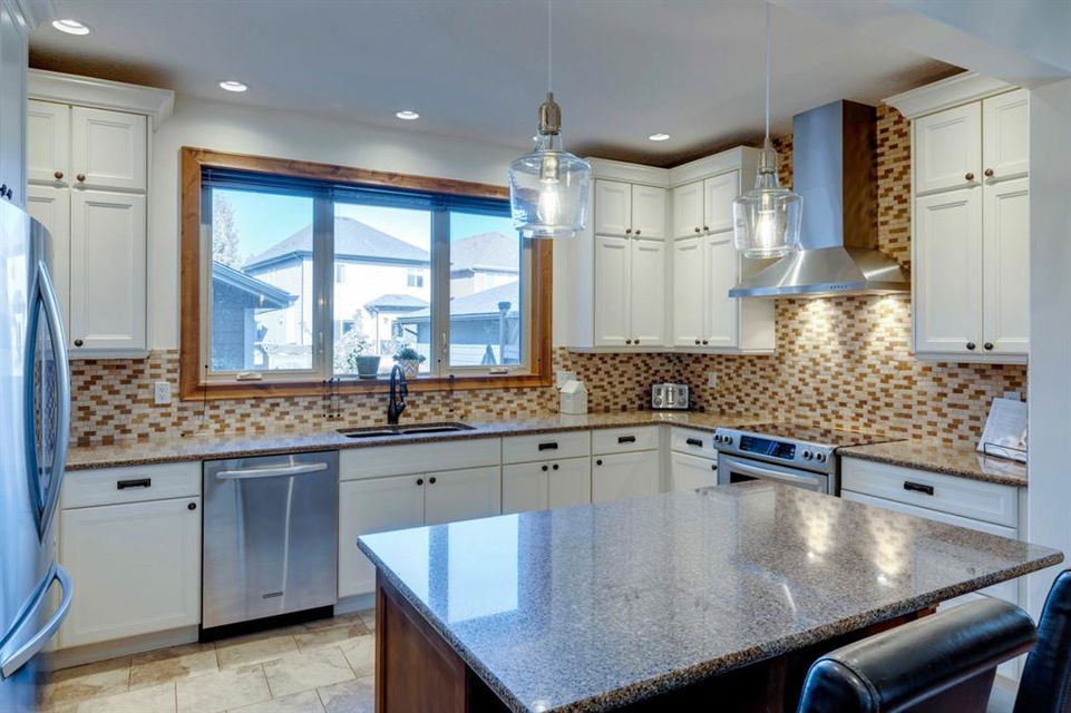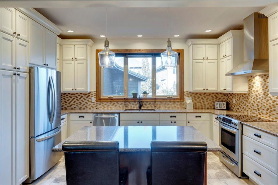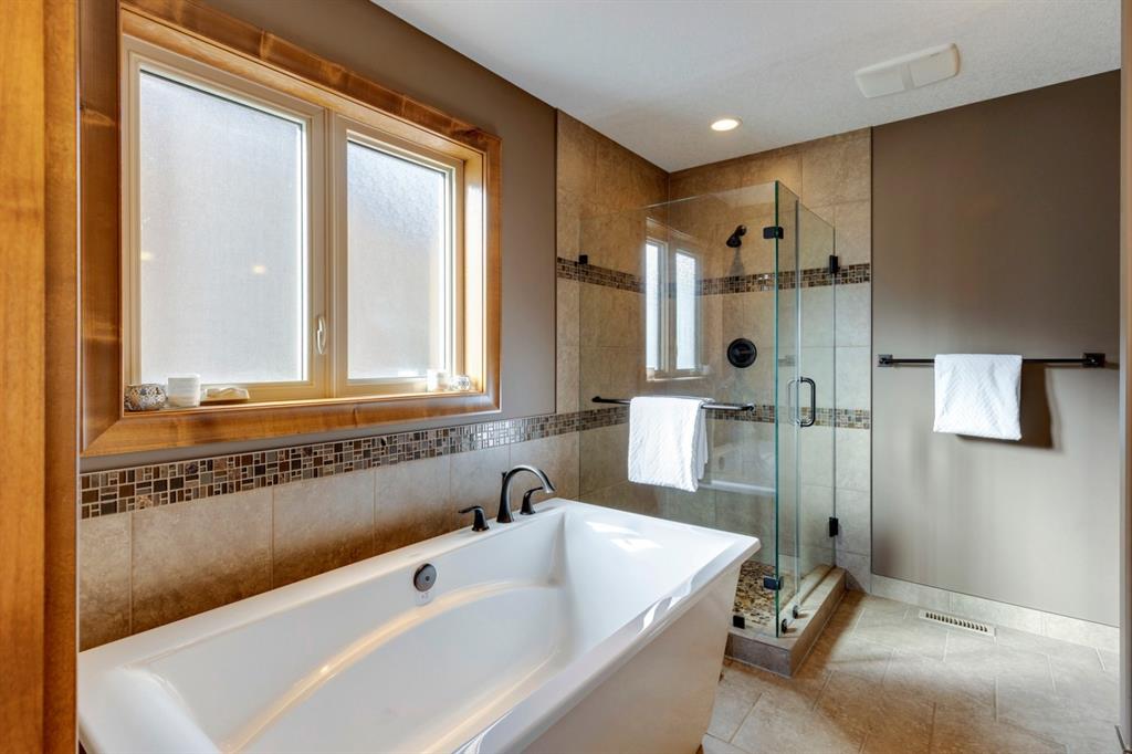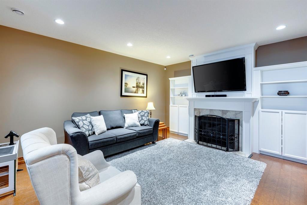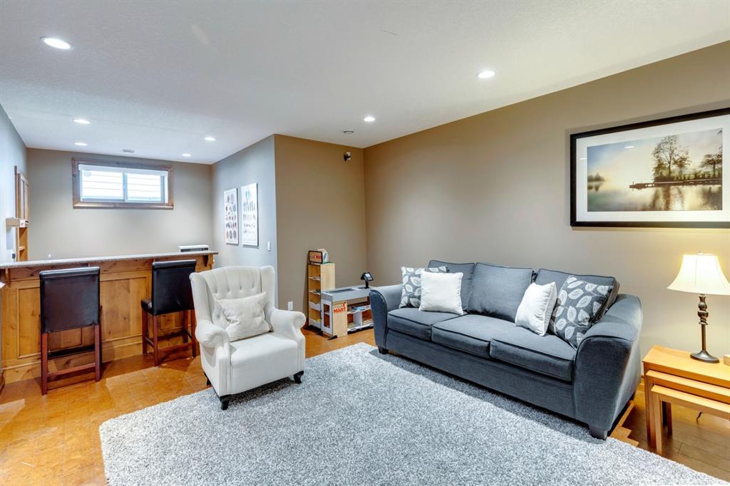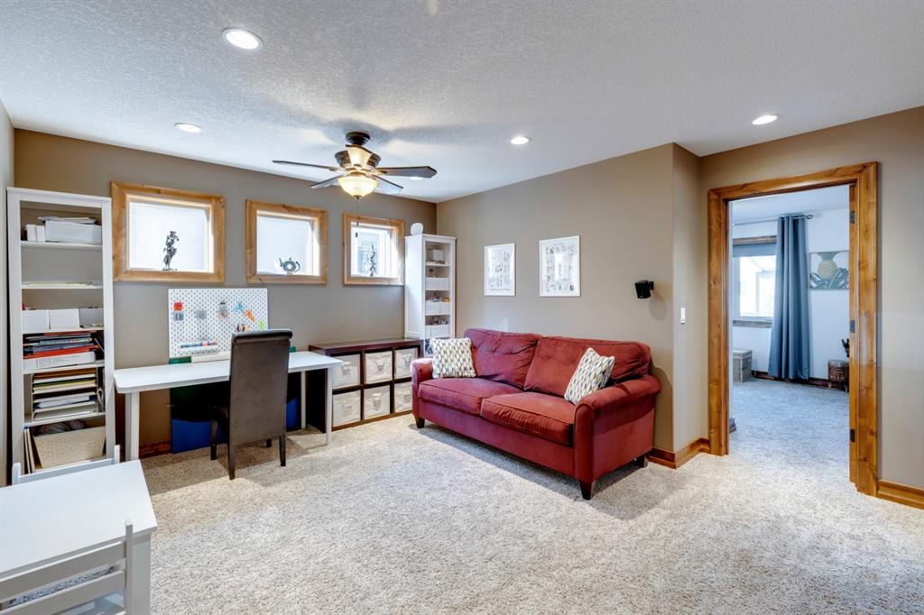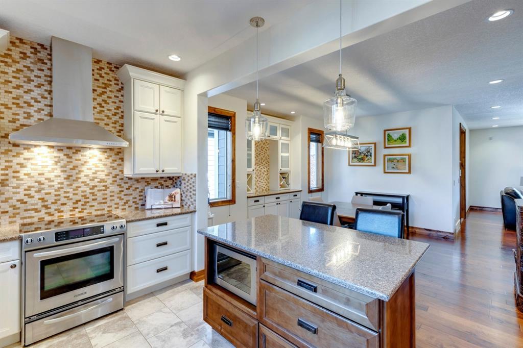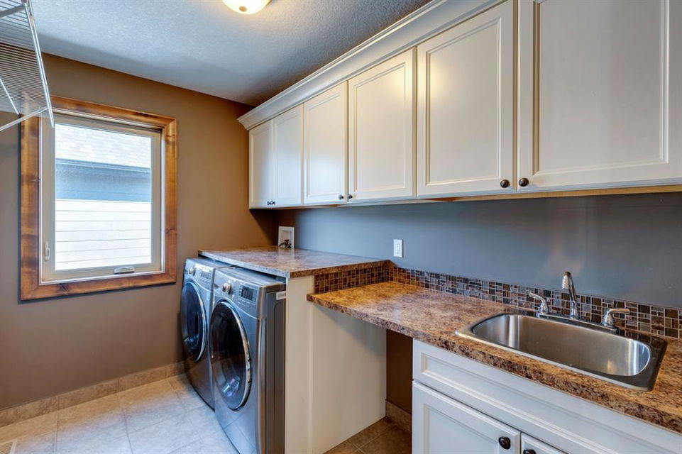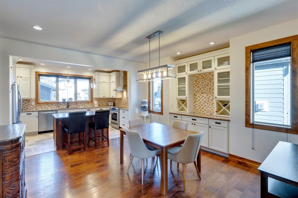 Coopers Crossing – 1146 Coopers Drive SW: Welcome to this extraordinary, custom-built 2,501 square foot home in the prestigious community of Coopers Crossing. This mountain-style home with 3 + 2 bedrooms, 3.5 bathrooms and a fully developed lower level. The warm and inviting main floor showcases the home’s style with a beautiful stone surround gas fireplace in the living room opens to the large dining area and kitchen. The bright and modern kitchen features stainless steel appliances, quartz countertops, island with an eating bar; large walk-in pantry; a home office with custom cabinetry and built-in desk; a powder room and mudroom with built-in lockers. From here enter the oversized, heated, double car garage with additional workshop & storage areas. The upper floor’s impressive & bright primary bedroom features grand windows, a large walk-in closet & 5-piece ensuite. The upstairs includes two additional large bedrooms with walk-in closets and a spacious bonus room; a 4-piece main bathroom and a laundry room with sink. The fully developed 1,048 square foot lower level features a family room with built-in gas fireplace, wet bar with beverage fridge and dishwasher; 2 additional bedrooms and 3-piece bathroom. Step outside and spend time on the sunny front porch surrounded by an English garden with an easily programmable irrigation system. In the fully fenced, landscaped, low-maintenance backyard enjoy; the deck with eating bar & BBQ area and lower stone patio for dining & entertaining. This immaculate home shows pride of ownership, quality of construction and is steps away from parks, playgrounds, schools and a short drive to Calgary. Quick Possession available. Call for more info!