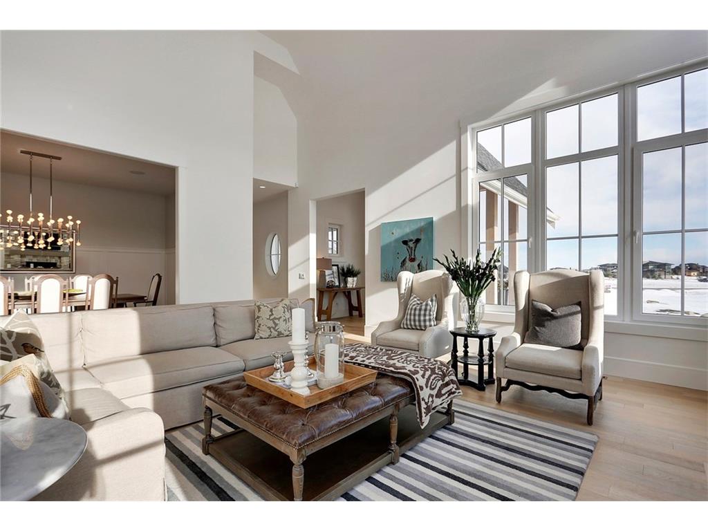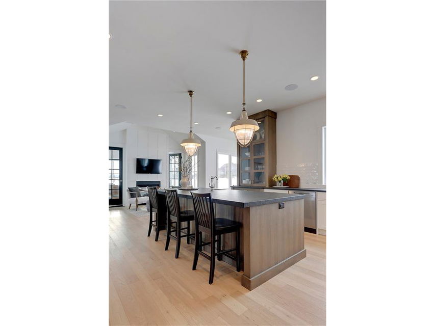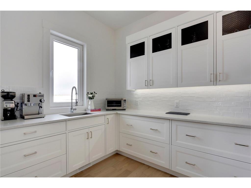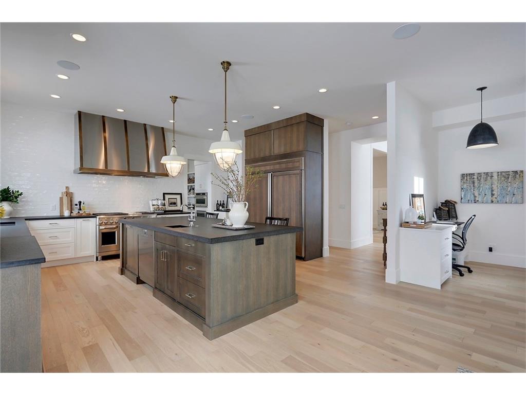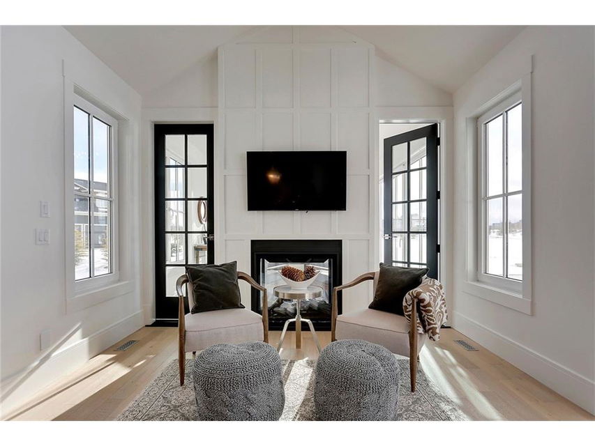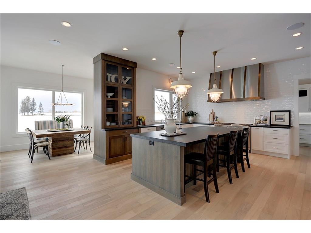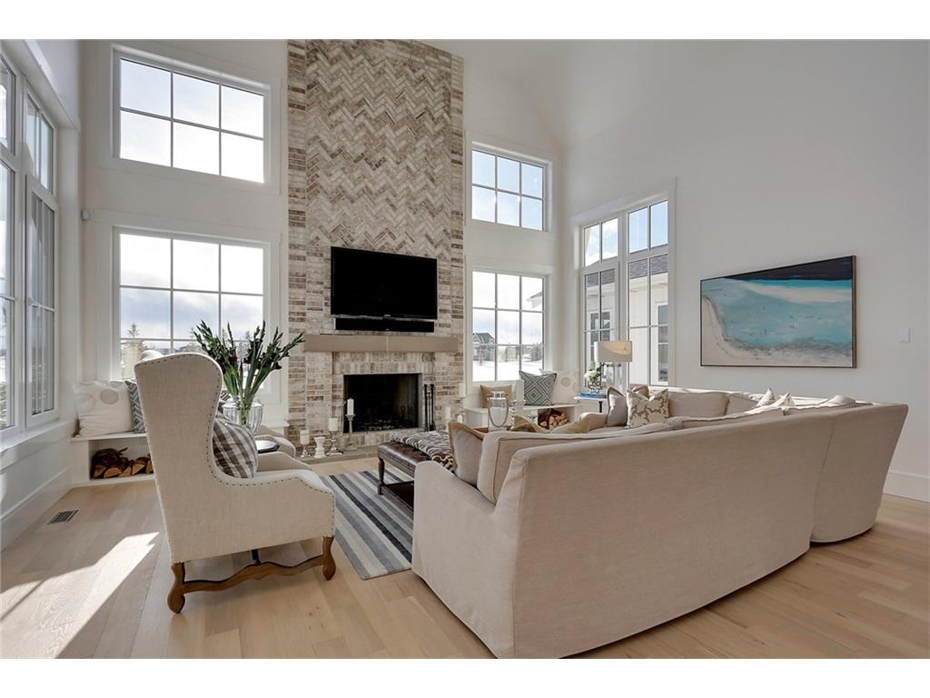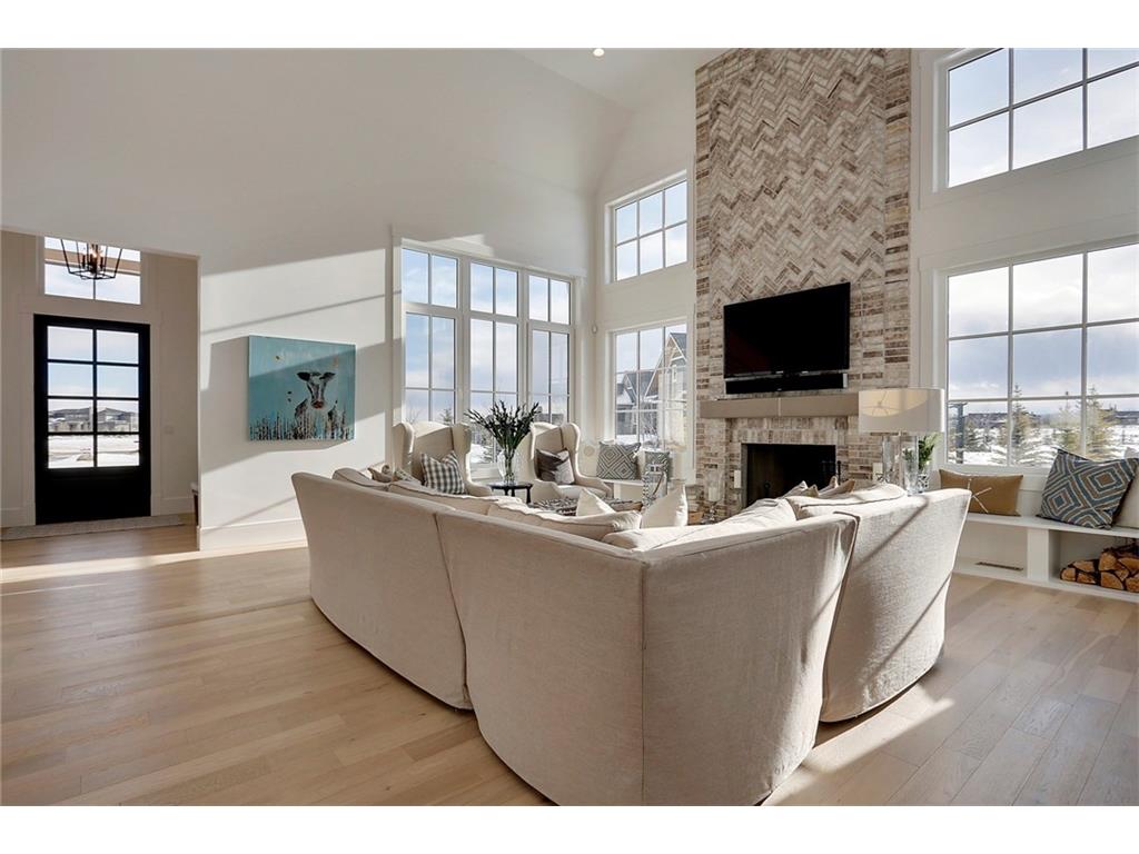 A spacious custom designed family home in Swift Creek Estates built by Stonehenge Homes. Swift Creek is ideally situated with easy access to downtown via Hwy 1, Bow Trail, 17th Ave or Hwy 8.The home is flooded with sunlight and is designed to take it all in. The sunsets and western skies are breathtaking, especially from the large back deck or from inside the stunning sunroom with fireplace. The style inspiration is “Modern Farmhouse” and the result is a “Transitional” style with a blend of clean white lines, modern uncluttered feel, along with some classic, traditional touches. With over 6,700 developed square feet, this is the perfect family home. The layout has a bungalow feel on the main floor. The “entertaining” area is on the SW side of the home and features an impressive living room with 18′ ceilings and massive windows. The chef’s kitchen has a large prep-kitchen/pantry, a social sitting area in front of the fireplace/TV, a homework area and a spacious west-facing nook.
