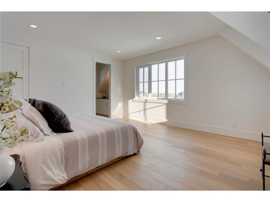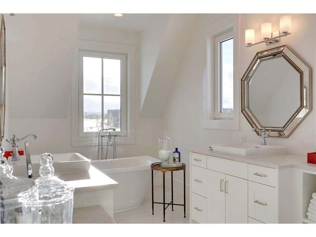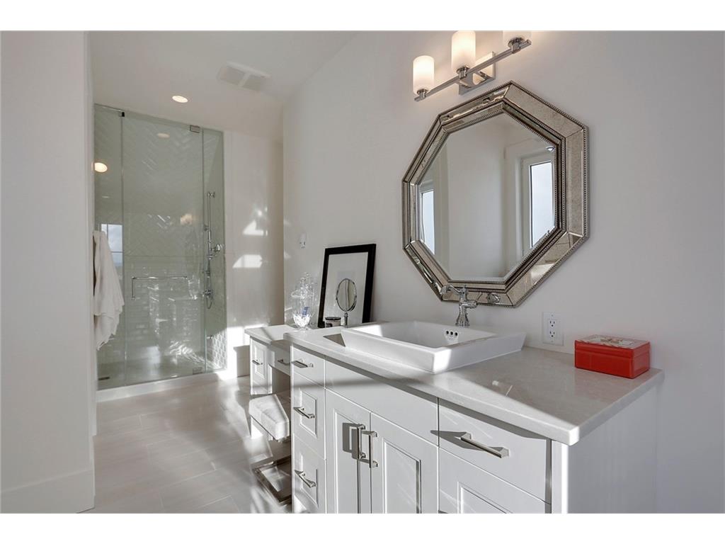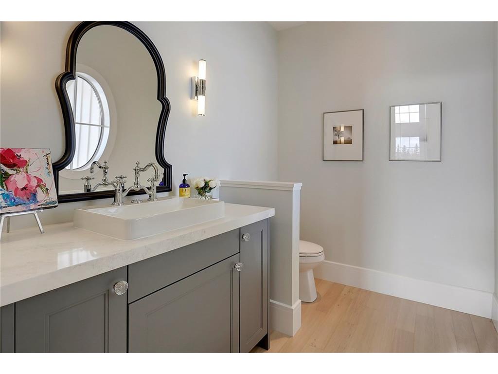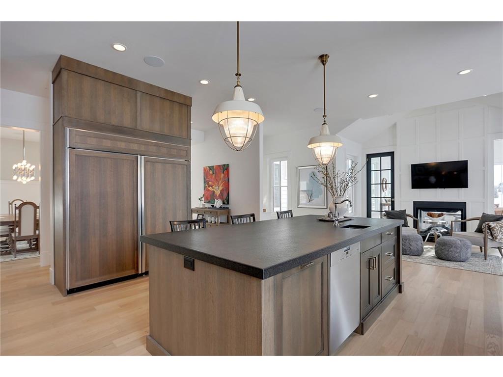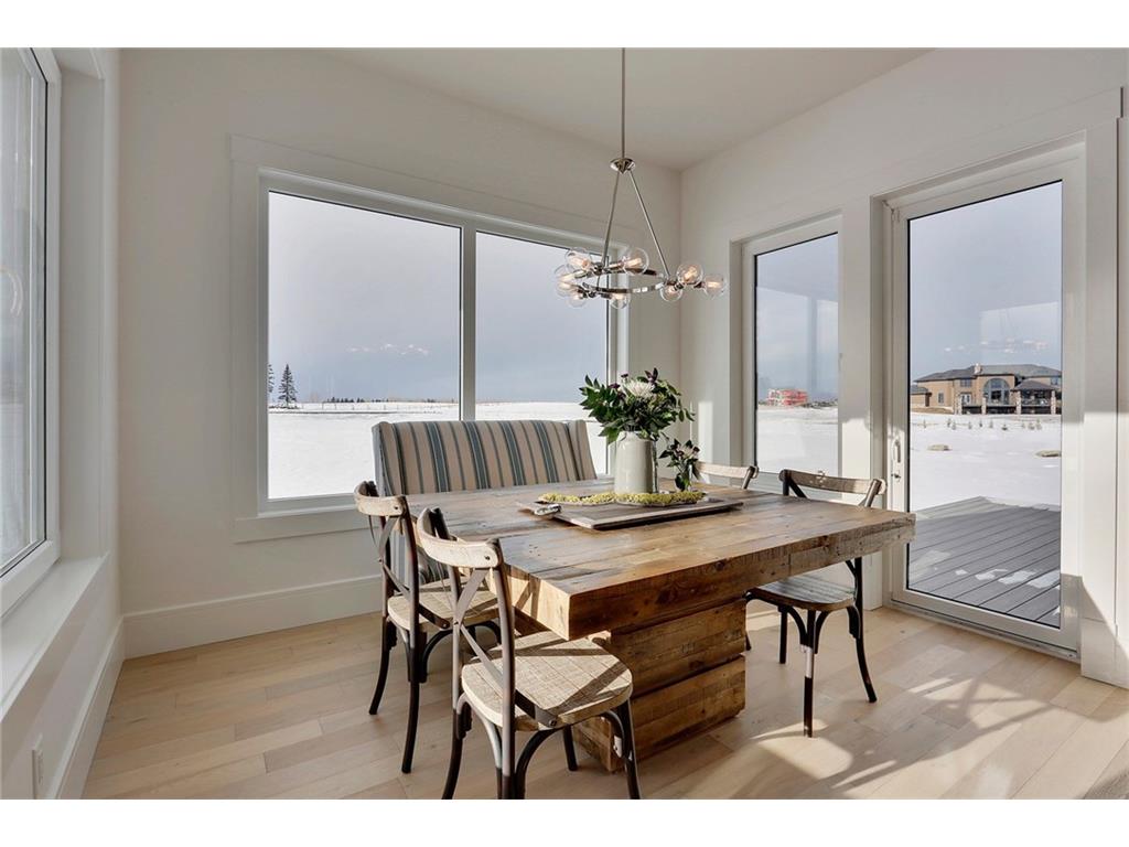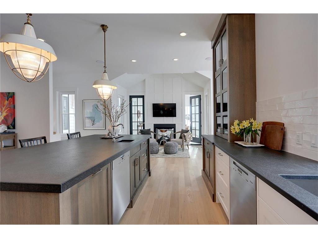 A spacious custom designed family home in Swift Creek Estates built by Stonehenge Homes. Swift Creek is ideally situated with easy access to downtown via Hwy 1, Bow Trail, 17th Ave or Hwy 8.The home is flooded with sunlight and is designed to take it all in. The sunsets and western skies are breathtaking, especially from the large back deck or from inside the stunning sunroom with fireplace. The style inspiration is “Modern Farmhouse” and the result is a “Transitional” style with a blend of clean white lines, modern uncluttered feel, along with some classic, traditional touches. With over 6,700 developed square feet, this is the perfect family home. The layout has a bungalow feel on the main floor. The “entertaining” area is on the SW side of the home and features an impressive living room with 18′ ceilings and massive windows. The chef’s kitchen has a large prep-kitchen/pantry, a social sitting area in front of the fireplace/TV, a homework area and a spacious west-facing nook.