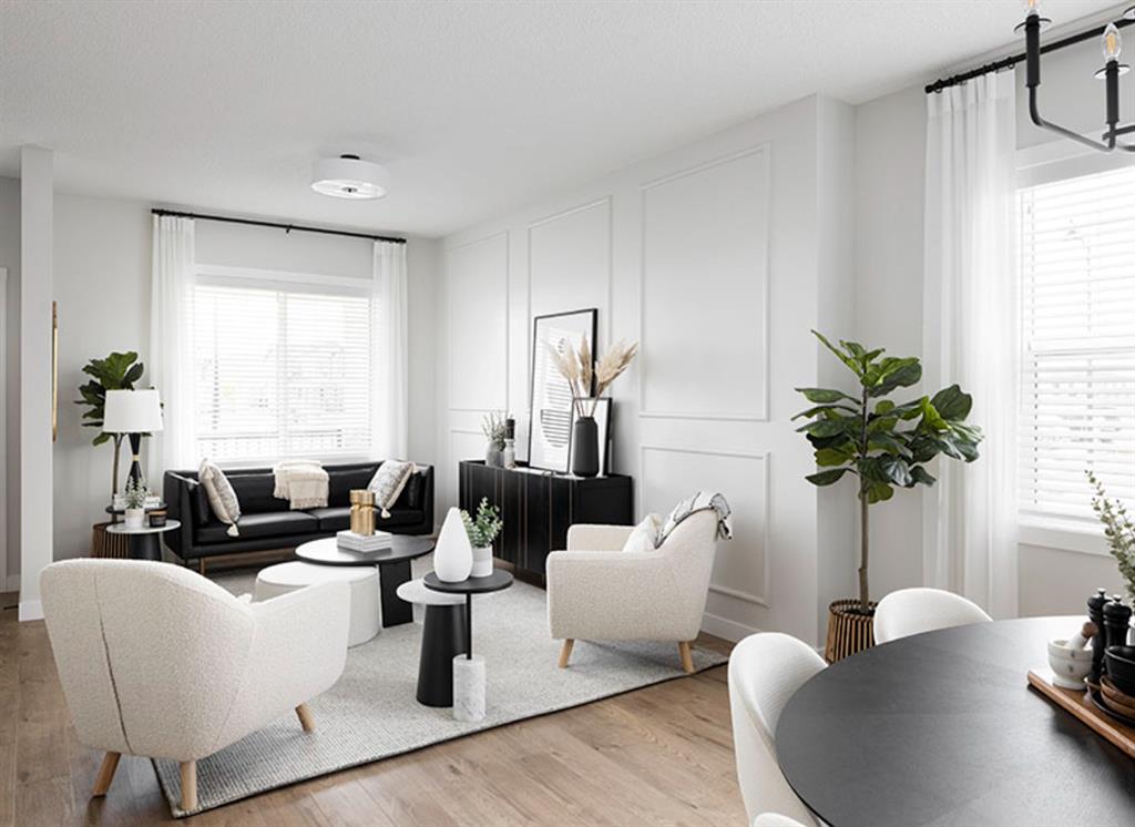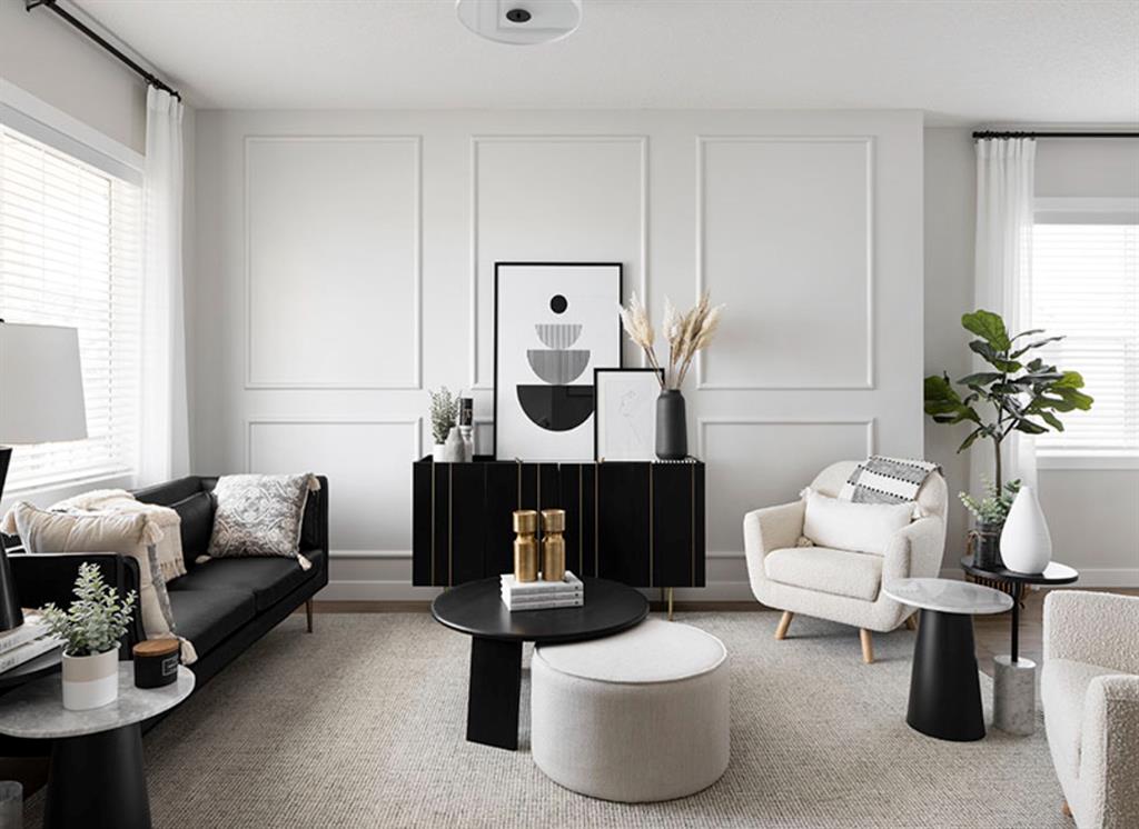 Midtown – 122 Midgrove Greenway SW: Welcome to this 1,596 sq ft Cascade model built by Shane Homes. This UNDER CONSTRUCTION 2-storey home features 3 bedrooms & 2.5 bathrooms and a 20′ x 22′ garage-ready concrete pad. The open main floor features LVP throughout; a kitchen with quartz countertops and island, a large walk-in pantry, Whirlpool S/S appliances; dining area, living room and 2 pc powder room. The second floor has a primary bedroom with 3 piece ensuite and walk-in closet; 2 additional bedrooms, a bonus room, 4-piece main bathroom, and stacked laundry. The basement remains unspoiled. Showhome is located at 1 Midgrove Lane SW. Other models/lots are available. Located in Midtown of Airdrie, just steps away from the pond, pedestrian bridge, promenade with shops, and nearby schools. Airdrie is less than 20 mins to Airport, less than 10 mins to QE II, and 15 mins from North Calgary. Call for more info! Builder Size: 1,636 sq ft. RMS based on blueprints provided by the builder: 1,596 sq ft. Photos and 3-D tour are from the showhome.