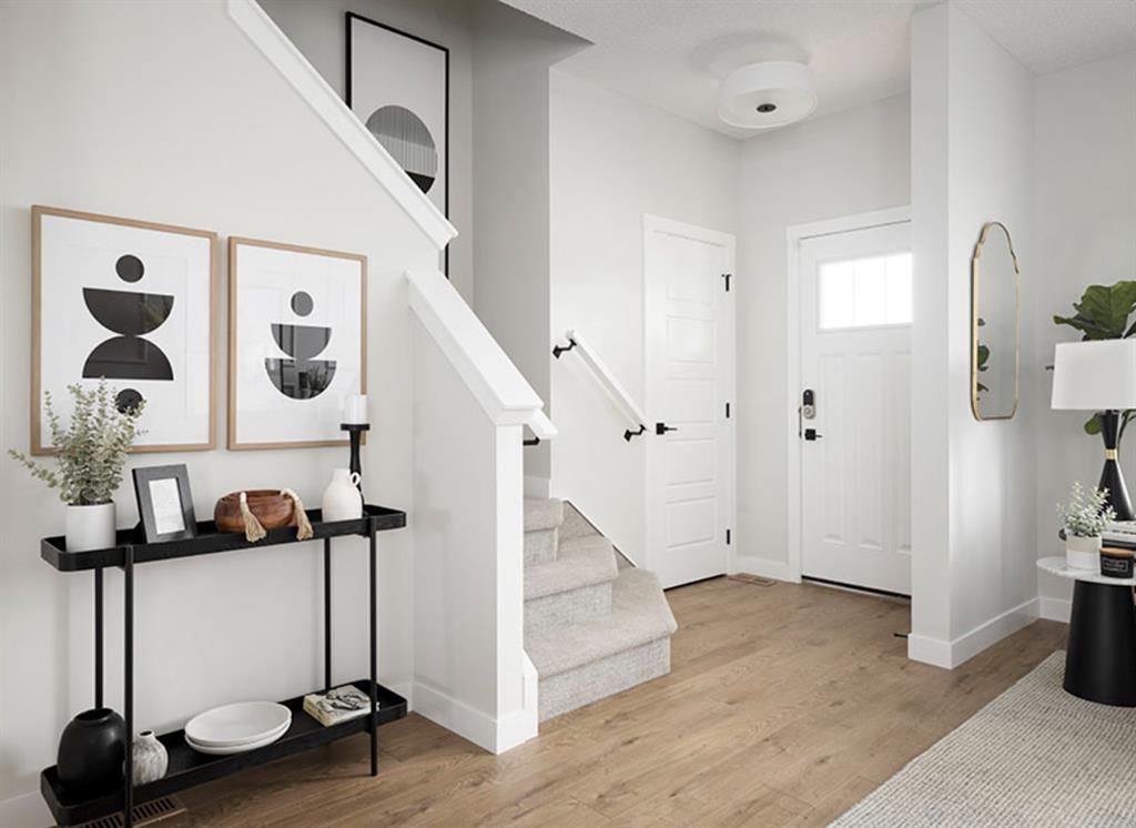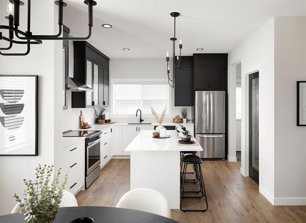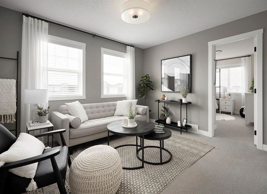 Midtown – 122 Midgrove Greenway SW: Welcome to this 1,596 sq ft Cascade model built by Shane Homes. This PRE-CONSTRUCTION 2-storey home features 3 bedrooms & 2.5 bathrooms and double detached garage. The open main floor features a kitchen with granite or quartz countertops and island, a large walk-in pantry, Whirlpool S/S appliances; dining area, living room and 2 pc powder room. The second floor has a primary bedroom with 3 piece ensuite and walk-in closet; 2 additional bedrooms, a bonus room, 4-piece main bathroom, and stacked laundry. The basement remains unspoiled. Showhome is located at 1 Midgrove Lane SW. Other models/lots are available. Excellent PRE-CONSTRUCTION opportunity for buyers as upgrades and interior selections can still be chosen. Located in Midtown of Airdrie, just steps away from the pond, pedestrian bridge, promenade with shops, and nearby schools. Airdrie is less than 20 mins to Airport, less than 10 mins to QE II, and 15 mins from North Calgary. Call for more info! Builder Size: 1,636 sq ft. RMS based on blueprints provided by the builder: 1,596 sq ft.