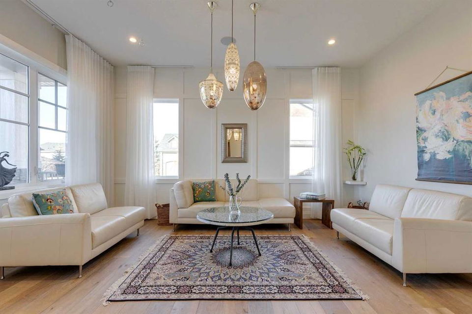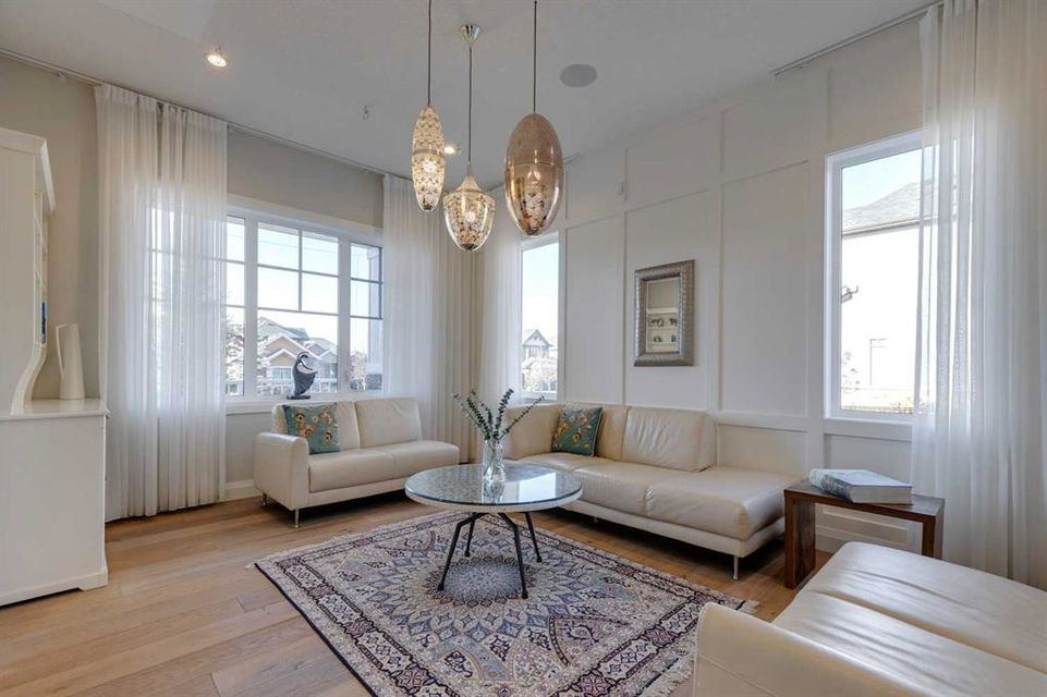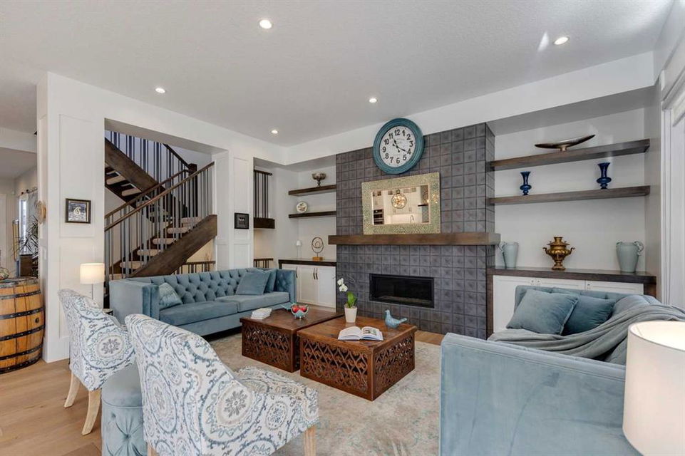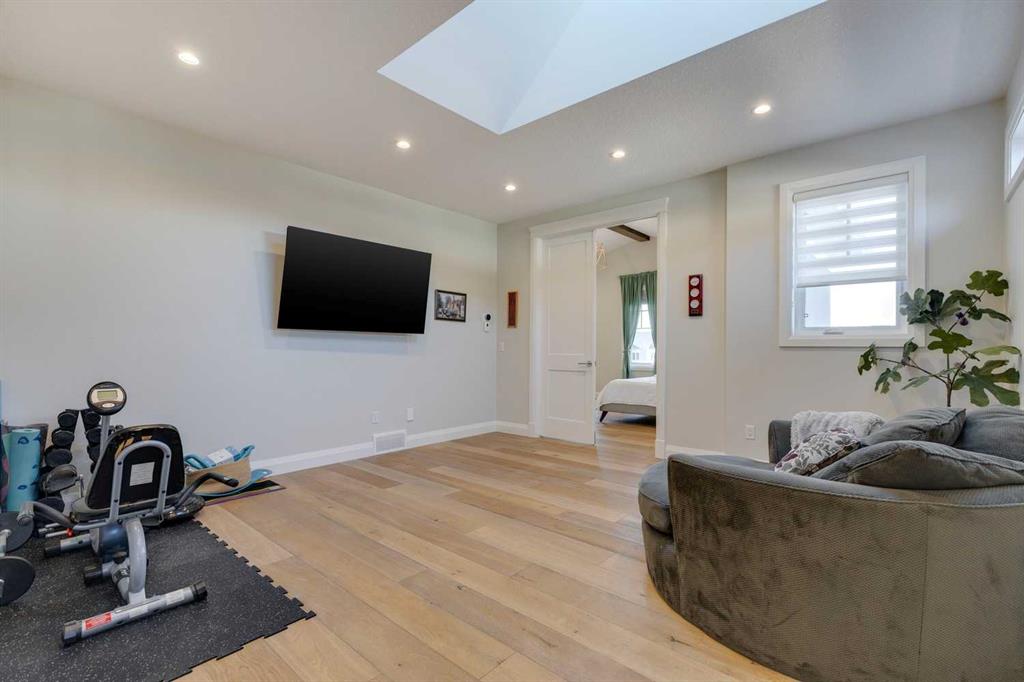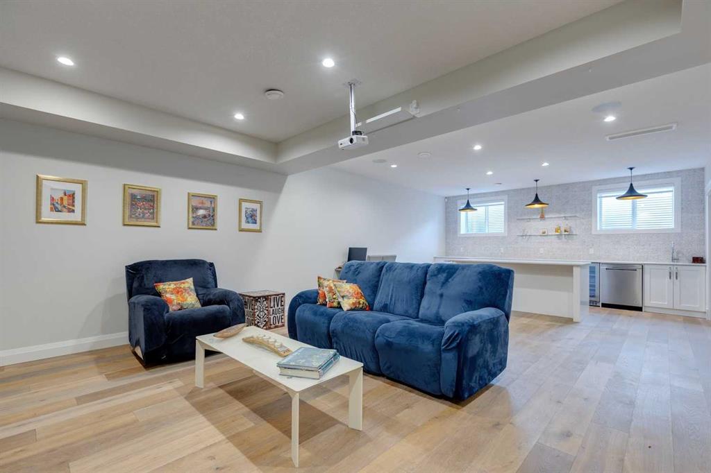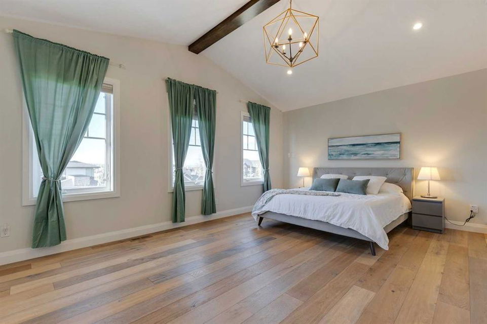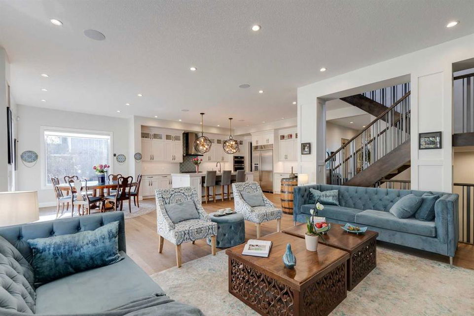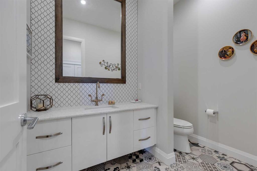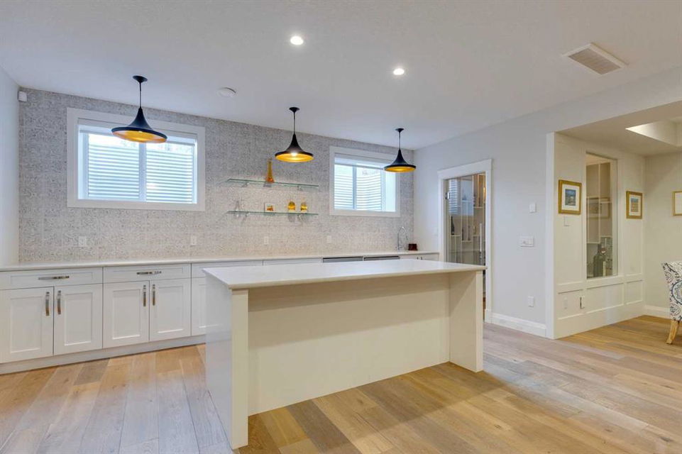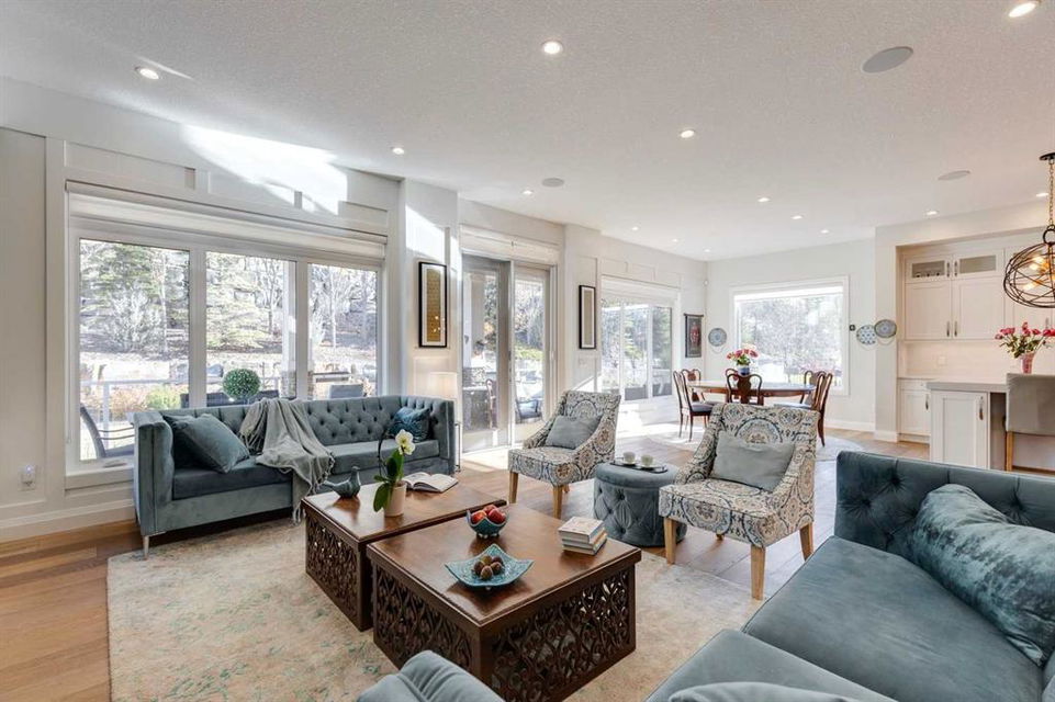 Watermark at Bearspaw – 130 Hillside Terrace: Welcome to this fully developed estate property built by Prominent Homes in the coveted community of Watermark at Bearspaw. Located on a quiet street, this stunning home offers nearly 5,000 sqft of total living space with 5 bedrooms, 4.5 bathrooms, and a heated attached triple-car garage. The bright, open main floor features hardwood throughout and a spacious front entry. The gourmet central kitchen includes quartz countertops, a large island with seating for three, high-end JennAir stainless steel appliances – a gas cooktop, chimney hood fan, dual dishwashers, wall oven, microwave oven, and built-in refrigerator – plus a Silhouette beverage fridge. The separate spice kitchen offers additional prep space with built-in cabinets, a gas cooktop, and a hood fan. Designed for both everyday living and entertaining, the main floor has a generous breakfast nook with space for a large table, a great room with built-ins and a gas fireplace, and a front flex room with barn doors – ideal as an office or sitting room. A 2-pc powder room and well-organized mudroom with a bench, hooks, and plenty of storage complete the level. Upstairs, the southwest-facing primary suite features a large walk-in closet with custom built-ins and a luxurious 5-pc spa ensuite with heated floors, a tiled glass shower, a freestanding soaker tub, dual sinks, and a private water closet. Three additional bedrooms, each with walk-in closets, including one with a private 4-pc ensuite – share the upper level. You will also find a central bonus room with skylight, a 5-pc main bath with double sinks, and a convenient laundry room with sink, folding counter, and linen storage. The fully developed lower level is perfect for hosting, offering a wet bar and island, dishwasher, and beverage fridge, plus a wine room, spacious family room with built-ins, recreation area, a 4-pc main bathroom, and a fifth bedroom with a walk-in closet. Additional features of this home include an alarm system, 2 A/C units, 2 furnaces, speakers throughout the home, solar panels, 220 in the garage for EV charging, and an underground sprinkler system. Relax on the front veranda while the kids play, or escape to the beautifully landscaped backyard with a covered deck. Watermark at Bearspaw is an award-winning luxury estate community featuring a central plaza with a pavilion, BBQs, fire pit, NBA-sized basketball court, outdoor kitchen, and more. Residents enjoy paved pathways winding through ponds, streams, and parkland. Ideally located just minutes from Calgary’s city limits with quick access to Crowchild Trail, LRT/transit, schools, parks, recreation, and the mountains. This exceptional home is perfect for multi-generational or extended families. Call for more information!