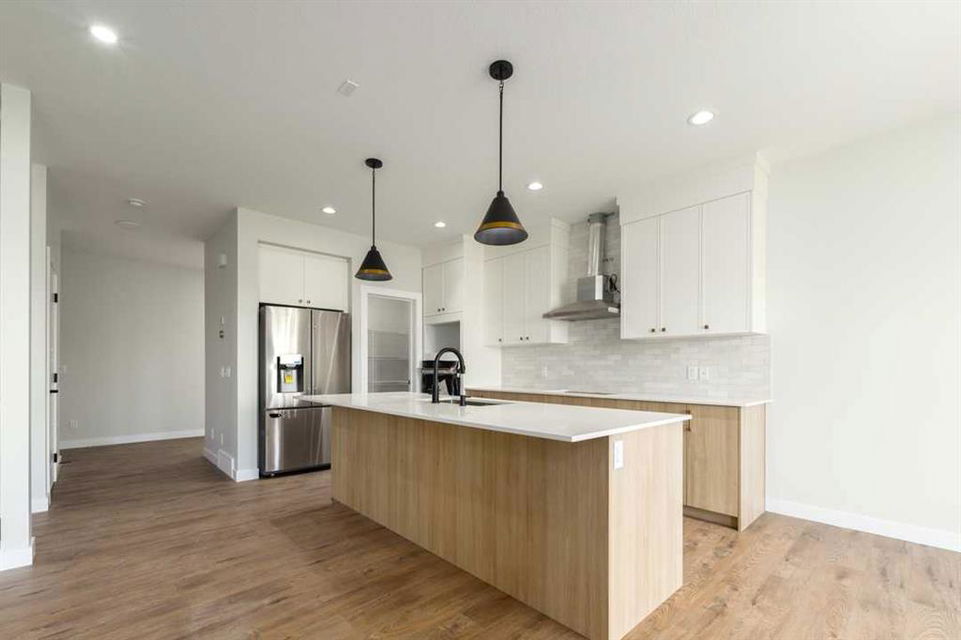 Belmont – 138 Belmont Passage SW: Welcome to this Alston model built by Shane Homes featuring 1,939 sq ft, 3 bedrooms, 2.5 bathrooms and an attached double car garage. The spacious main floor layout features 9’ ceilings throughout, a spacious kitchen with a central island providing seating, stainless steel appliances and corner walk-in pantry; breakfast nook with door to access the backyard which backs onto a walk-in path/green belt; living room and 2 pc powder room. The upper level features a primary bedroom with a walk-in closet, 4 pc ensuite with dual sinks, separate shower and toilet with door; 2 additional good-sized bedrooms – each with walk-in closets; central bonus room, 4 pc main bathroom, separate laundry room with additional shelves for linen storage. The lower level basement remains unspoiled with bathroom rough-in. This home is located in the community of Belmont which offers many future amenities including the extension of the LRT Red Line, schools, and public library. It is a short commute to Macleod Trail, Stoney Trail, Spruce Meadows, Shawnessy Shopping Centre, and much more! Call for more info! **photos from other Alston builds by Shane Homes**