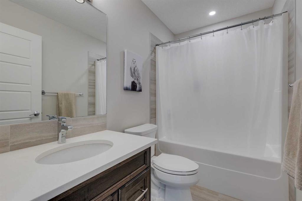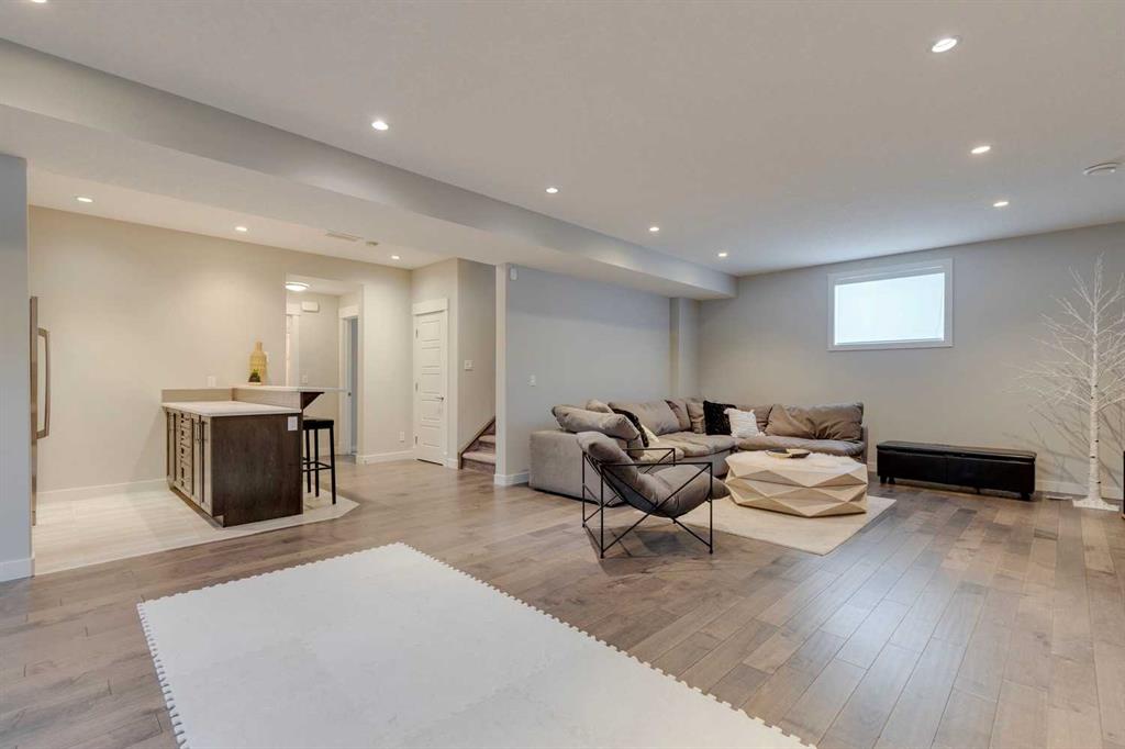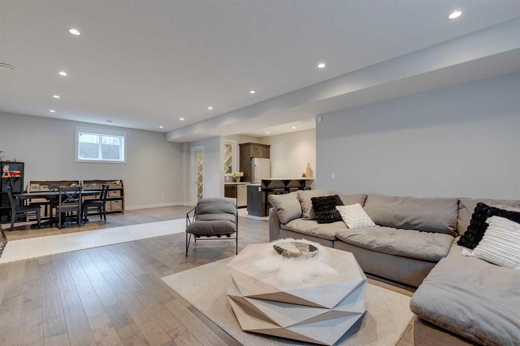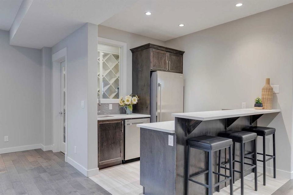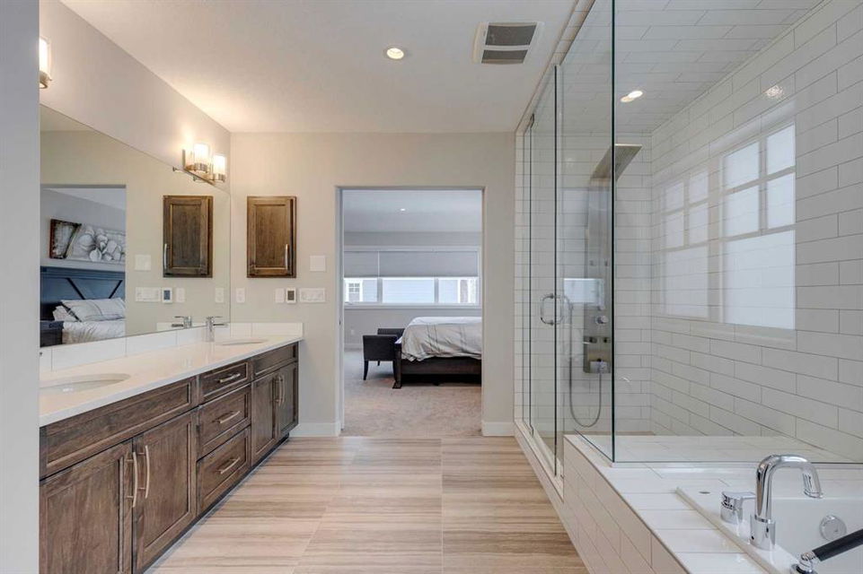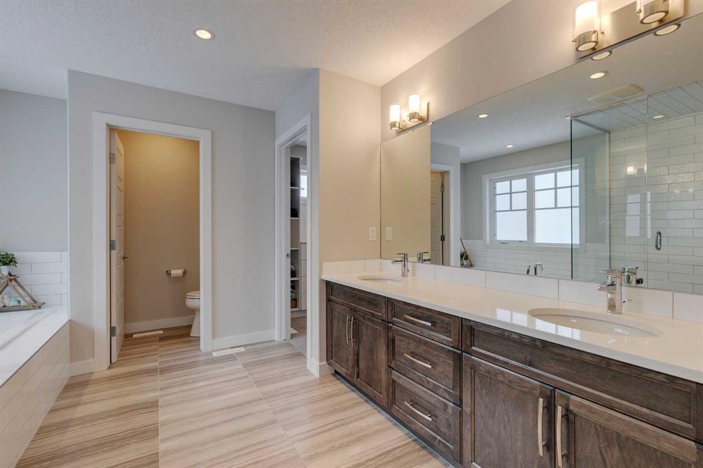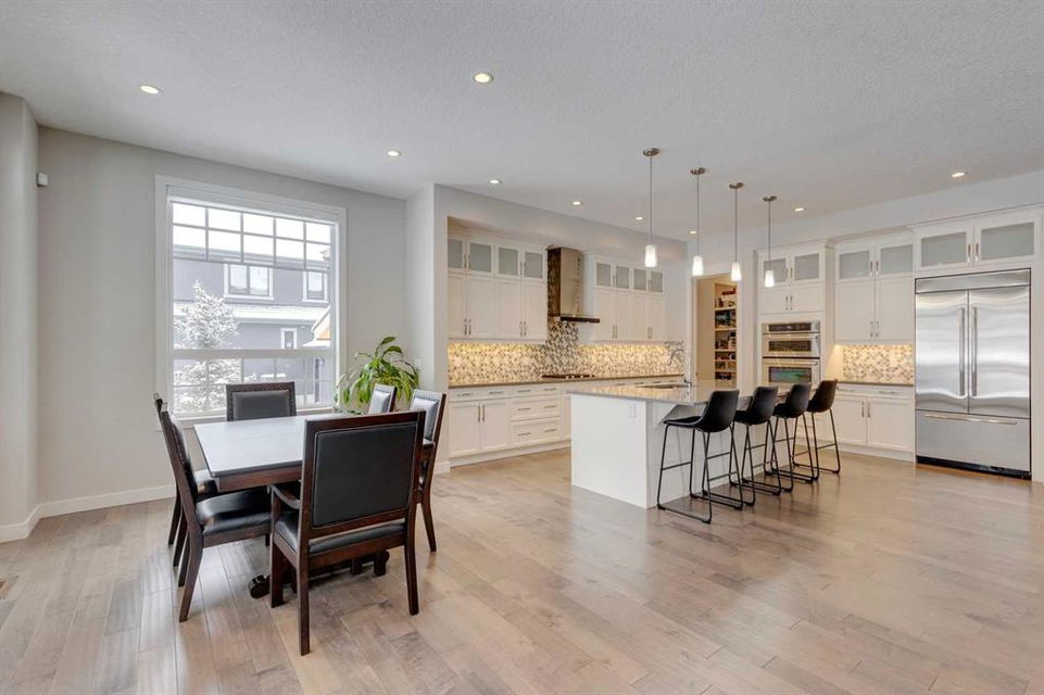 Watermark at Bearspaw – 138 Hillside Terrace: Welcome to this well-maintained home in desirable Watermark at Bearspaw. Situated on a quiet street featuring over 4,500 sq ft of development, 4 + 1 bedrooms, 4.5 bathrooms, a fully developed lower level, and an attached triple car garage. The open and bright main floor has a gorgeous kitchen and breakfast nook, great room, and office/flex room. The kitchen has quartz countertops, a central island with seating for 4, stainless steel appliances, including a gas cooktop, chimney hood fan, and dishwasher, plus built-in appliances that include; a refrigerator, microwave oven, and wall oven. The open concept floor plan features a breakfast nook that provides plenty of space for a large table; a great room with built-in shelves and a gas fireplace with a mantle; a flex room with barn doors which is currently being used as an office/computer room; a 2 pc powder room, a large walk-in pantry and a mud room with L-shaped bench, hooks and ample storage space. The upper level features a bright primary bedroom with a 5 pc ensuite including dual sinks, a tiled glass shower with bench and a soaker tub; a walk-in closet with built-in shelves, rods, and drawers and a sliding door to the laundry room with upper and lower cabinets, sink and hanging rod. You will also find 3 additional bedrooms – two with walk-in closets and one with a 4 pc ensuite bathroom; a central bonus room and a 5 pc main bathroom. The fully developed lower level includes a large rec room with a games area; a tiled wet bar and wine room including a dishwasher and refrigerator and seating for 4; a fifth bedroom and 4 pc bathroom. Additional features of this home include central A/C on the upper level, a backyard concrete patio with a gazebo and hot tub, an exposed aggregate driveway, and underground sprinklers all situated on a lovely landscaped 86 x 149-foot lot. Watermark at Bearspaw is a luxury estate community complete with Central Plaza which has a large pavilion, fire fit, BBQs, outdoor kitchen, an NBA-sized basketball court + much more. The community also offers paved trails that navigate through parkland, cascading streams, and ponds. Located minutes away from the Calgary city limits, only a short drive to Crowchild Trail, LRT/transit, parks, schools, recreational facilities, and easy access for a quick getaway to the mountains. This is an excellent opportunity for an extended family/multi-generational home. Pride of ownership is evident. Call for more info!