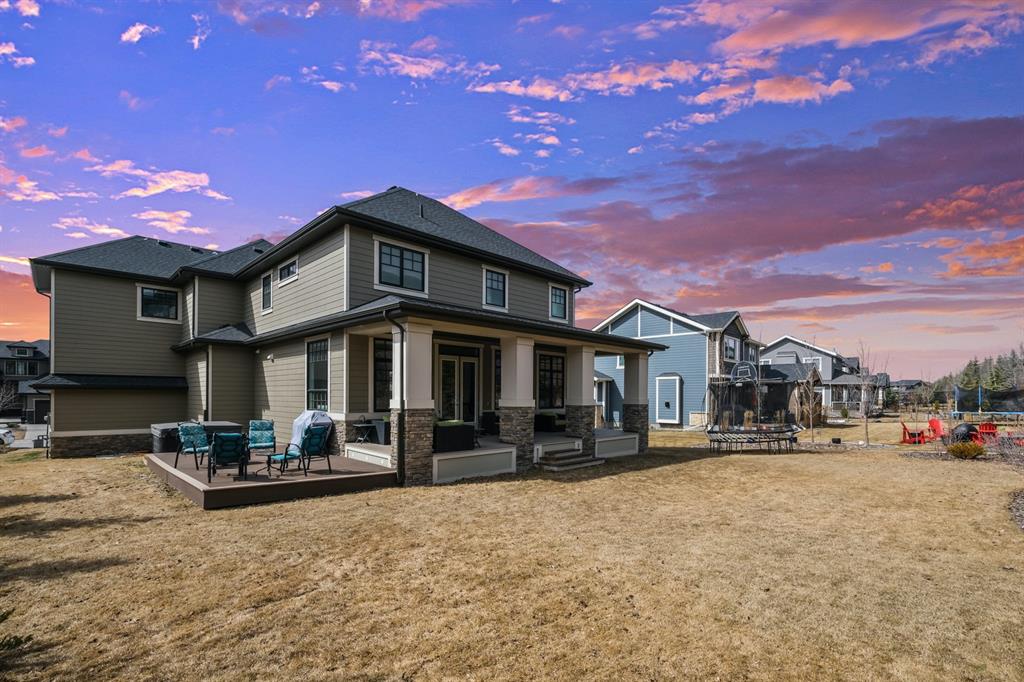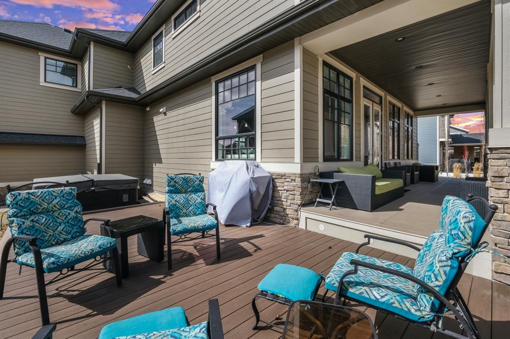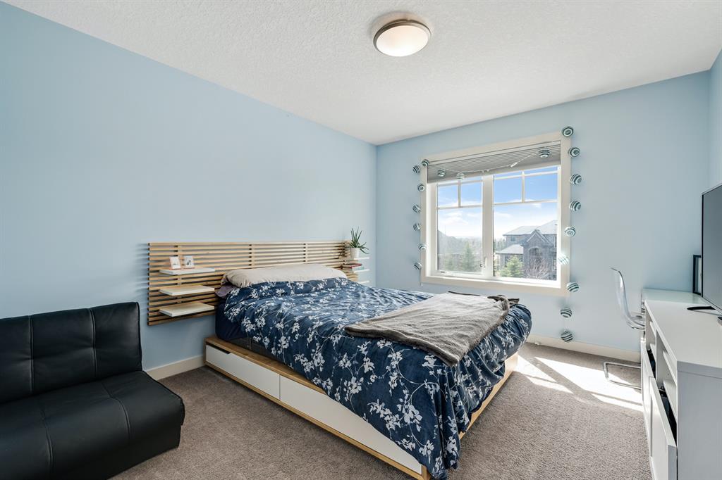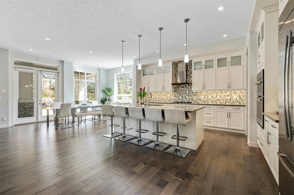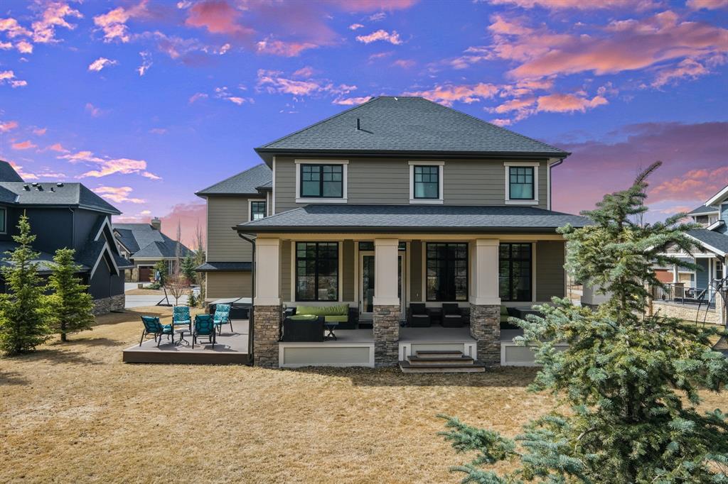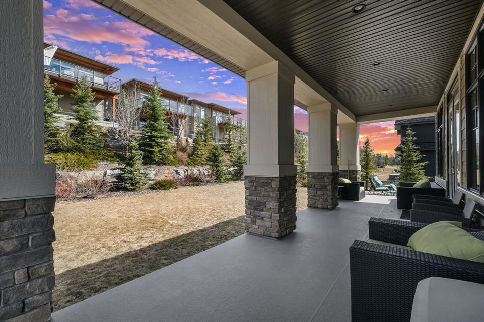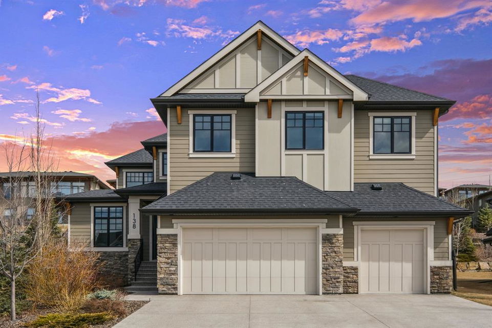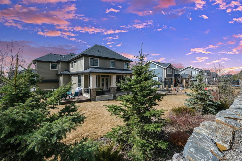 Watermark at Bearspaw is a luxury estate community sought after for its large lot sizes, beautifully built homes and various community amenities. Prominent Homes designed the Campbell III with almost 4,500 square feet of developed living space full of custom features, upgrades and natural light throughout! The open concept main level floorplan boasts a spacious foyer, wide plank hardwood flooring, a front facing home office (flex room), powder room and an ultimate mudroom with custom lockers separating the walk-through pantry and spacious triple car garage. The gourmet kitchen with soft close white cabinetry, quartz counters and premium stainless-steel appliance package opens onto a spacious dining nook and great room with tiled fireplace punctuated with custom built-in cabinetry and shelving. Family and friends will gather around the oversized kitchen island and the massive dining area will help make family dinners a breeze. The massive pantry and impressive cabinet storage space will help you with all other kitchen storage needs. French doors lead to your covered patio and stunning, upscale landscaped yard. Step down to a sunny side deck. An open staircase leads you to the second level featuring 4 generously sized bedrooms, 3 bathrooms, a bonus room with tray ceiling and Laundry! The owners retreat features dual sliding doors leading to a 5pc spa-inspired ensuite complete with glass shower, dual sinks, a deep jetted soaker tub and large walk-in closet. Your convenient upper-level laundry has cabinets and a sink to help with all laundry needs. The professionally developed basement with oversized windows features a large recreation room, family room, kitchenette, wine room, 5th bedroom and 4pc bathroom. Awesome curb appeal, pristine lot, exterior stonework and accents, exposed aggregate driveway and underground sprinklers! Outside your door there are 5km of paved trails, linking cascading ponds and a NBA-sized sports court. 20 minutes to city centre, quick access to golf, recreation facilities, shopping, and skiing and snowboarding is just an hour away!