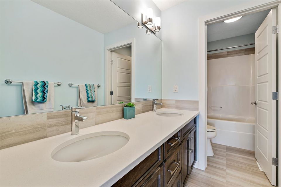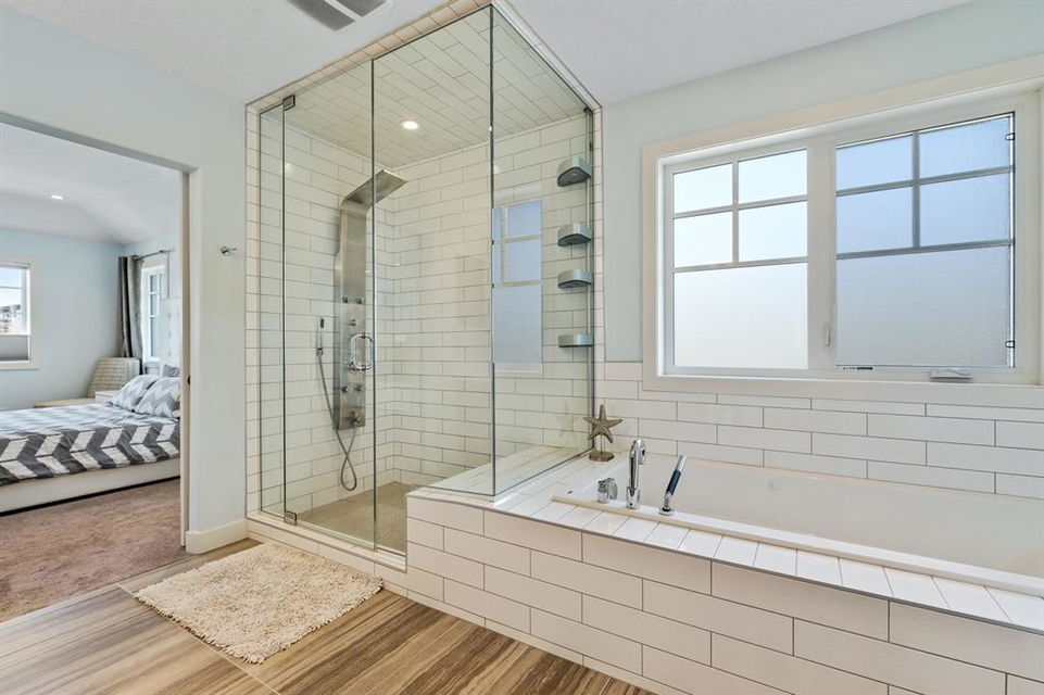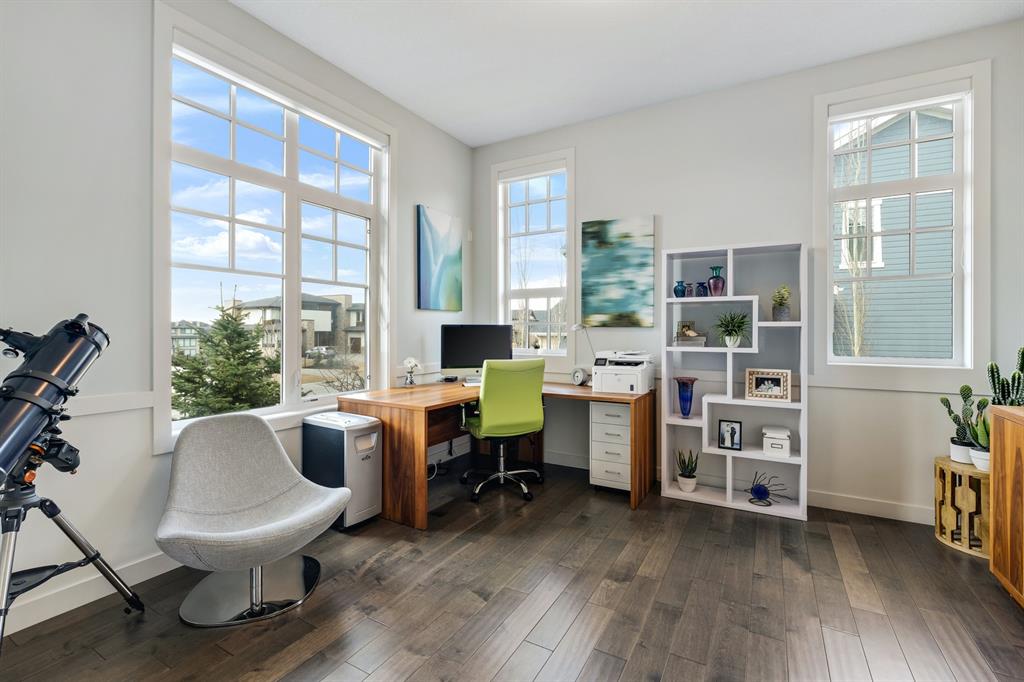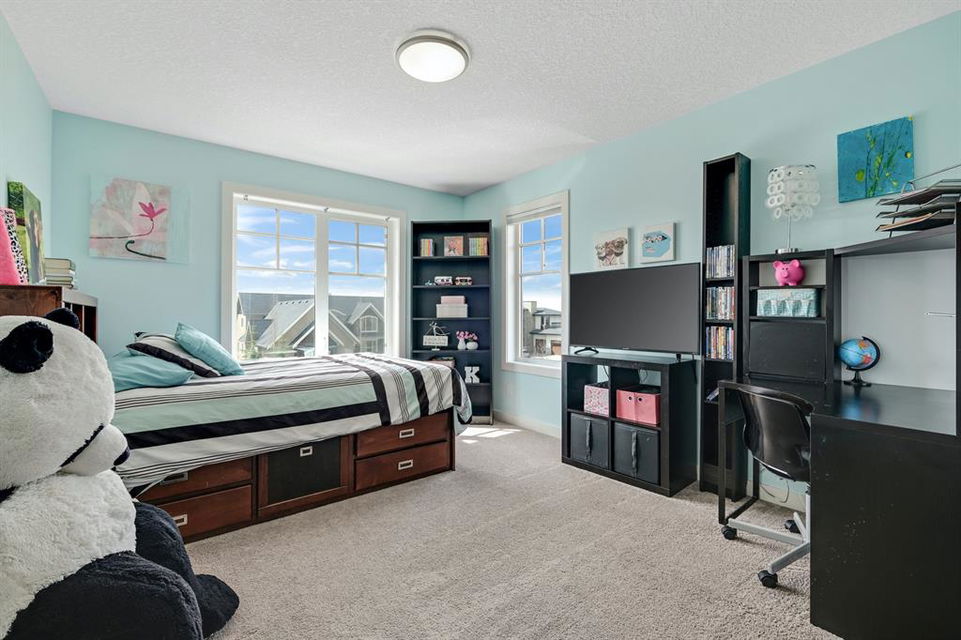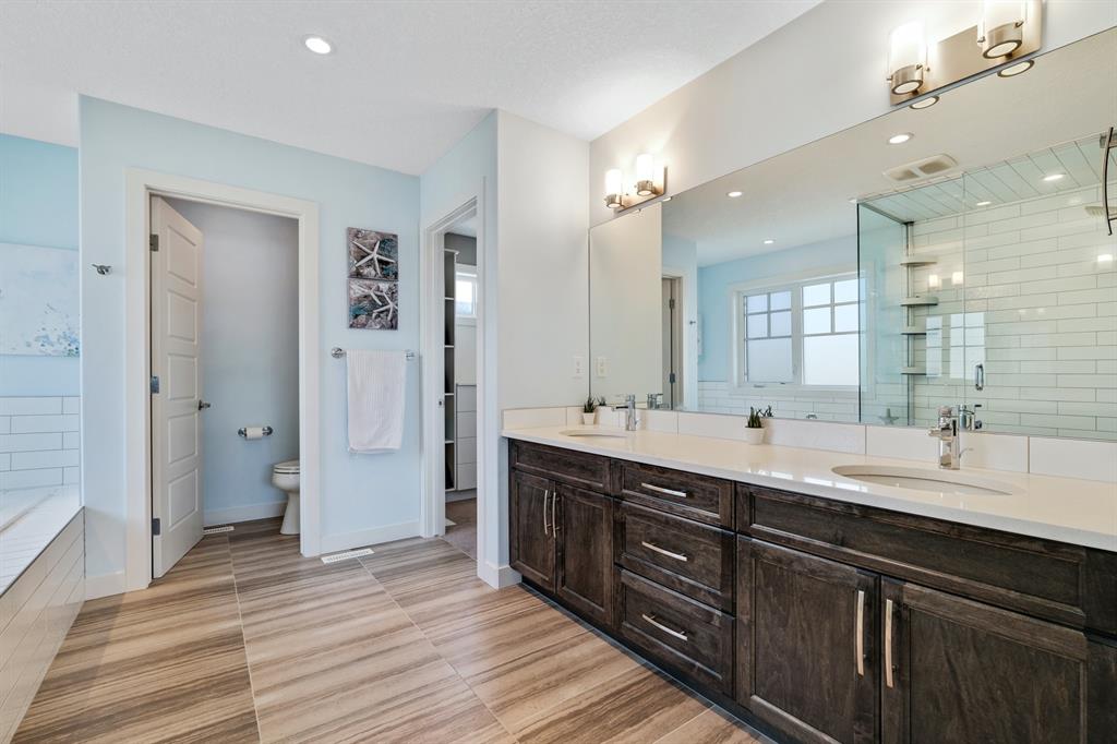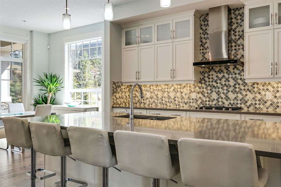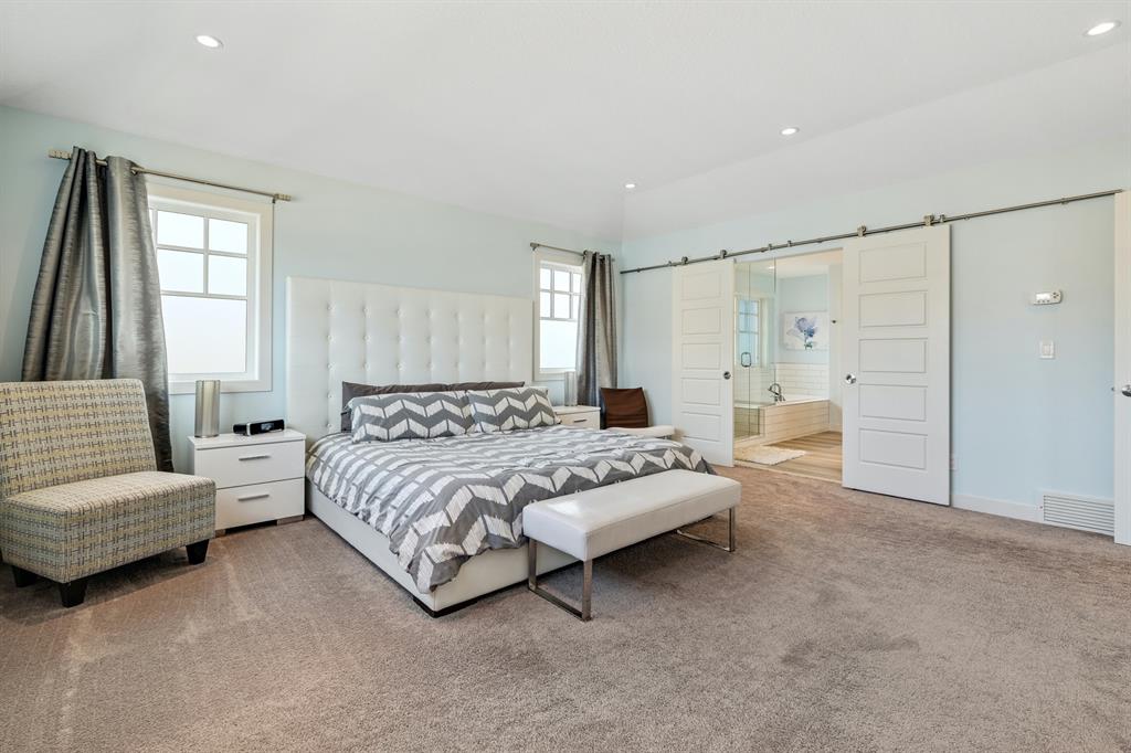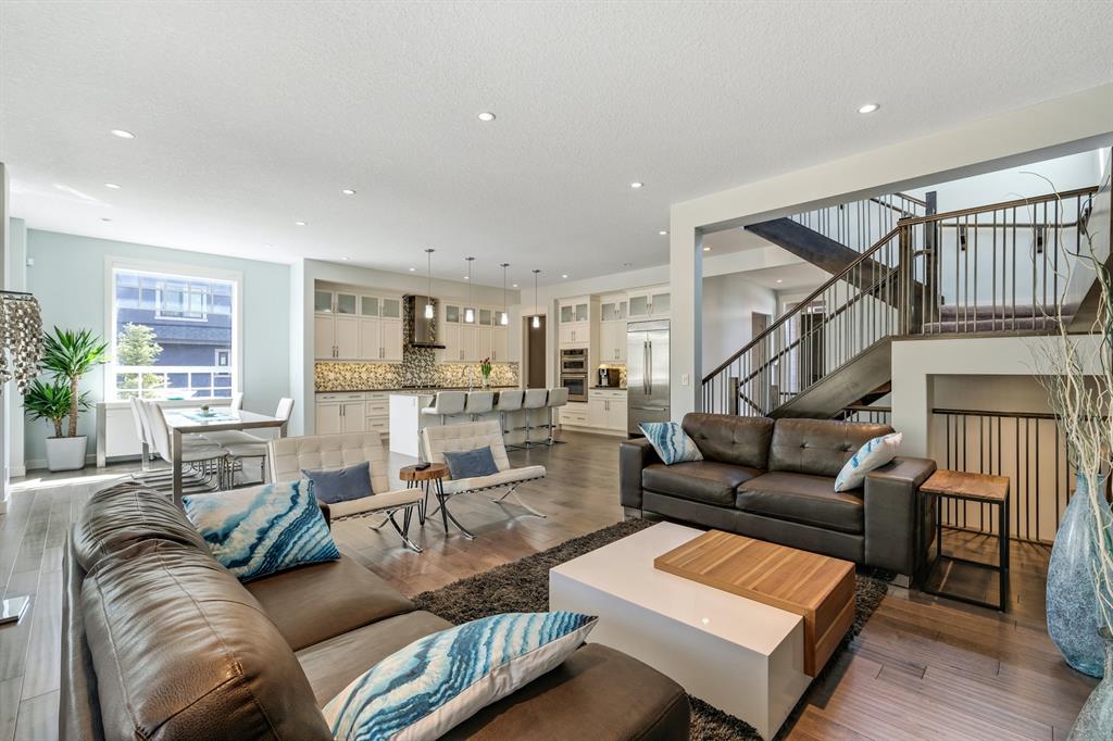 Watermark at Bearspaw is a luxury estate community sought after for its large lot sizes, beautifully built homes and various community amenities. Prominent Homes designed the Campbell III with almost 4,500 square feet of developed living space full of custom features, upgrades and natural light throughout! The open concept main level floorplan boasts a spacious foyer, wide plank hardwood flooring, a front facing home office (flex room), powder room and an ultimate mudroom with custom lockers separating the walk-through pantry and spacious triple car garage. The gourmet kitchen with soft close white cabinetry, quartz counters and premium stainless-steel appliance package opens onto a spacious dining nook and great room with tiled fireplace punctuated with custom built-in cabinetry and shelving. Family and friends will gather around the oversized kitchen island and the massive dining area will help make family dinners a breeze. The massive pantry and impressive cabinet storage space will help you with all other kitchen storage needs. French doors lead to your covered patio and stunning, upscale landscaped yard. Step down to a sunny side deck. An open staircase leads you to the second level featuring 4 generously sized bedrooms, 3 bathrooms, a bonus room with tray ceiling and Laundry! The owners retreat features dual sliding doors leading to a 5pc spa-inspired ensuite complete with glass shower, dual sinks, a deep jetted soaker tub and large walk-in closet. Your convenient upper-level laundry has cabinets and a sink to help with all laundry needs. The professionally developed basement with oversized windows features a large recreation room, family room, kitchenette, wine room, 5th bedroom and 4pc bathroom. Awesome curb appeal, pristine lot, exterior stonework and accents, exposed aggregate driveway and underground sprinklers! Outside your door there are 5km of paved trails, linking cascading ponds and a NBA-sized sports court. 20 minutes to city centre, quick access to golf, recreation facilities, shopping, and skiing and snowboarding is just an hour away!