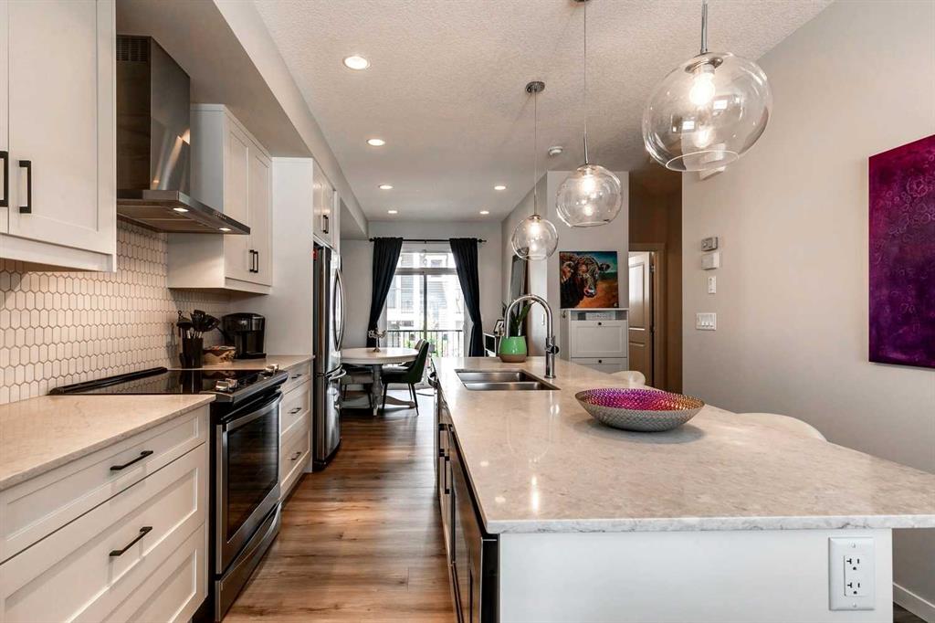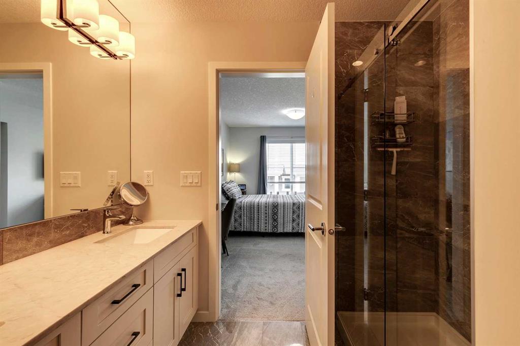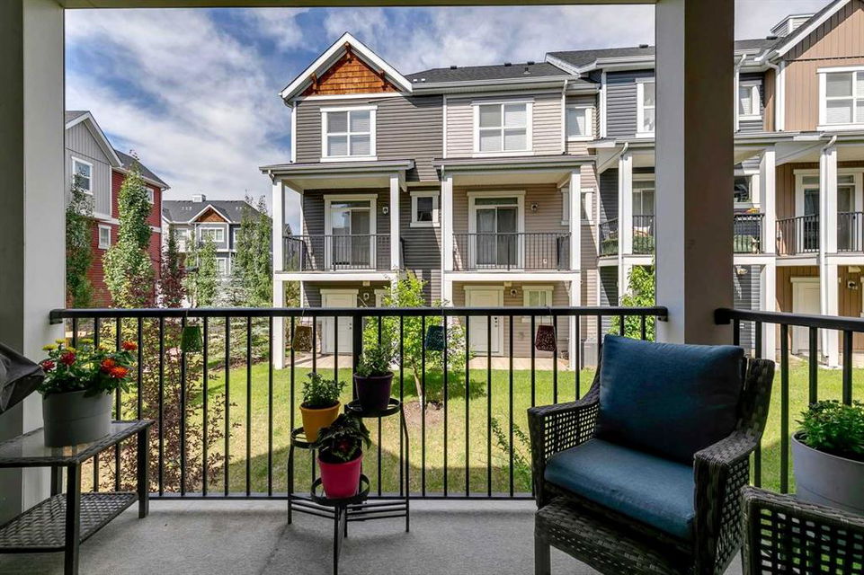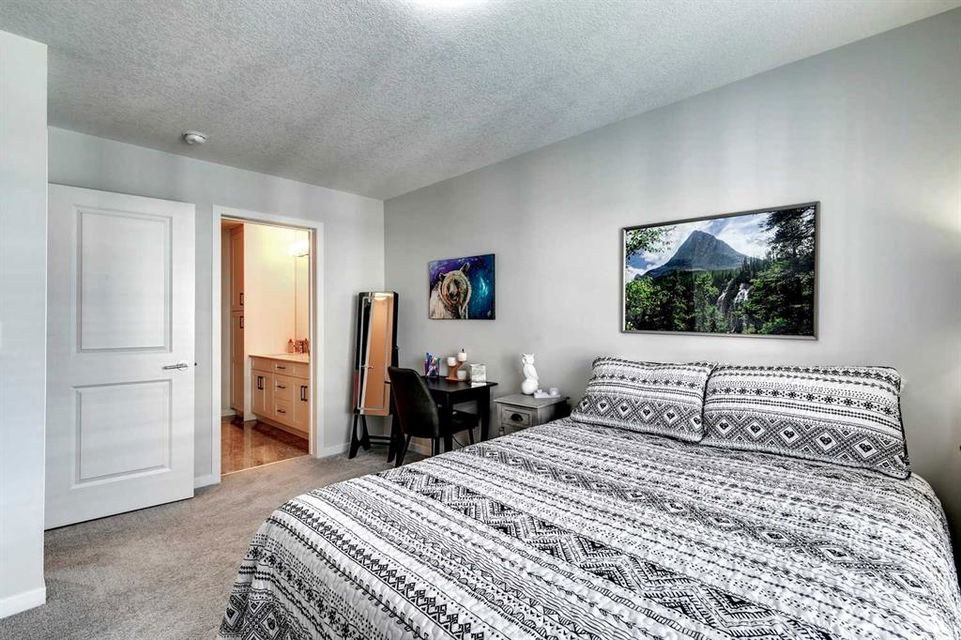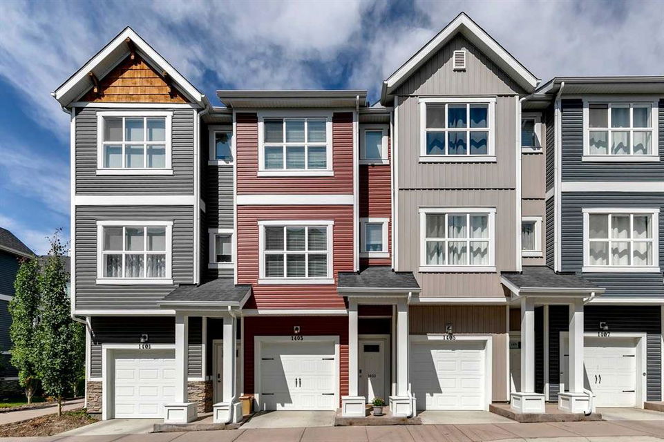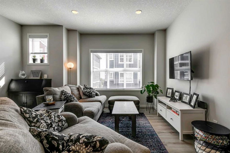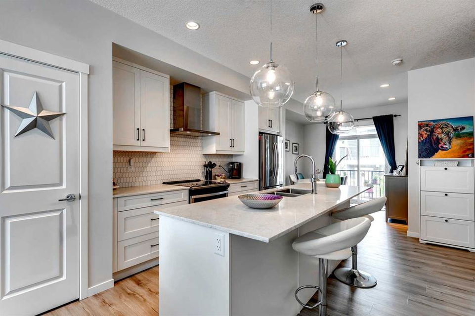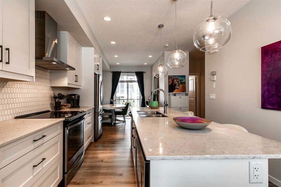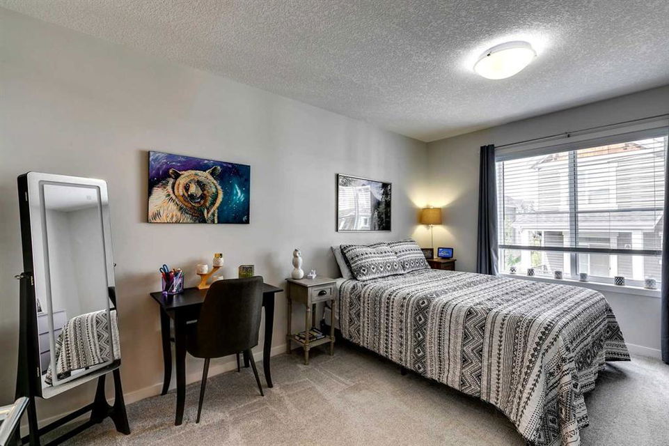 Nolan Hill – #1403, 355 Nolancrest Heights NW: Welcome to Nolan Park, this 2 bedroom, 2.5 bathroom townhome with 1,231 sqft features an upper-level main floor with an open floor plan with laminate flooring throughout. Enjoy the central kitchen featuring white cabinets, quartz countertops and island with seating for 4, stainless steel appliances and pantry closet; a dining area with sliding doors to the west-facing balcony; living room and 2 pc powder room. The 3rd level has dual primary bedrooms, each with its own walk-in closet and 4 pc ensuite – one with quartz countertops, dual vanity, and shower. Additional features of this townhouse include CENTRAL A/C, a 3rd level stacked laundry, gas line to the balcony, and a large 34’4” x 11’9” attached double-car tandem garage with access to the rear patio. Located in Nolan Hill close to green space, playgrounds, shops, eateries, and close to many major roads. Shows 10/10! Call for more info!