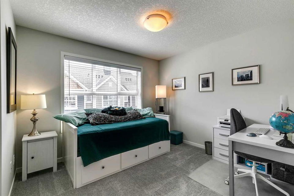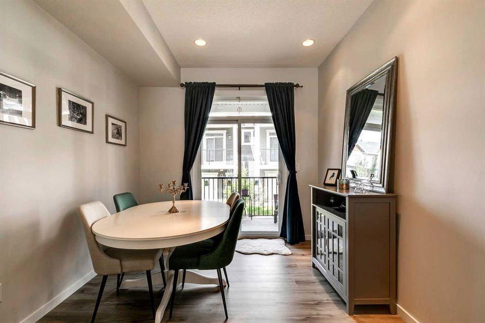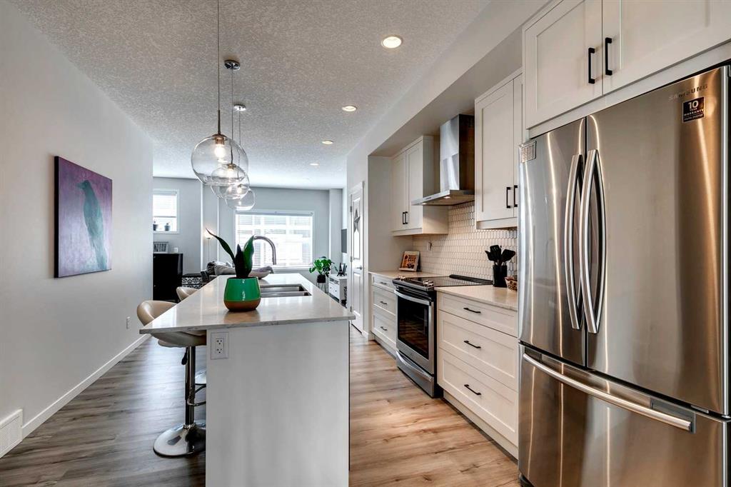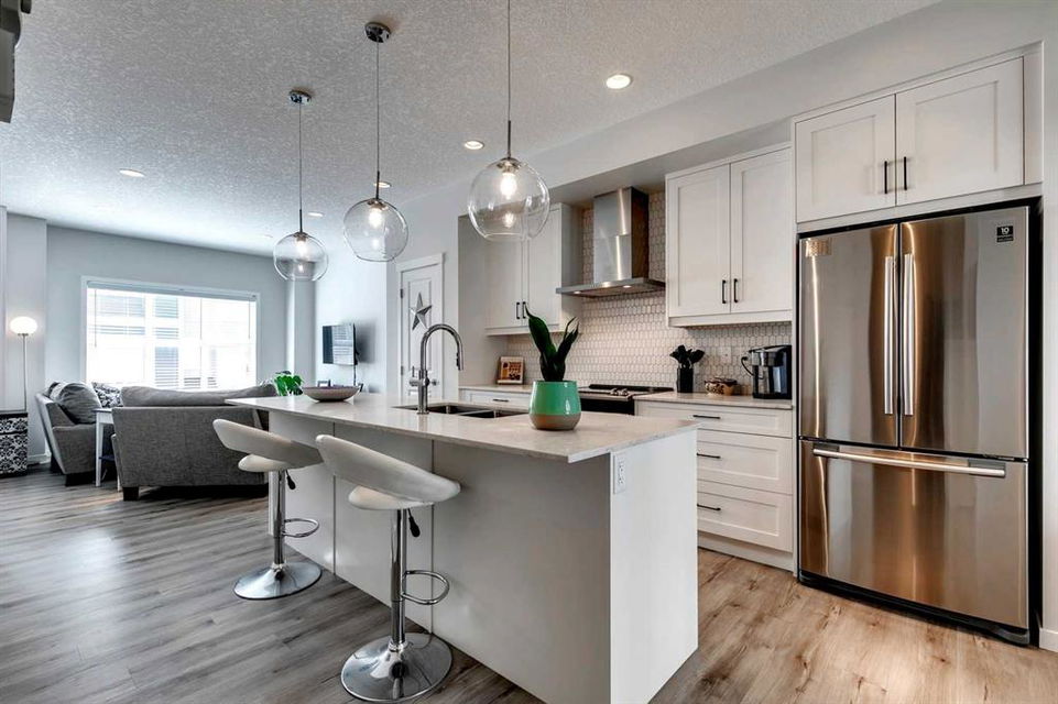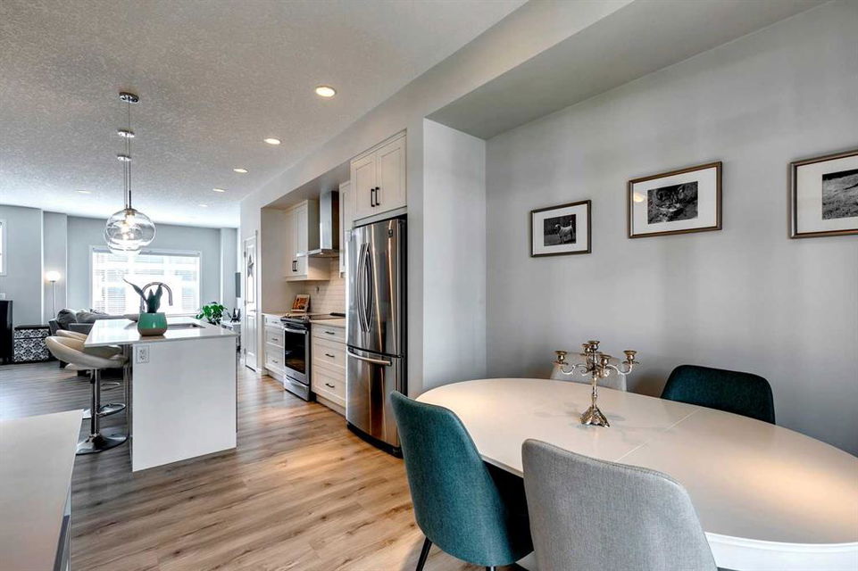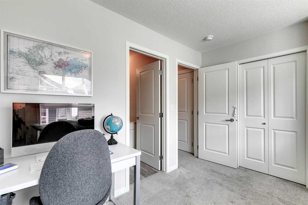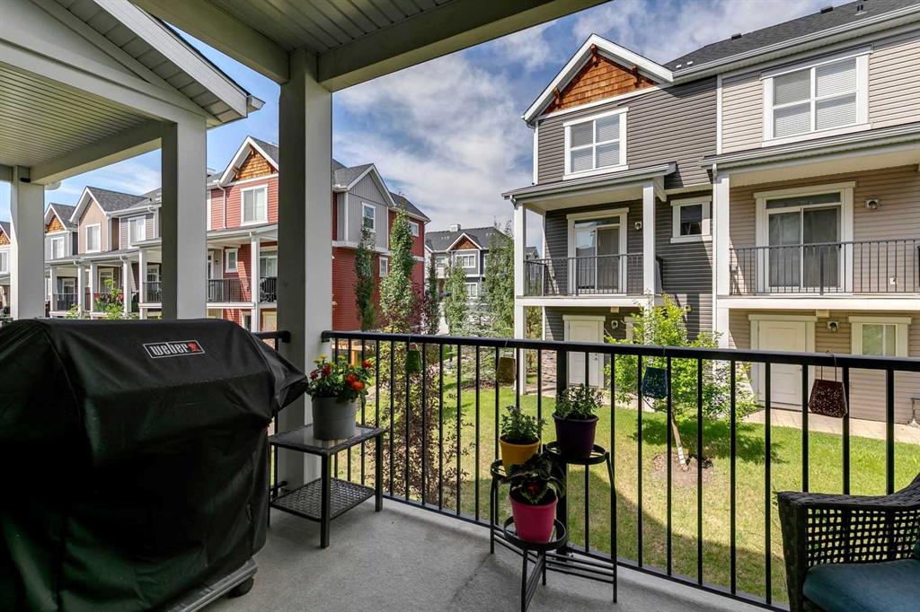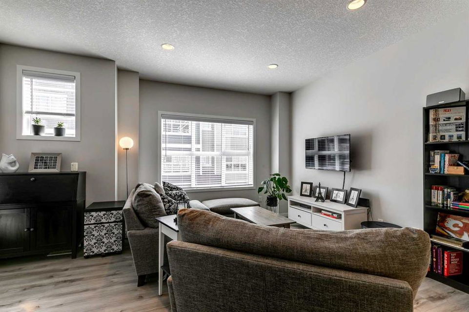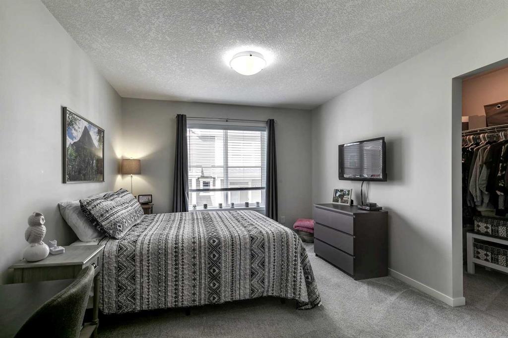 Nolan Hill – #1403, 355 Nolancrest Heights NW: Welcome to Nolan Park, this 2 bedroom, 2.5 bathroom townhome with 1,231 sqft features an upper-level main floor with an open floor plan with laminate flooring throughout. Enjoy the central kitchen featuring white cabinets, quartz countertops and island with seating for 4, stainless steel appliances and pantry closet; a dining area with sliding doors to the west-facing balcony; living room and 2 pc powder room. The 3rd level has dual primary bedrooms, each with its own walk-in closet and 4 pc ensuite – one with quartz countertops, dual vanity, and shower. Additional features of this townhouse include CENTRAL A/C, a 3rd level stacked laundry, gas line to the balcony, and a large 34’4” x 11’9” attached double-car tandem garage with access to the rear patio. Located in Nolan Hill close to green space, playgrounds, shops, eateries, and close to many major roads. Shows 10/10! Call for more info!