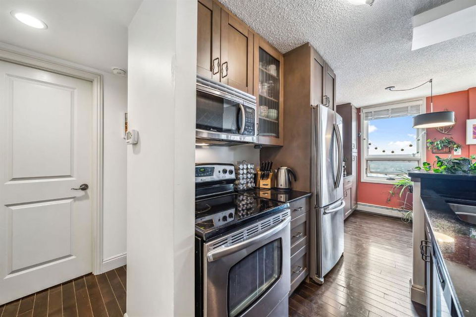 Experience the views from this 14th-floor south-facing condo in the Beltline. This unit features one bedroom, one assigned parking covered stall, and one assigned storage unit. The stylish kitchen includes granite countertops, stainless steel appliances, and a convenient bar/coffee space. Enjoy the large south facing windows in the living area over looking 17th Ave and Upper Mount Royal, and just steps away from restaurants, night life and shopping. The unit has an updated 4-piece bathroom, and a generous bedroom complete with a large closet. The building offers excellent amenities, including a fitness facility and a party room. Plus, the condo fees cover gas/heat, water, sewer, electricity, and garbage/recycling. This location is unbeatable!