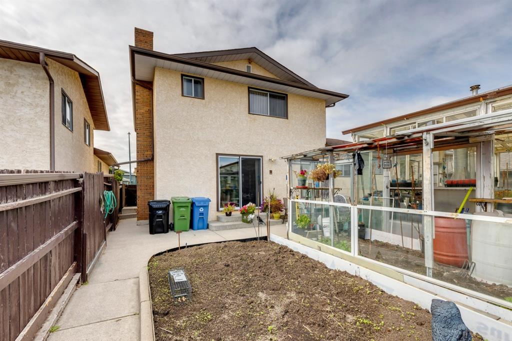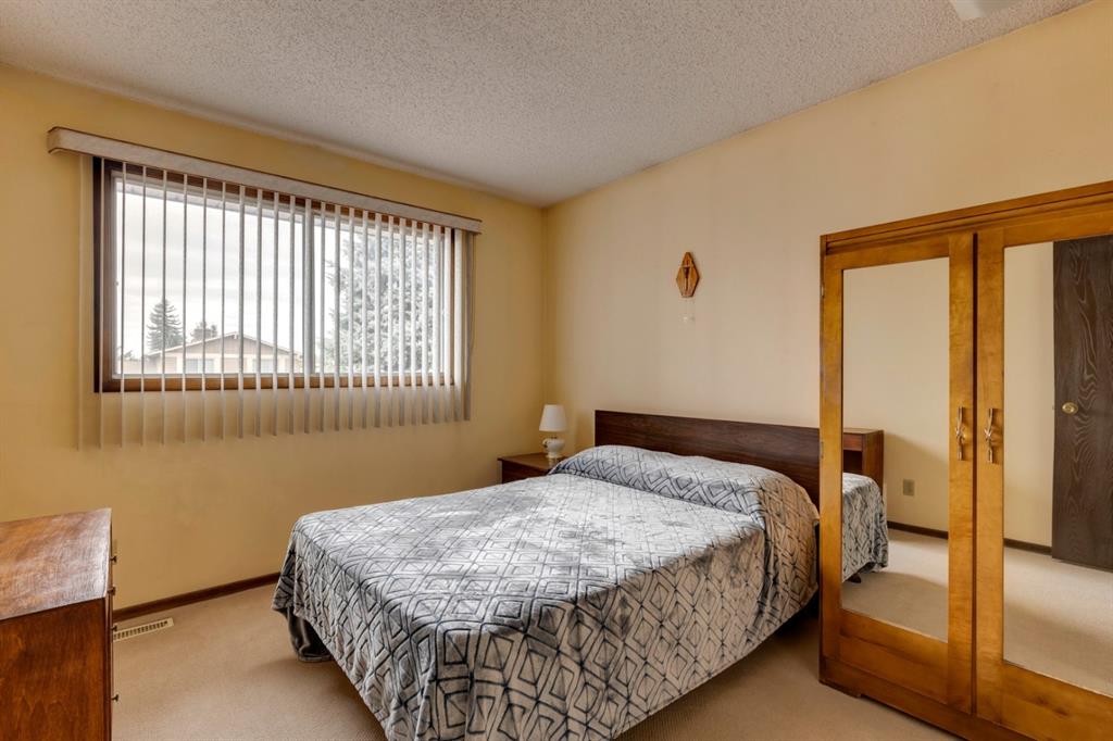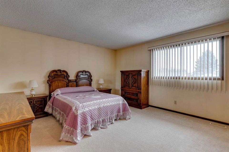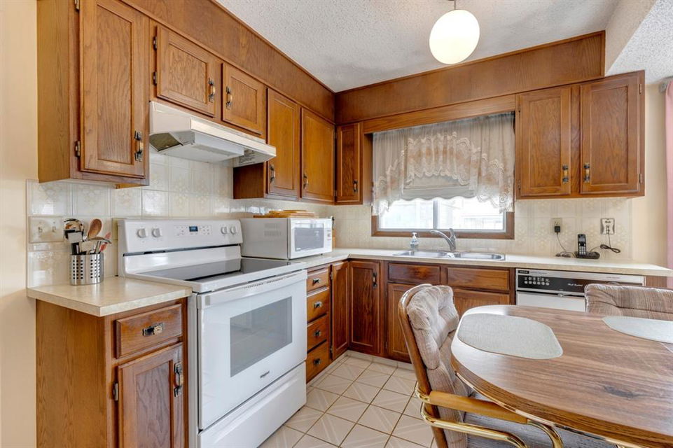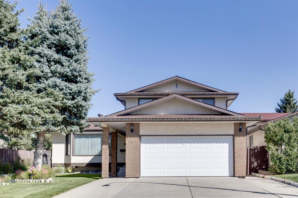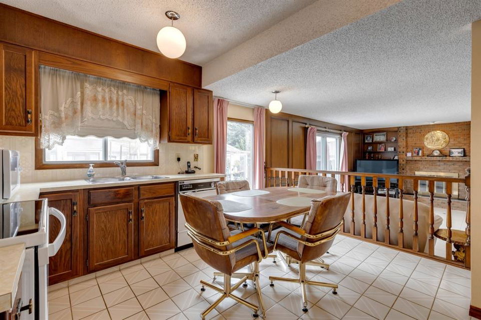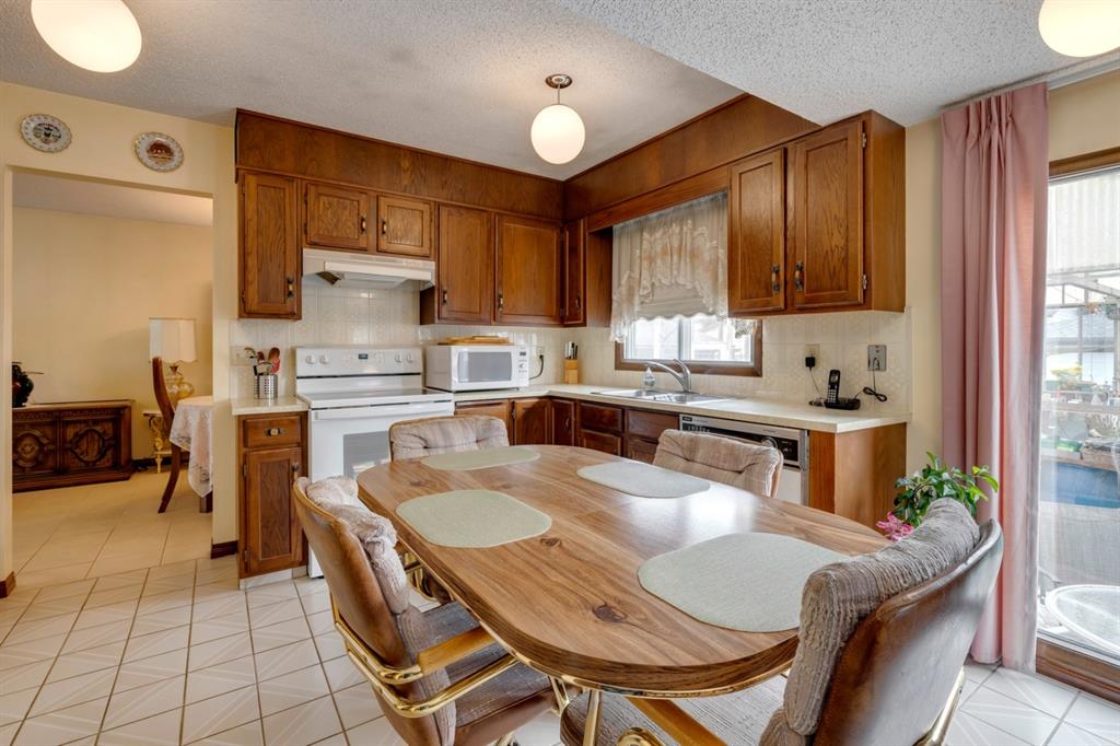 Temple – 147 Templevale Place NE: Welcome to this well-maintained original owner family home located on a quiet cul-de-sac in the community of Temple. This rare, large 2 storey home features over 3,000 sq ft of development with 4 bedrooms above grade and a front attached double car garage. The main floor features tile flooring throughout; kitchen with breakfast nook, dining room; family room with brick, wood-burning fireplace, built-in shelves with wainscotting and sliding door to the backyard; spacious living room; main floor bedroom and 2 pc bathroom. The upper level features a spacious primary bedroom with a 4 pc ensuite, 2 additional bedrooms and a 5 pc main bathroom. The fully developed lower level has a kitchenette with eating area, rec room with wet bar, and plenty of space for a storage room or games room. The backyard features a large, concrete patio, raised garden beds and greenhouse which can easily be removed. This home is in excellent condition and shows pride of ownership throughout. Located in the mature community of Temple near parks, schools & shopping. Call for more info!