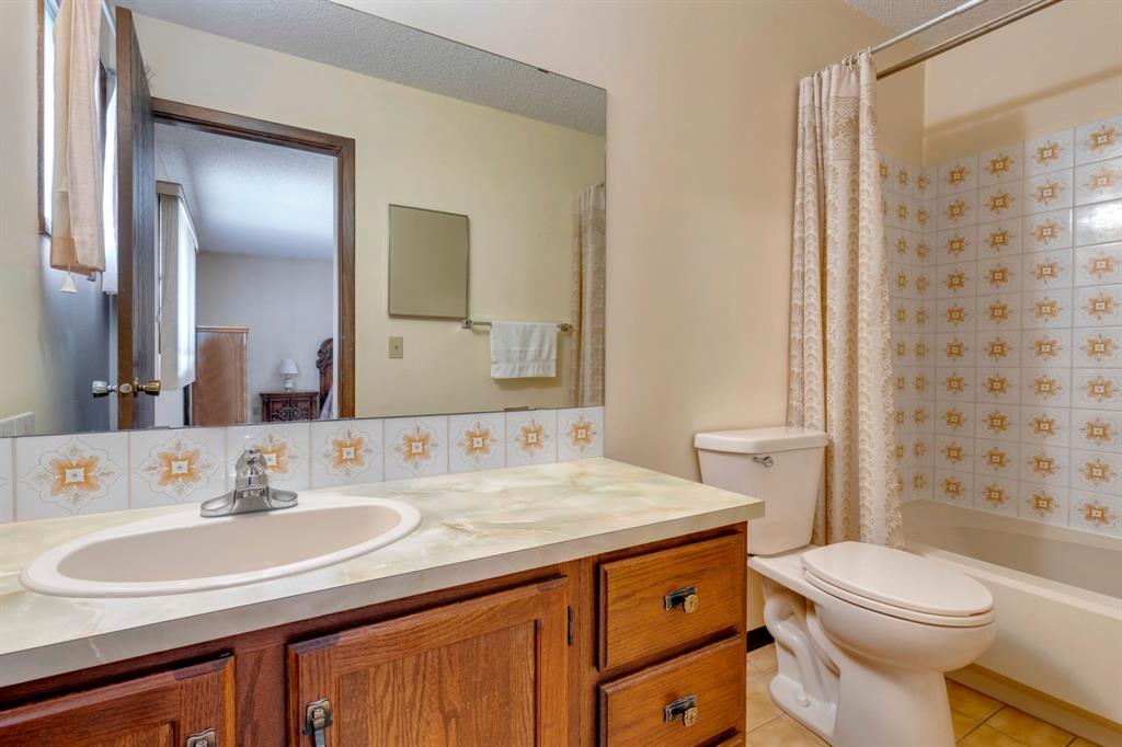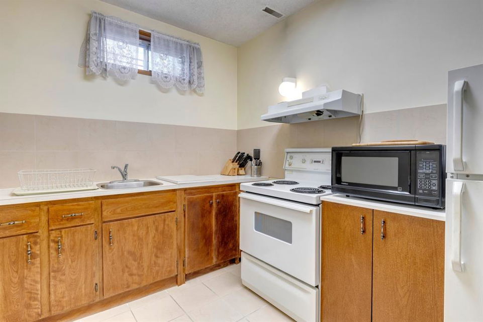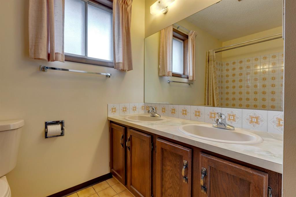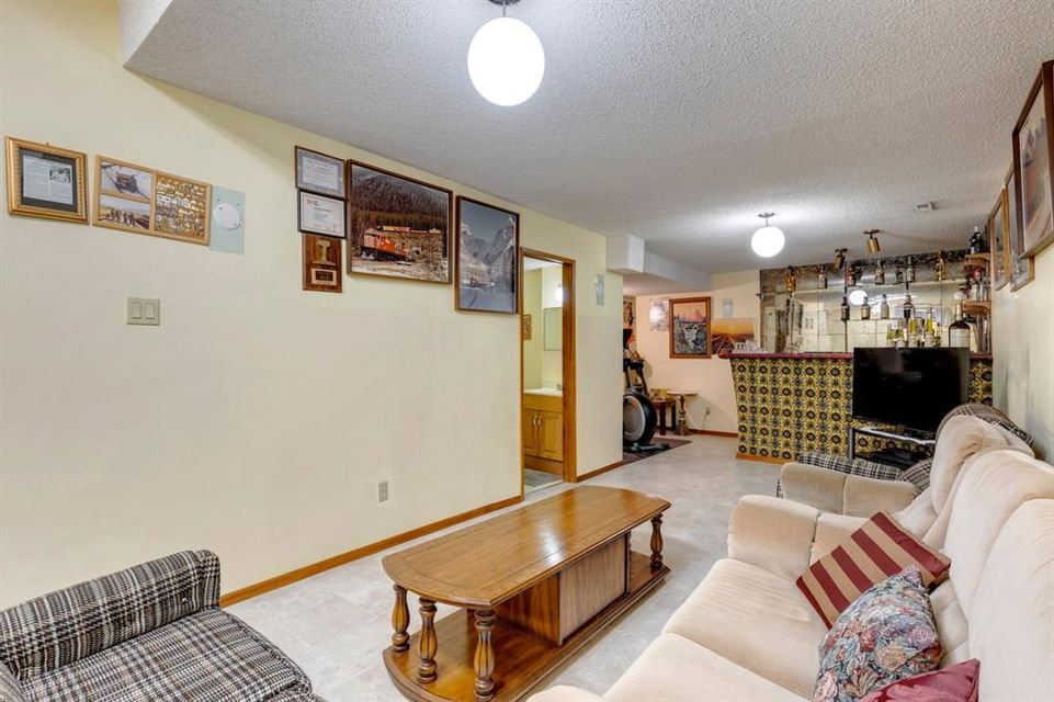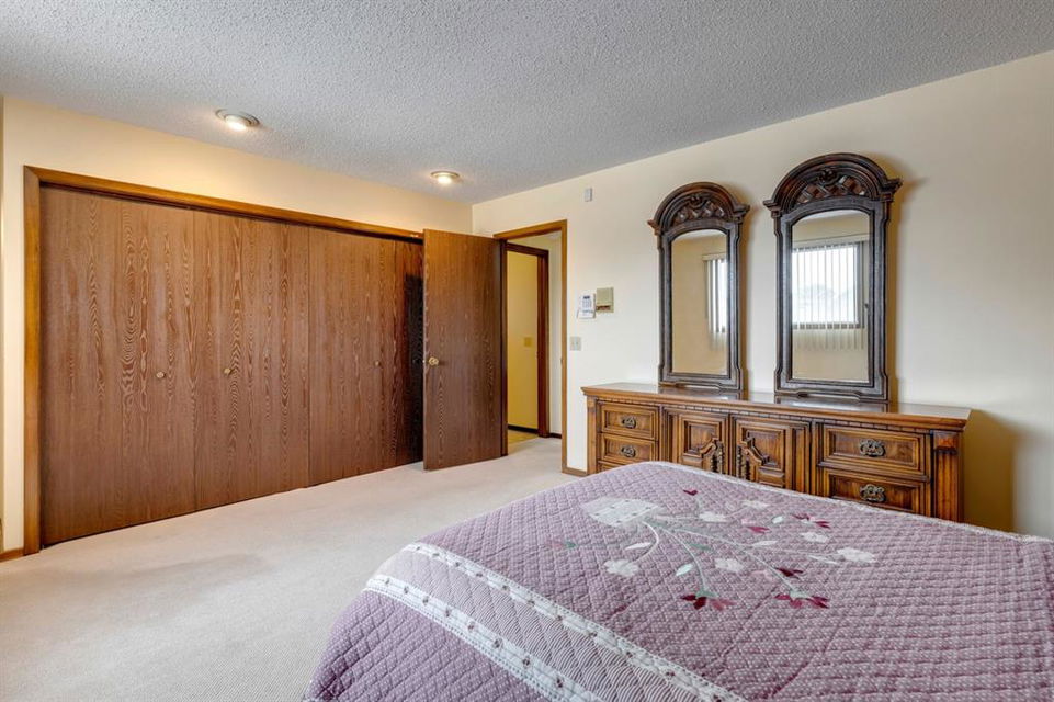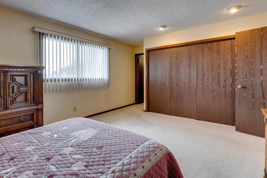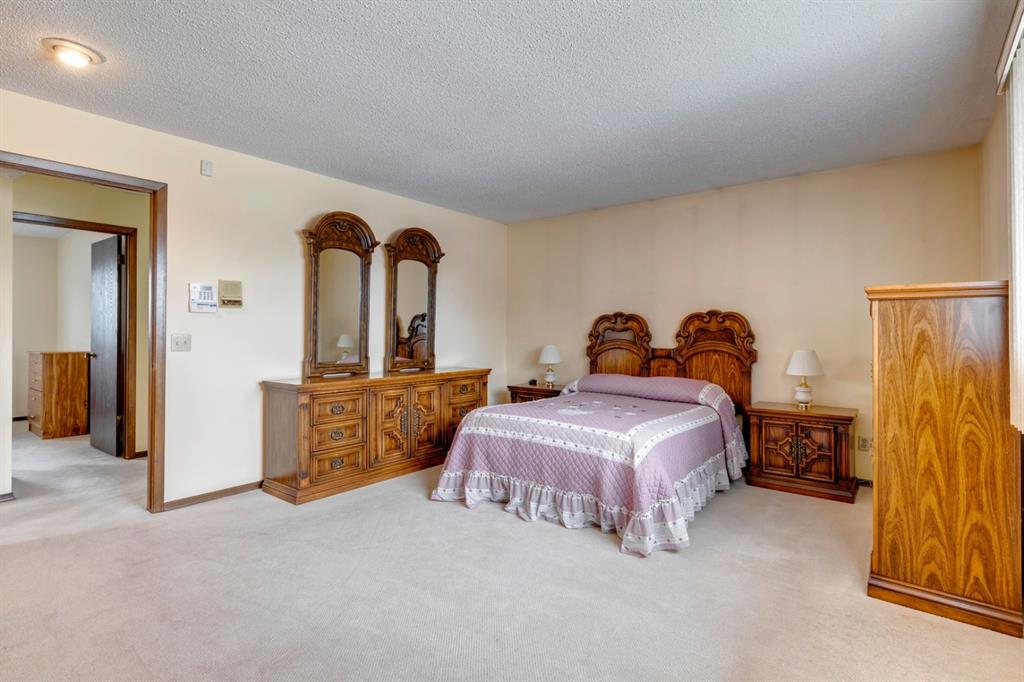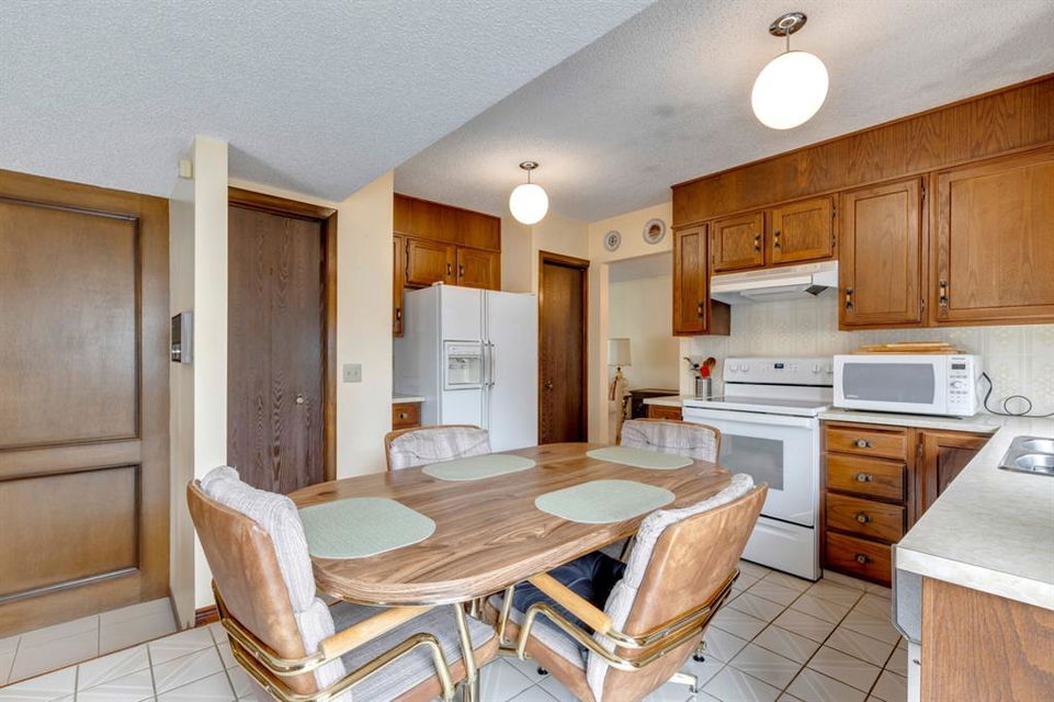 Temple – 147 Templevale Place NE: Welcome to this well-maintained original owner family home located on a quiet cul-de-sac in the community of Temple. This rare, large 2 storey home features over 3,000 sq ft of development with 4 bedrooms above grade and a front attached double car garage. The main floor features tile flooring throughout; kitchen with breakfast nook, dining room; family room with brick, wood-burning fireplace, built-in shelves with wainscotting and sliding door to the backyard; spacious living room; main floor bedroom and 2 pc bathroom. The upper level features a spacious primary bedroom with a 4 pc ensuite, 2 additional bedrooms and a 5 pc main bathroom. The fully developed lower level has a kitchenette with eating area, rec room with wet bar, and plenty of space for a storage room or games room. The backyard features a large, concrete patio, raised garden beds and greenhouse which can easily be removed. This home is in excellent condition and shows pride of ownership throughout. Located in the mature community of Temple near parks, schools & shopping. Call for more info!