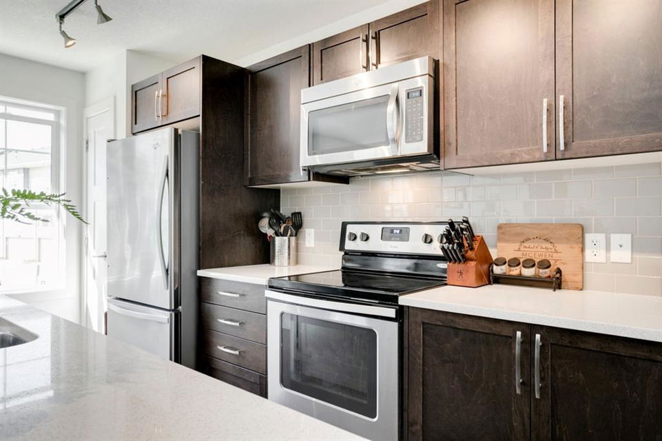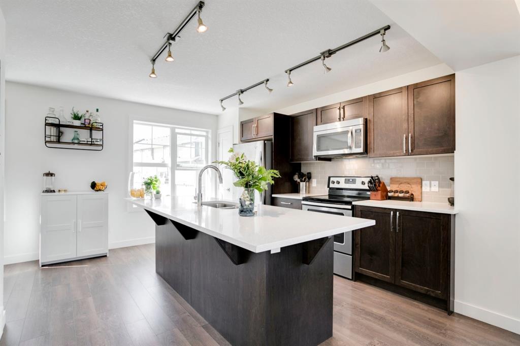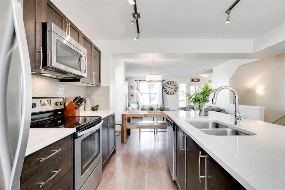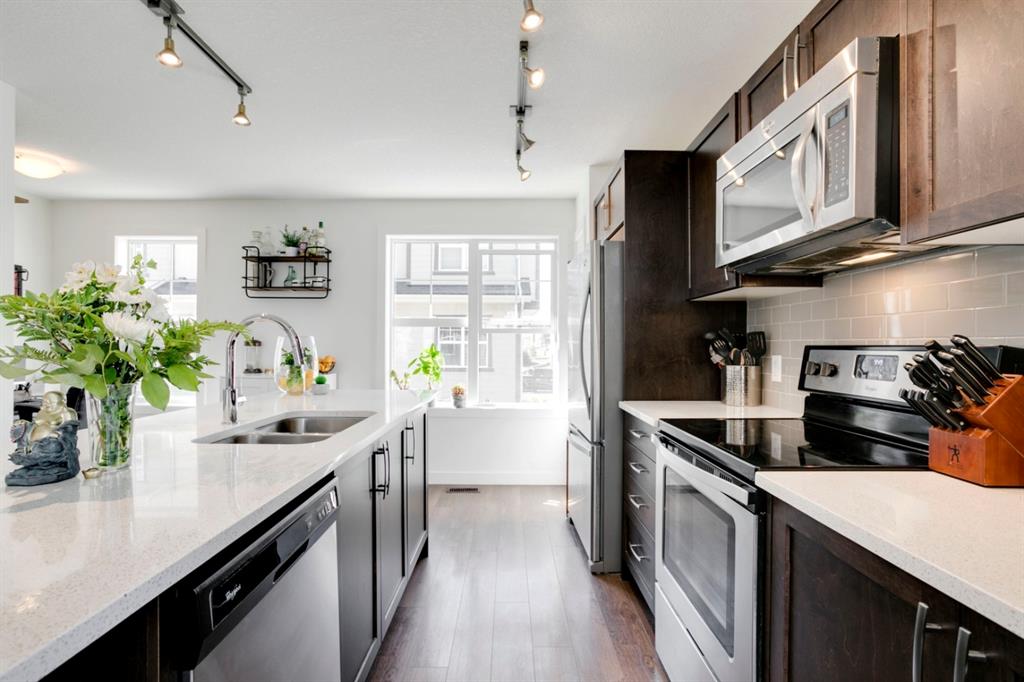 Evanston – 15 Evanscrest Court NW: Welcome to this immaculate 3 storey end unit townhouse featuring 1,324 sq ft of development, 2 primary bedrooms, 2.5 bathrooms & an attached double car garage. This sought-after end unit with extra windows features tons of amazing, natural light. The bright, open main floor features a kitchen with quartz countertops, island with seating for 3, corner pantry and stainless steel appliances; dining area; living room with balcony access; den area which can be used for a breakfast nook; 2 pc powder room. The upper level features double primary bedrooms, each with it’s own walk-in closet and 3 piece/4 piece ensuites; laundry room with stacked washer and dryer with additional storage. The developed lower level features a good-sized flex/rec room with access to the concrete patio. This unit is located within a short commute of Stoney Trail, Deerfoot Trail with quick access to other major traffic routes, Evanston Towne Shopping Centre, schools, and the airport. Call for more info.