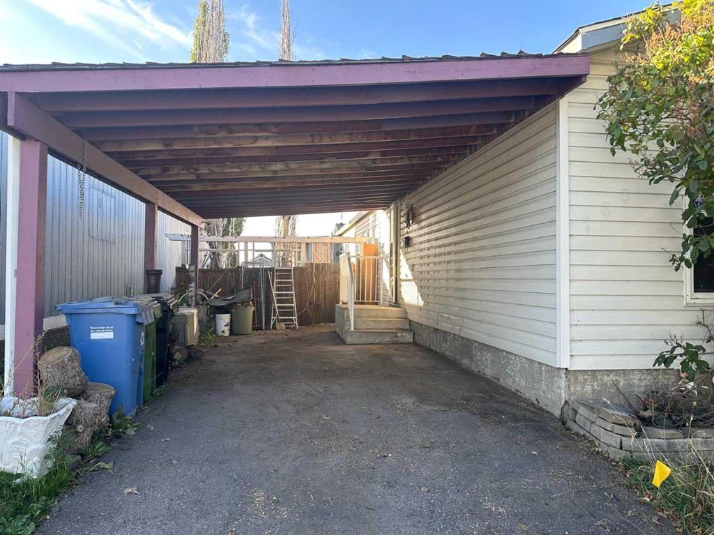 Erin Woods – 150 Erin Woods Circle SE: HANDYMAN SPECIAL – Fixer Upper – SOLD AS IS, WHERE IS. This property offers a chance to own titled land with no condo or pad rental fees. This standard layout modular home features just over 1,200 sq ft with a covered carport and driveway for a total of 2 vehicles. Inside, the layout includes a kitchen with an eating area, a living room, a primary bedroom with a 3-piece ensuite, two additional bedrooms, a 4-piece main bathroom, and a separate laundry room. This home is in a nice location within the park, with a south backyard, 2 decks, and a shed across the street from a park near a walking path. Conveniently located near Peigan Trail, Deerfoot Trail, Stoney Trail, and close to area amenities such as Erin Woods Park, East Twin Arena, and schools. Price reflects its current condition – great potential.