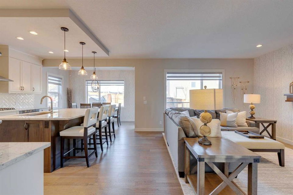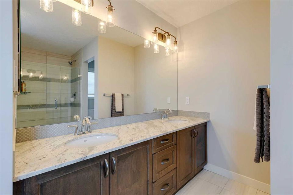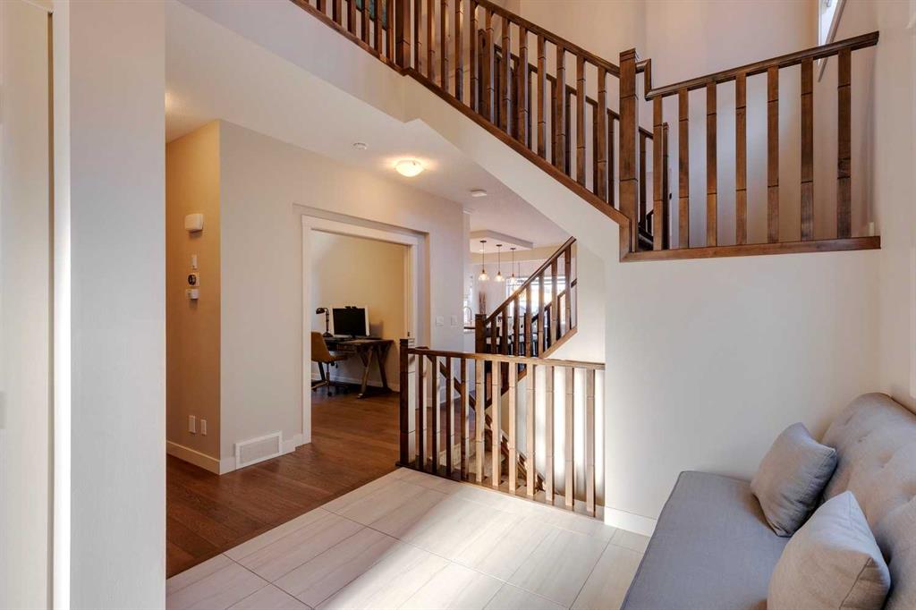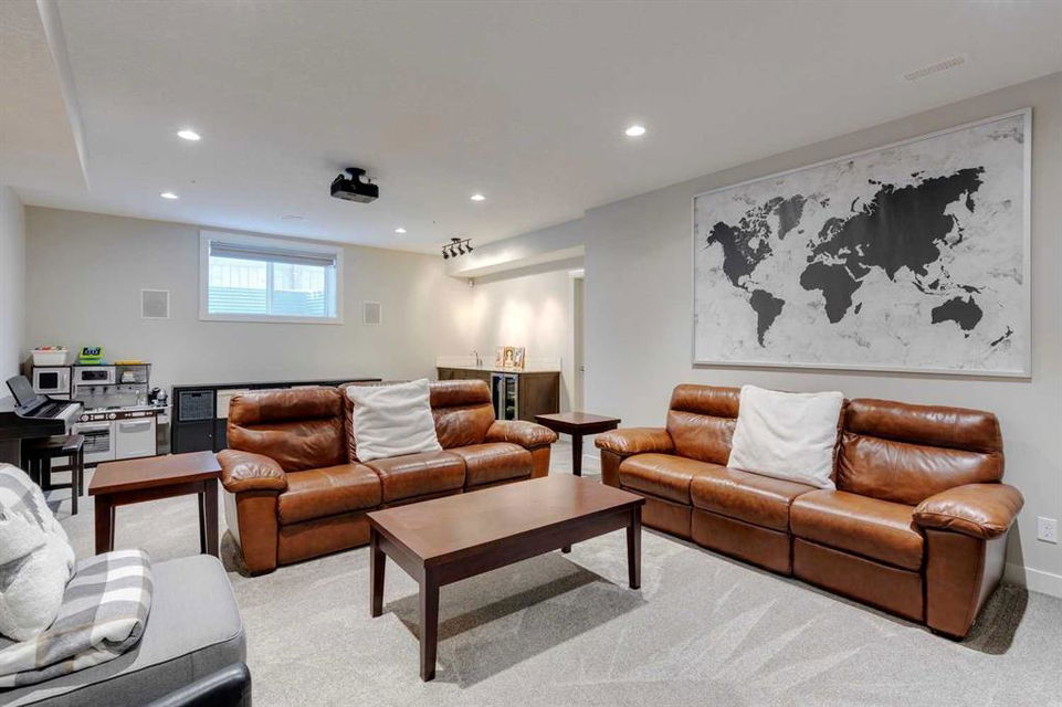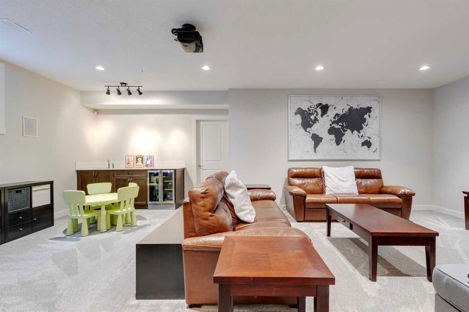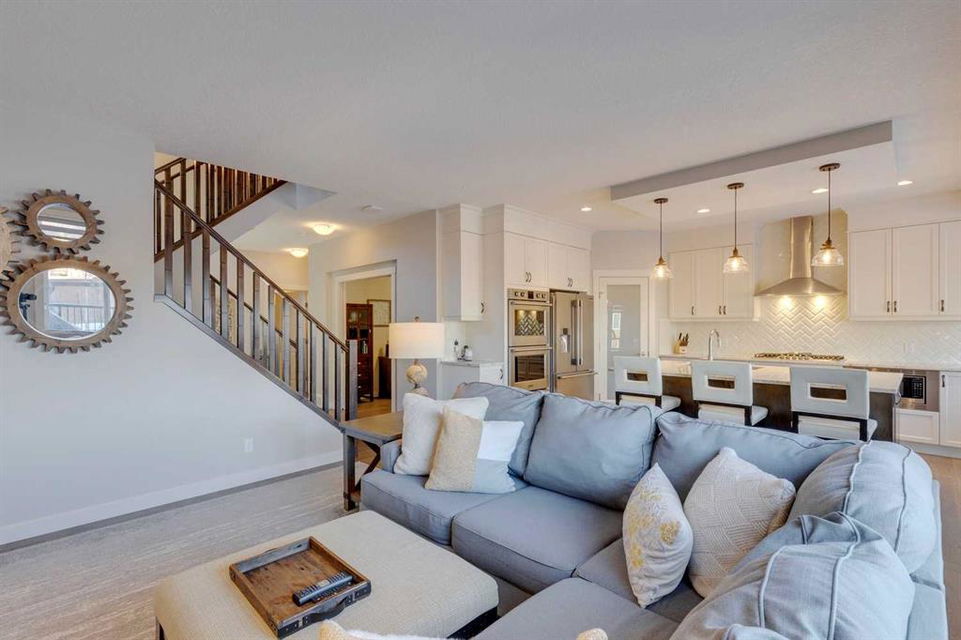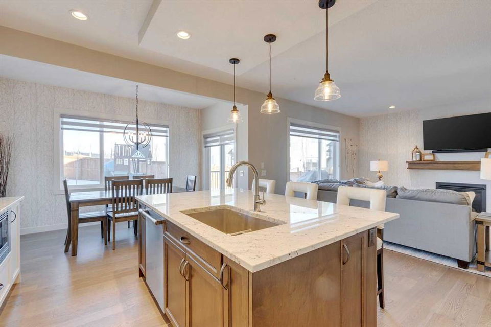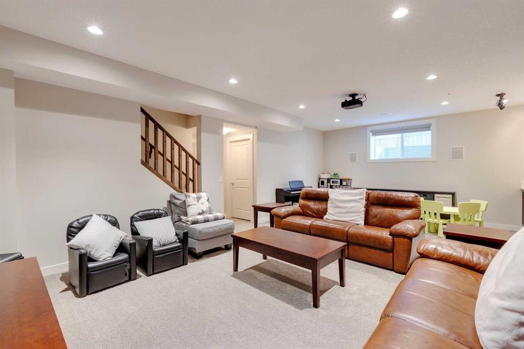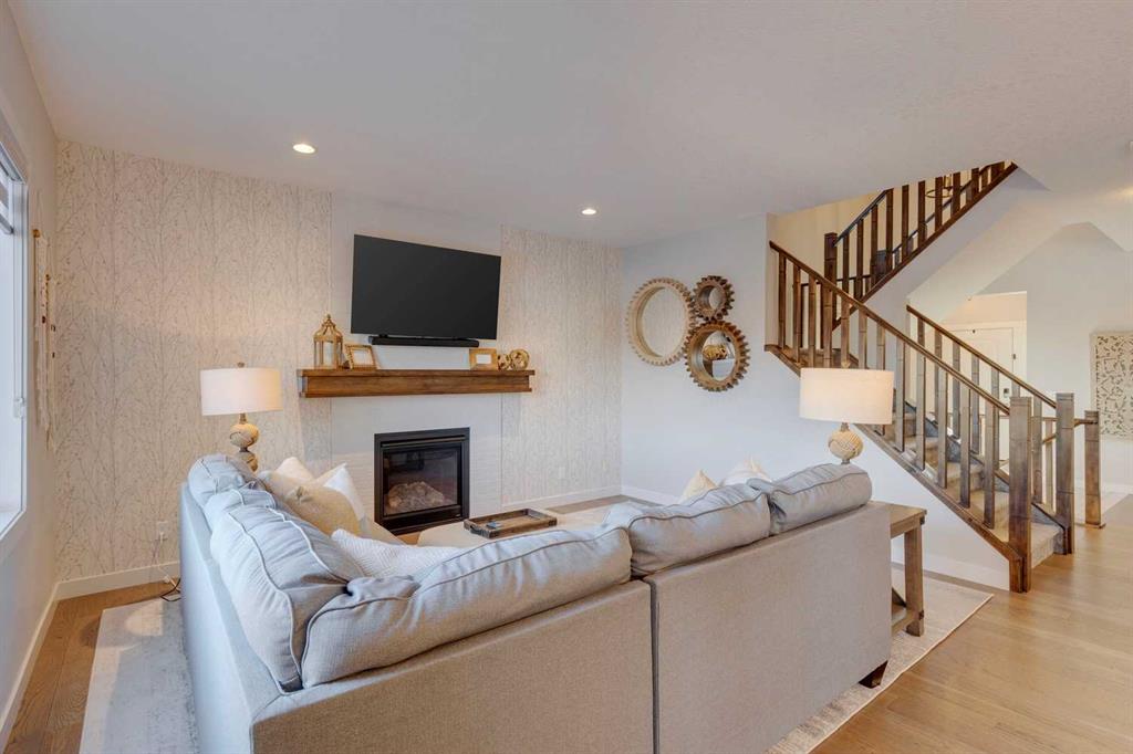 Nolan Hill – 153 Nolanhurst Place NW: Welcome to this immaculately maintained 3 + 2 bedroom, 3.5 bathroom estate home situated on a large 6,318 sq ft pie-shaped lot with central A/C and Gemstone Lights. This home, built by Shane Homes, is located on a quiet cul-de-sac featuring over 3,500 sq ft of total development including an oversized heated double-car garage with a spacious storage loft and room to park a truck. The bright and open main floor features hardwood floors a spacious open-to-above foyer; a kitchen with stainless steel appliances including a gas cooktop, dishwasher, built-in microwave, chimney hood fan, and dual wall ovens, corner pantry, and island with seating for 3; a breakfast nook with access to the backyard; a living room with gas mantle fireplace; a den with dual pocket doors and a 2 pc powder room. The upper level features a large primary bedroom with a walk-in closet, a 5 pc ensuite with granite countertops, dual sinks, soaker tub, and separate shower; 2 additional large bedrooms with walk-in closets; a built-in desk area, a central bonus room with built-in speakers; a laundry room with counter top and 4 pc main bathroom. The builder-developed lower level features a large family room/rec room with built-in speakers, projector and screen, a wet bar with a beverage fridge; 2 additional bedrooms, a 4 pc bathroom, and a dedicated storage room. This home shows 10/10 & pride of ownership is evident. This home is situated on a large, beautifully landscaped pie lot with a composite deck with a gas line, and exposed aggregate walkways including a storage shed and play structure. Located in Nolan Hill close to green spaces, playgrounds, shops, eateries, and close to many major roads. A must-see! You won’t be disappointed. Call for more info!