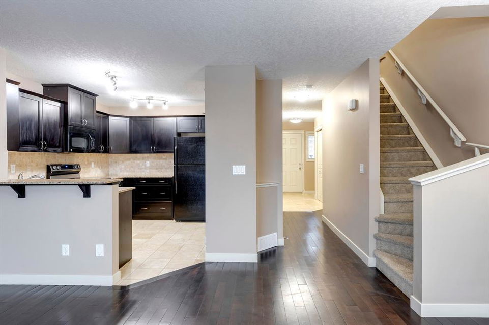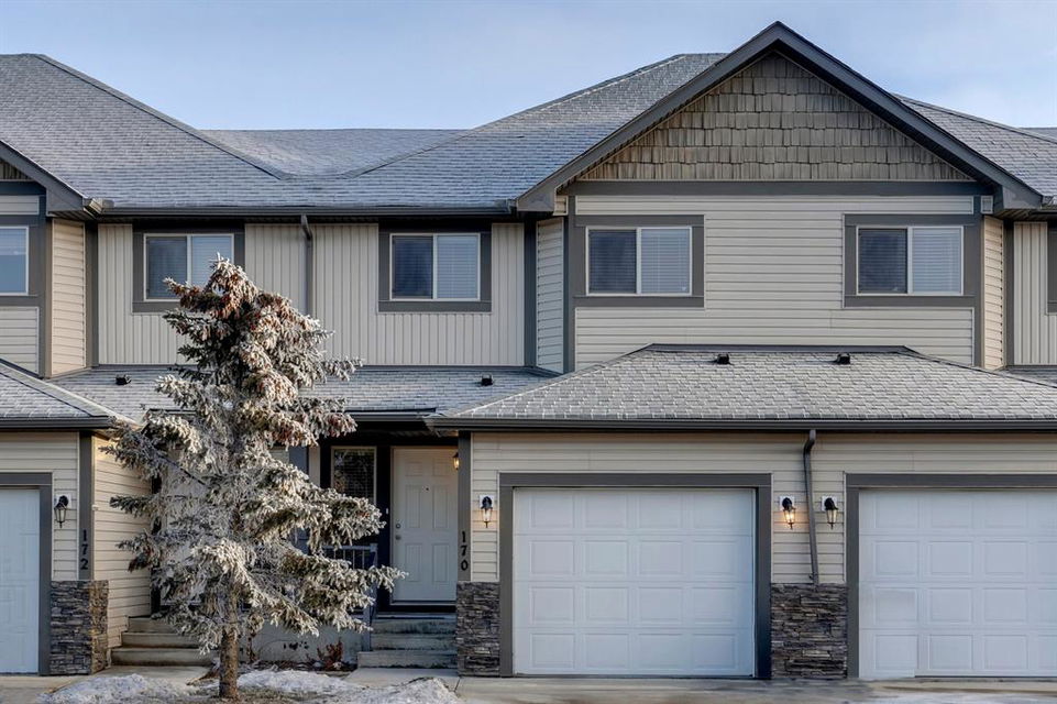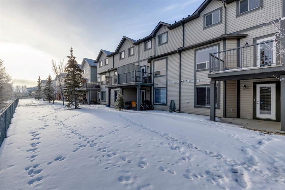 Bayside – 170 Bayside Point: This 2-storey townhouse with 3 bedrooms, 2.5 bathrooms, and an attached single-car garage is located in the community of Bayside. The main floor features a spacious entrance area, an open living room, a dining area, a kitchen with a breakfast bar, and seating for 2 chairs; 2-piece powder room. There is balcony access off the dining area with views of the canal and the walk-out basement allows for access to the open park-like setting yard, views of the canal, and a walking path. The home’s second level has a primary bedroom with a walk-in closet and a 4-piece ensuite, two additional bedrooms, and a 4-piece bathroom. The walk-out basement remains unspoiled with roughed-in plumbing, a laundry area, and a central vacuum system. The property is located in a great family-friendly community in the City of Airdrie, close to schools, shopping, and highway access, and only 15 minutes from Calgary. Vacant, turn-key & ready for quick possession. Call today for more info!