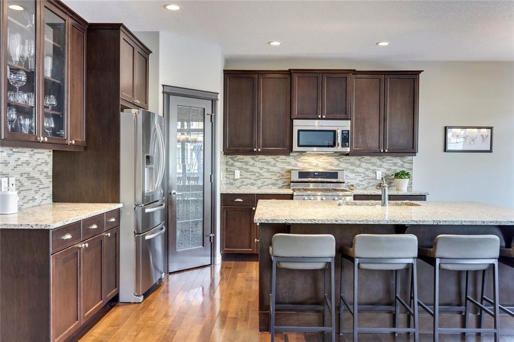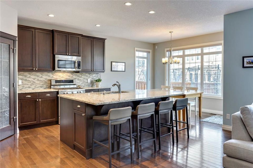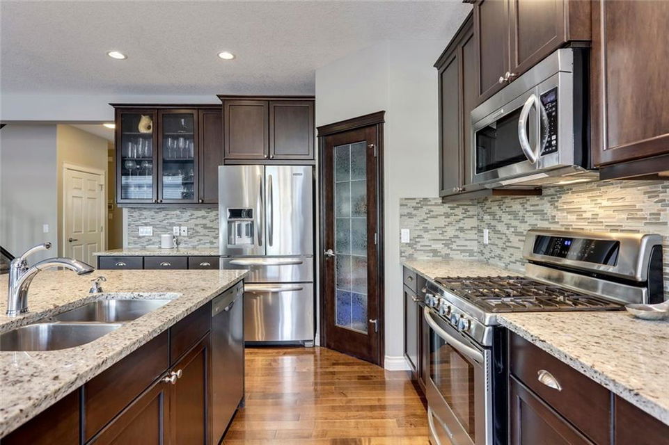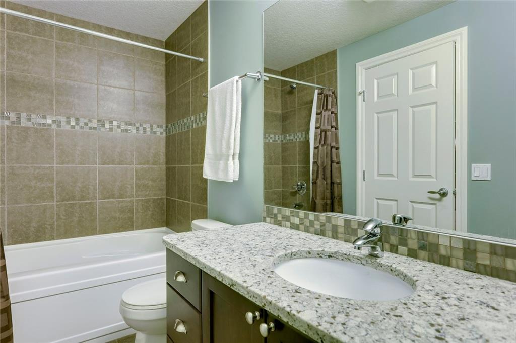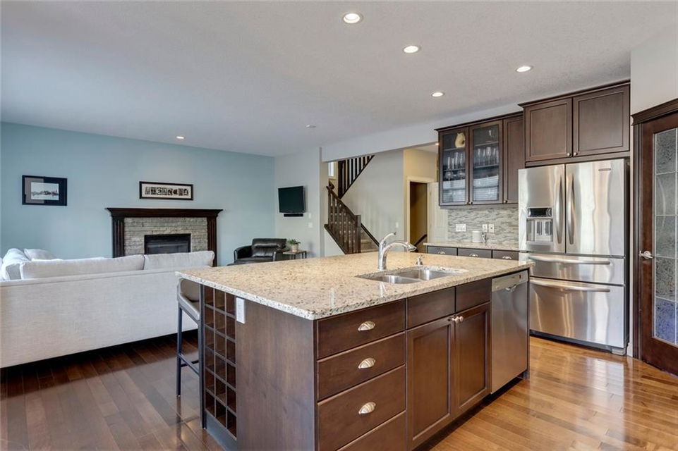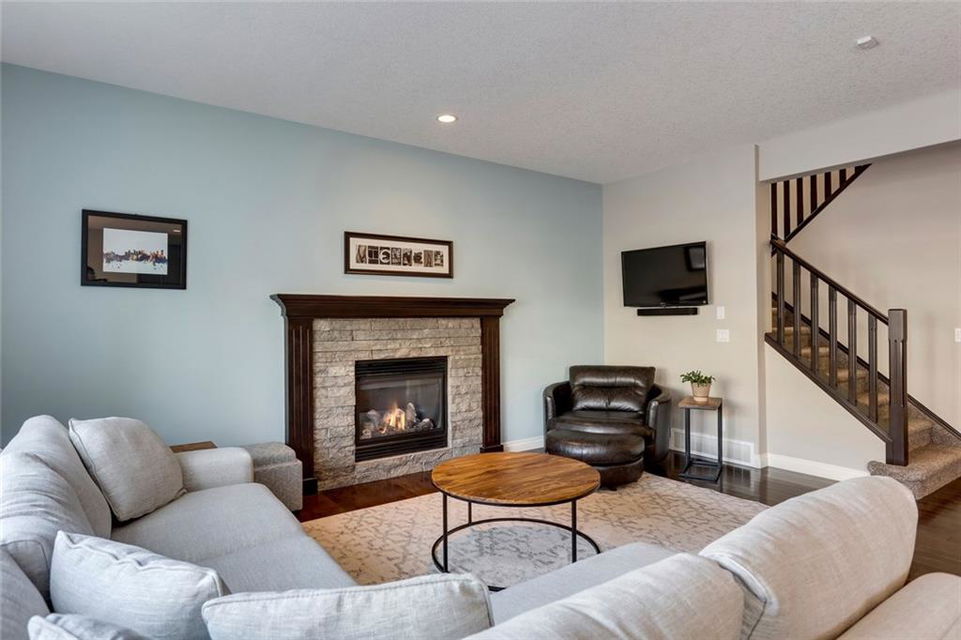 Aspen Woods – 176 Aspen Summit View SW: Welcome to this immaculate, well-maintained 2 storey home in the desirable neighbourhood of Aspen Woods. Main floor greets you with a flex room, spacious kitchen with gas stove & corner pantry, living room with gas fireplace, 2 pc powder room, large breakfast nook with access to the west facing backyard and maintenance-free Timbertech deck with gas hook-up and glass privacy wall. The second floor has a master bedroom with walk-in closet & 5 pc ensuite, 2 additional bedrooms, 4 pc bathroom, laundry room and bonus room. The fully developed basement has a dry bar with full-sized fridge, family room with 2nd gas fireplace, 4th bedroom, workout room with ventilation fan and 4pc bathroom. This home is situated on a quiet street, in the walk zone to Dr. Roberta Bondar, in the bus zone to Guardian Angel School, close to park, pathways and plenty of amenities. Call for more info!