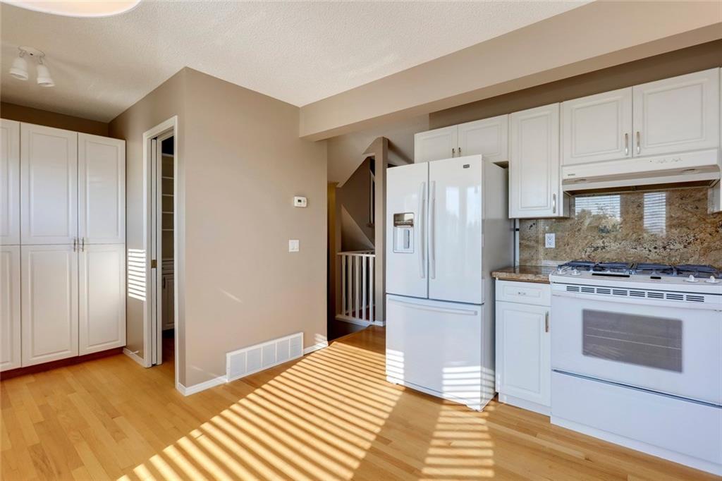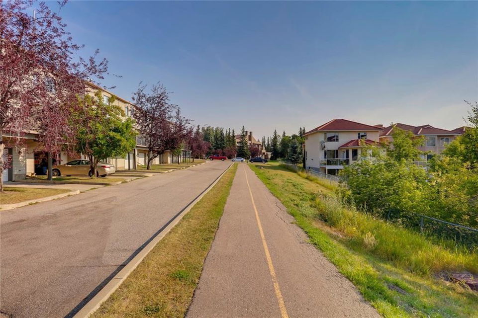 Patterson – 189 Patina Drive SW: Fantastic opportunity to own an end unit in Patina Park. This 1,226 sq ft 2 storey townhouse backs onto an environmentally protected green space and has downtown views from the balcony and master bedroom. Main floor features a kitchen with gas stove, living room with wood burning fire place, dining room and 2 pc powder room. The upper level has a large master bedroom with 2 pc ensuite, an additional good sized bedroom with 4 pc bathroom and laundry. The lower level of the home has a non-conforming bedroom with access to the single car attached garage. This complex offers plenty of visitor parking and provides quick access to access to Bow Trail or Sarcee Trail and steps away from public transport and all amenities. Recent updates to the unit include new carpet & paint. Quick possession available. Call today for more info!