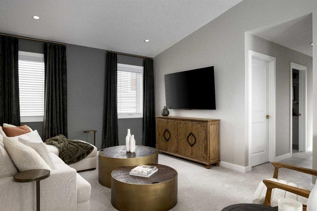 Pre-Construction Property – Solara by Shane Homes The Solara is designed for flexibility—love it or customize it to fit your lifestyle. With this pre-construction opportunity, you can customize everything from layout to finishes, ensuring your home is exactly how you want it. This thoughtfully designed home features 9′ basement ceilings, a welcoming foyer, and a versatile central lifestyle room that can be tailored to your needs. The L-shaped kitchen includes a spacious island and walk-in pantry, flowing into a bright dining nook and an open-concept living room with a gas fireplace. Upstairs, a central family room separates the owner’s bedroom from the secondary bedrooms, adding privacy. Enjoy a laundry room with storage, walk-in closets in every bedroom, a 5-piece main bath, and a spacious rear owner’s bedroom with a walk-in closet. Photos are representative.