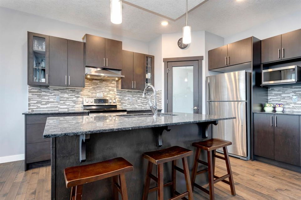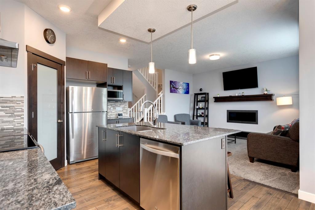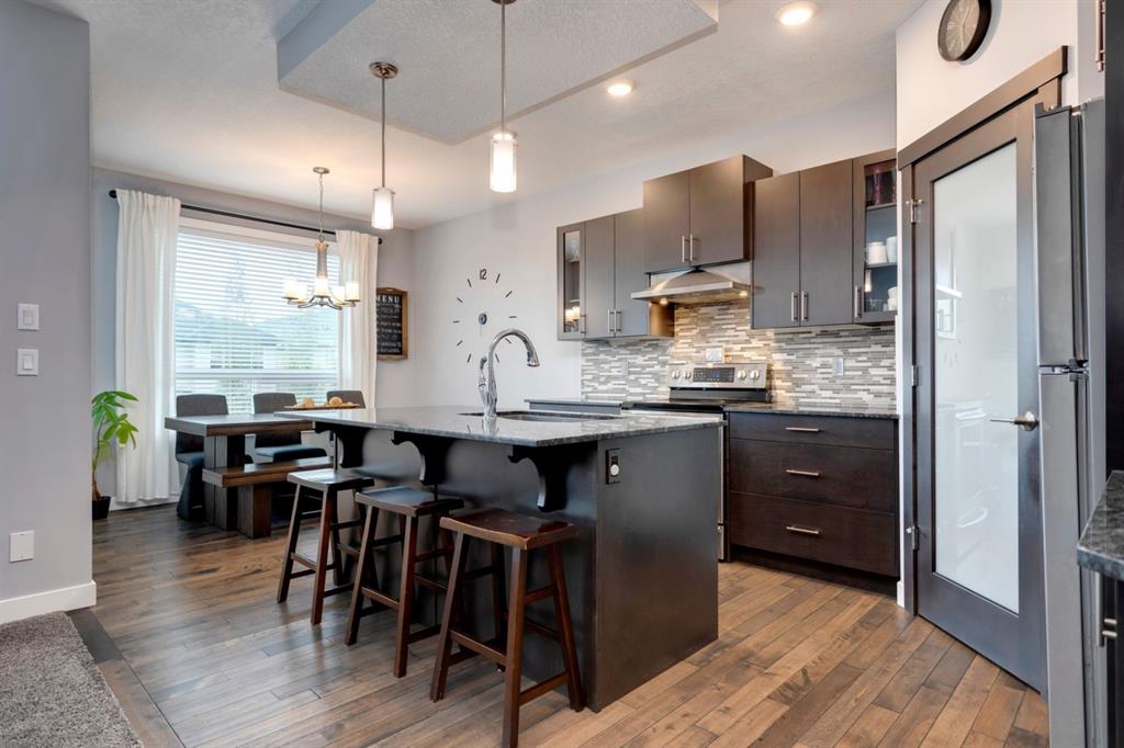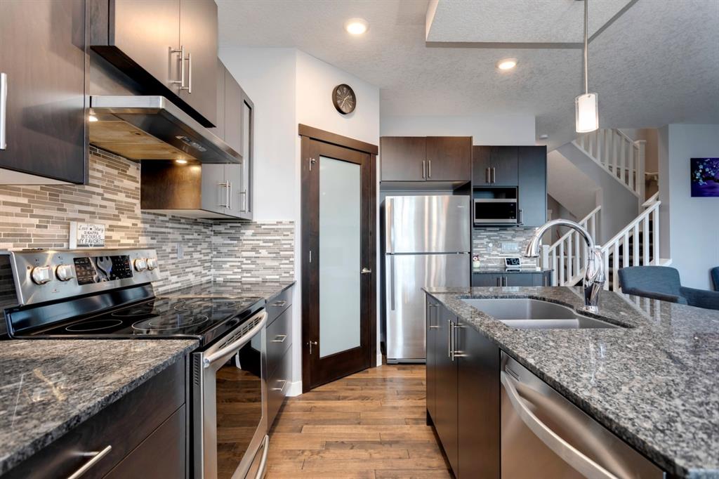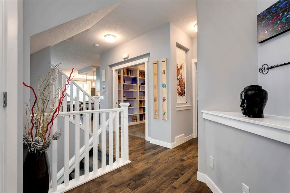 Hillcrest – 2057 Hillcrest Green SW: Welcome to this immaculate 3 bedroom + 2.5 bathroom 2,020 sq ft home in the community of Hillcrest built by Shane Homes. The open main floor features a kitchen with stainless steel appliances, corner pantry, granite countertops and island; breakfast nook with access to the vinyl deck and yard, living room with gas fireplace; den with built-in shelves and double pocket doors and 2 pc bathroom. The 2nd level has a master bedroom and upgraded ensuite with full-tiled shower, double sink, soaker tub and vanity; 2 additional bedrooms both with walk-in closets; bonus room; laundry and 4 pc bathroom. The lower level remains unspoiled. Additional features of the home include drywalled, painted and insulated double car garage, spacious west-facing backyard, central A/C located on a quiet street. This turn-key home shows pride of ownership throughout and boasts plenty of upgrades. Located in Hillcrest close to Cooper’s Crossing Promenade, Hillcrest Playground and quick access to the QE II and Calgary. Call for more info.