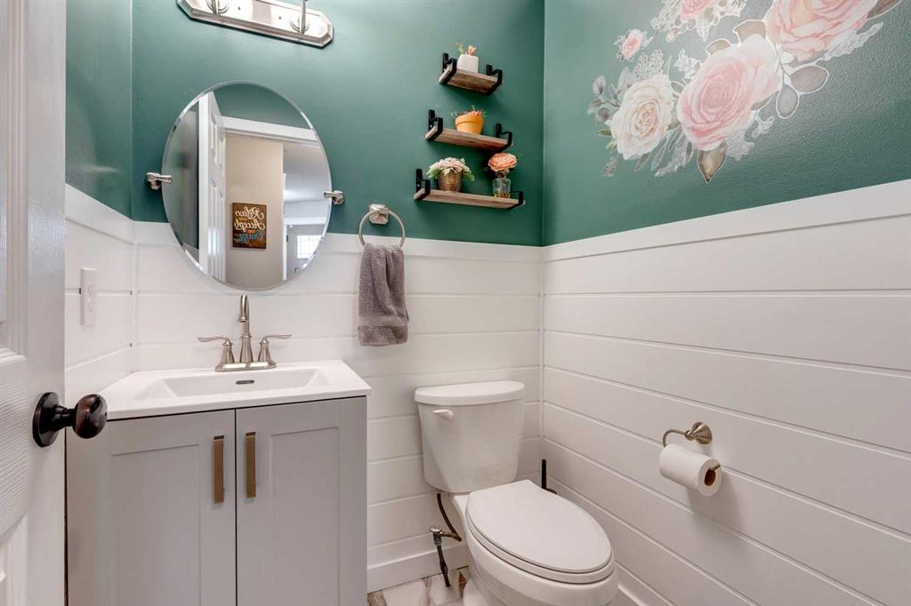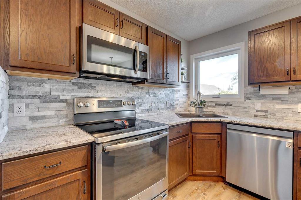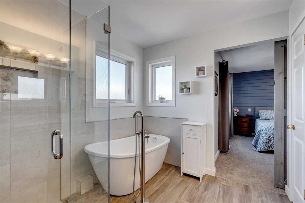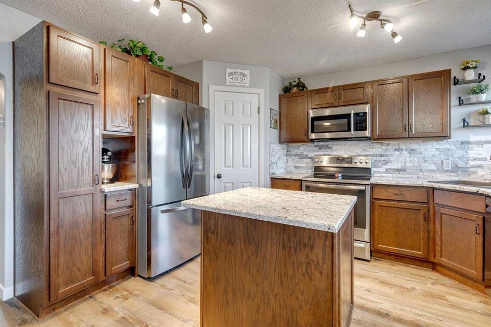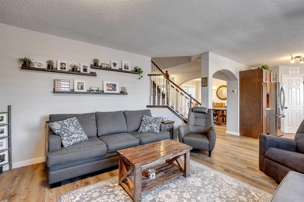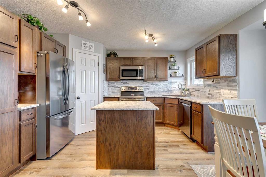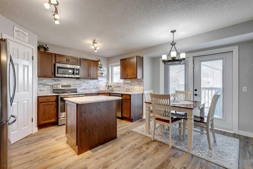 McKenzie Lake – 206 Mt Assiniboine Place SE: Welcome to this immaculately maintained and updated 2-storey family home located in the desirable community of McKenzie Lake. This fully developed home features over 2,500 sq ft of development, 3 + 1 bedrooms, 3.5 bathrooms, and an attached double-car garage. The main floor features a renovated kitchen with stainless steel appliances, a corner pantry, a central island, and a breakfast nook with French door access to the back yard; a living room with a gas fireplace; a formal dining room that can be used as a main floor den; a 2 pc powder room and a laundry room with upper cabinets and a broom closet. The upper level features a spacious primary bedroom with a sliding barn door leading to the updated 4 pc ensuite with a tiled glass shower, a free-standing soaker tub, a linen closet, and a walk-in closet; 2 additional bedrooms; a large southwest-facing bonus room with vaulted ceilings and tons of natural light; and a bright, renovated 3 pc main bathroom. The fully developed lower level includes a 4th bedroom, a recreation room, a games area, and a 3 pc bathroom. The fully fenced and landscaped backyard has a deck leading to a lower deck and a fire pit. Lots of upgrades and updates have been completed to the home over the years including the roof (2018), kitchen cabinets and countertops (2018), the 3 pc main bathroom (2020), windows, front and back door (2021), ensuite bathroom (2021), A/C (2022), vinyl flooring (2022) Hot water tank (2023) + more! Enjoy lake living in the community of McKenzie Lake. Lake members have access to the lake tennis courts, basketball courts, a beach volleyball area, a toboggan hill, a swimming area with sandy beaches and so much more. This suburban location offers quick access to shops, schools, McKenzie Meadows Golf Club, Stoney Trail, and Deerfoot Trail. Call for more info!