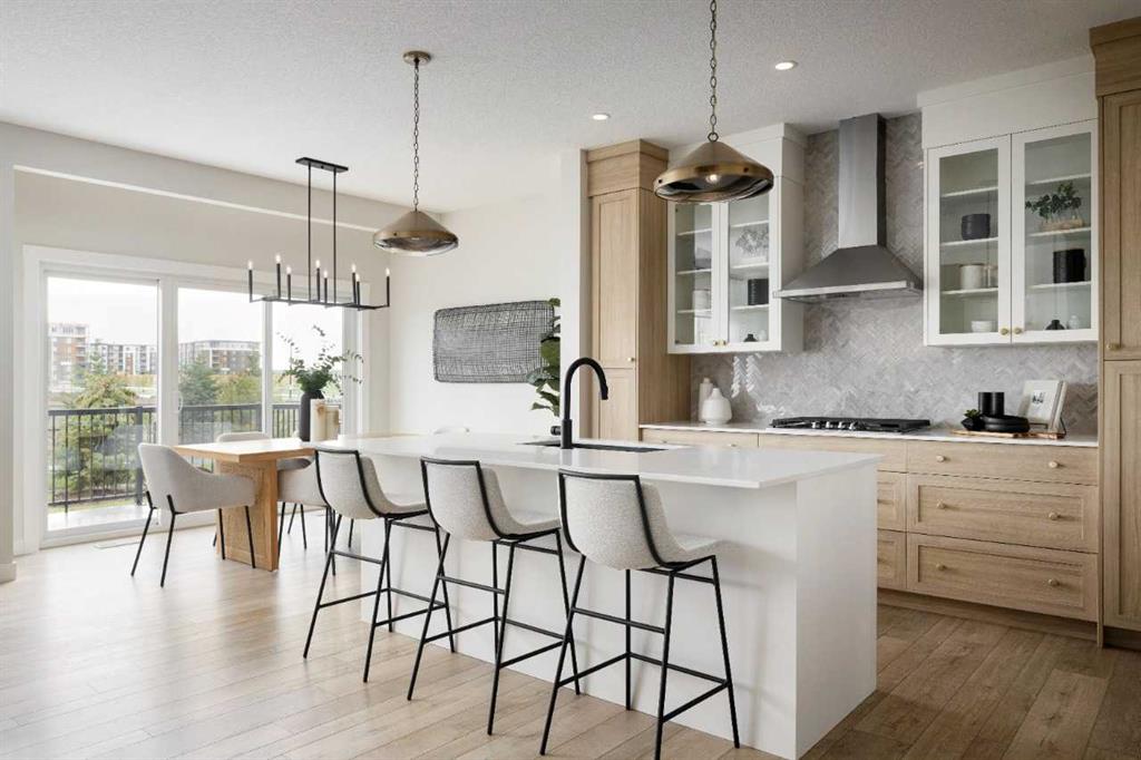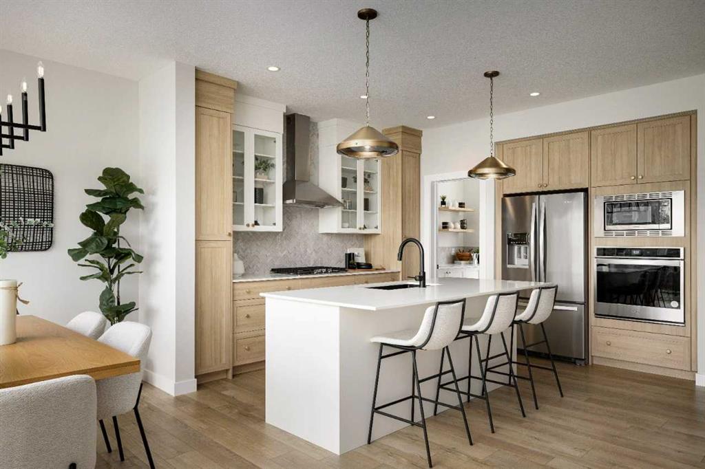 This fully customized Moraine Showhome by Shane Homes offers 4 bedrooms, 3.5 bathrooms, and thoughtful upgrades throughout. The upgraded kitchen includes extra space, a larger island, built-in microwave, and wall oven. The cozy living room features a gas fireplace and opens to the dining nook. The primary ensuite has been upgraded with a larger double vanity, shower, tub, and walk-in closet. A 2’ home extension adds extra storage and living space. The fully finished basement includes 1 bedroom and 1 full bathroom below grade, offering additional living space and flexibility. The rear deck with aluminum railing is perfect for outdoor enjoyment. Additional features include Luxury Vinyl Plank flooring on the main floor, ceramic tile in bathrooms, and walk-in closets in the secondary bedrooms. Possession is estimated for April/May 2025. Please note that photos may be representative.