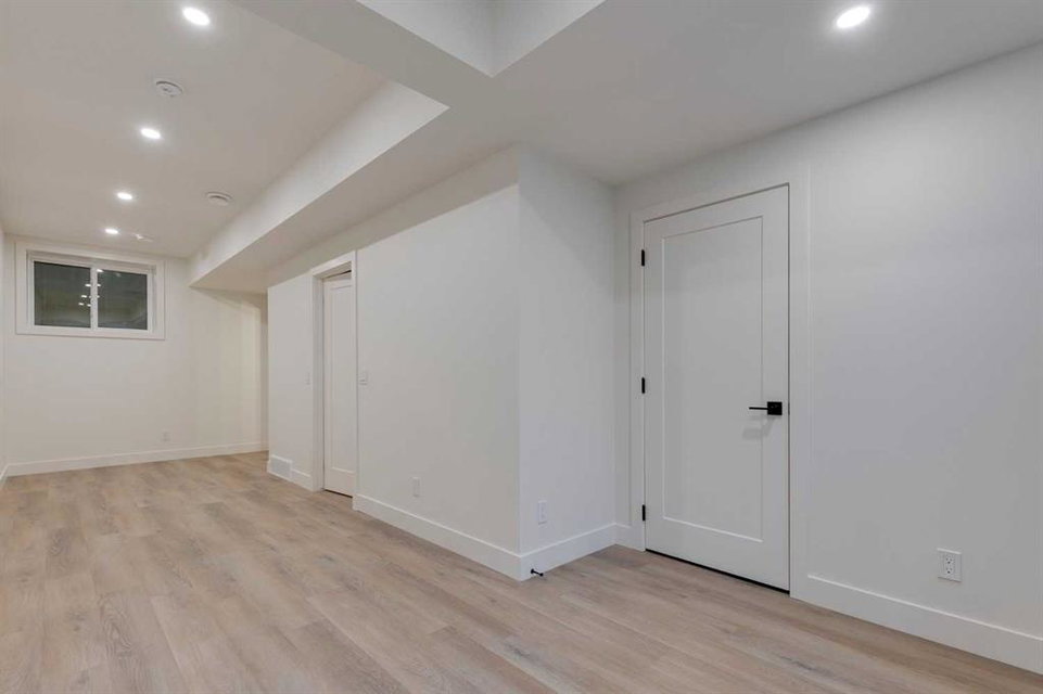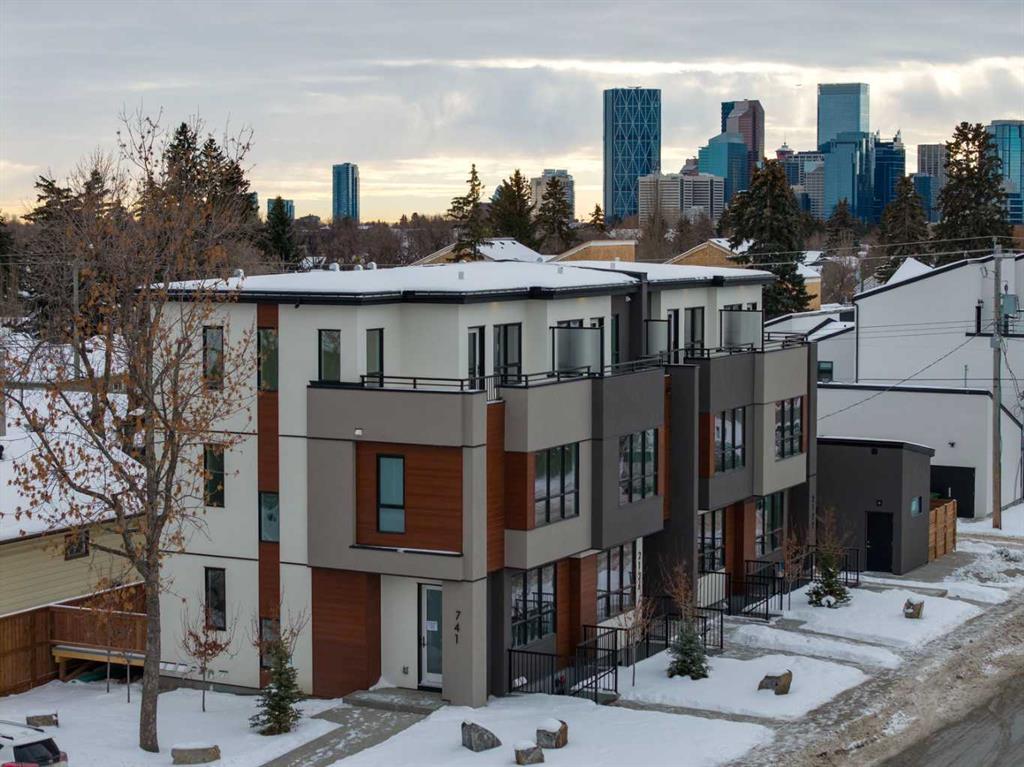 Mount Pleasant – New Price! 2124 7 Street NW: Welcome to this beautiful townhome offering 3 bedrooms, 4.5 bathrooms, a single-car garage, and over 2,100 sq ft of developed living space. Designed by respected Calgary architect John Trinh and Associates, this project showcases high-level craftsmanship, thoughtful material selection, and exceptional attention to detail throughout. The main floor features a spacious front entry, a bright living room with an electric fireplace and built-in shelving, and a central kitchen complete with stainless steel appliances, an island with seating, a pantry cupboard, and a dining area with access to the deck. A convenient two-piece powder room completes this level. The second floor offers two generously sized bedrooms, each with its own 4 pc ensuite. A well-equipped laundry room with cabinets, a sink, and a folding counter adds everyday convenience. The entire third level is dedicated to the primary retreat, featuring exclusive access to the top-floor balcony, a walk-in closet, and a luxurious five-piece ensuite with dual sinks, a soaker tub, and a walk-in shower. The fully developed basement includes a separate entrance, a spacious rec room, and a four-piece bathroom, providing additional living space and flexibility. 4 Units are Available! Ideally located in the heart of Mount Pleasant, one of Calgary’s most desirable mature communities, this home offers easy access to Confederation Park, SAIT, and the University of Calgary. Enjoy a quick commute to downtown along with nearby transit routes on 4 Street, Centre Street, and 20 Avenue, plus a great selection of local restaurants and coffee shops.