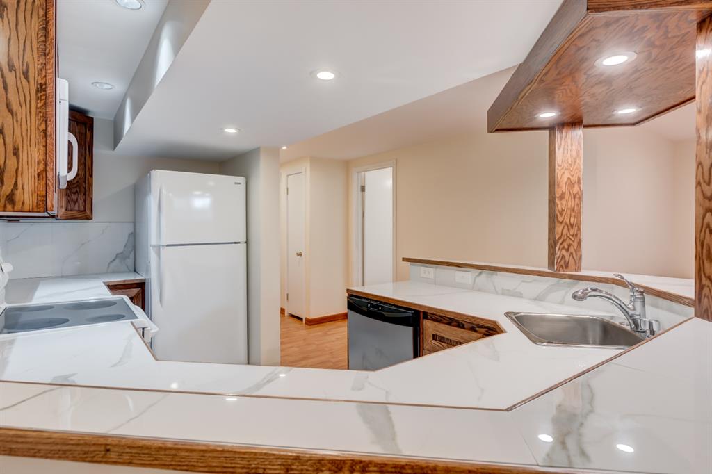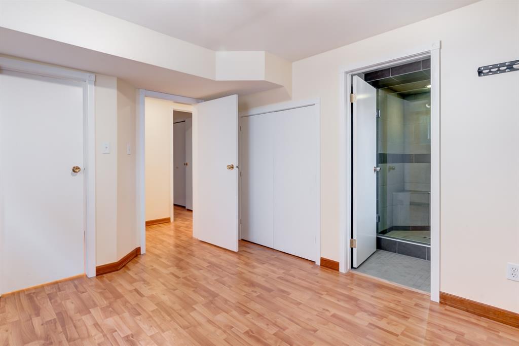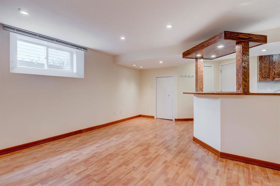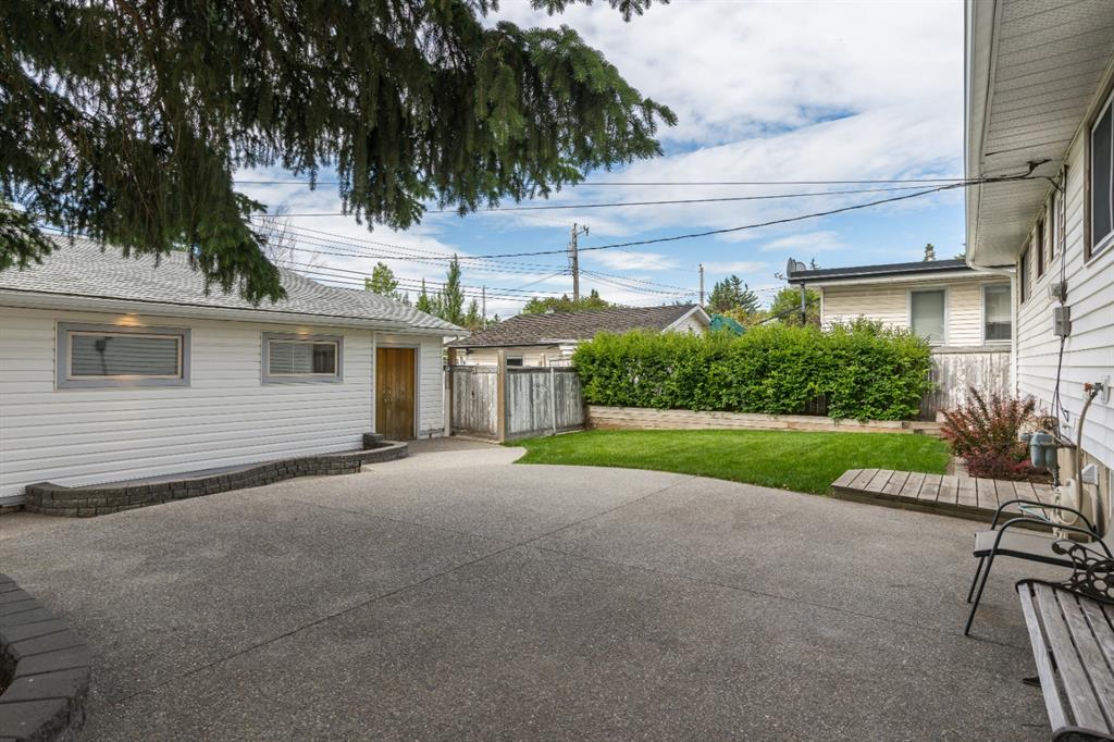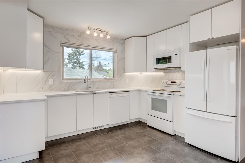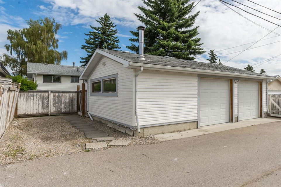 Spacious, open + updated bungalow with an AMAZING backyard and garage! Situated on the Westside of Thorncliffe and offering nearly 1100 SqFt, 3+2 bedrooms, 3.5 bathrooms and refinished hardwood floors. The all white kitchen is nicely appointed with updated cupboards, lighting, French door fridge, quartz counters and marble-tile backsplash while opening onto a good size dining nook. A spacious living room easily accommodates your furnishings and is accented with 2-sided fireplace which adds to the mid-century vibe of the home. The Master bedroom is well equipped with 2-piece ensuite while two other nicely proportioned bedrooms share the 4-piece main bath. Downstairs you will find one of the nicest inlaw suites (illegal) in the city with full Kitchen, large rec room and two additional bedroom (one with a 3 piece en suite) plus a full 4 piece bathroom. The large, private, south facing backyard features huge 2-tier exposed aggregate patio and leads to the massively oversized garage (23’2 x 33’2 | 769 SqFt) with wood burning stove.