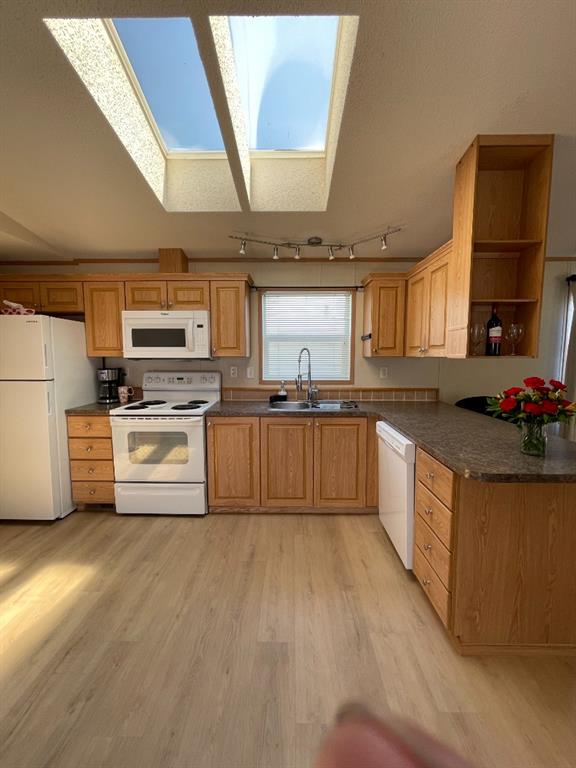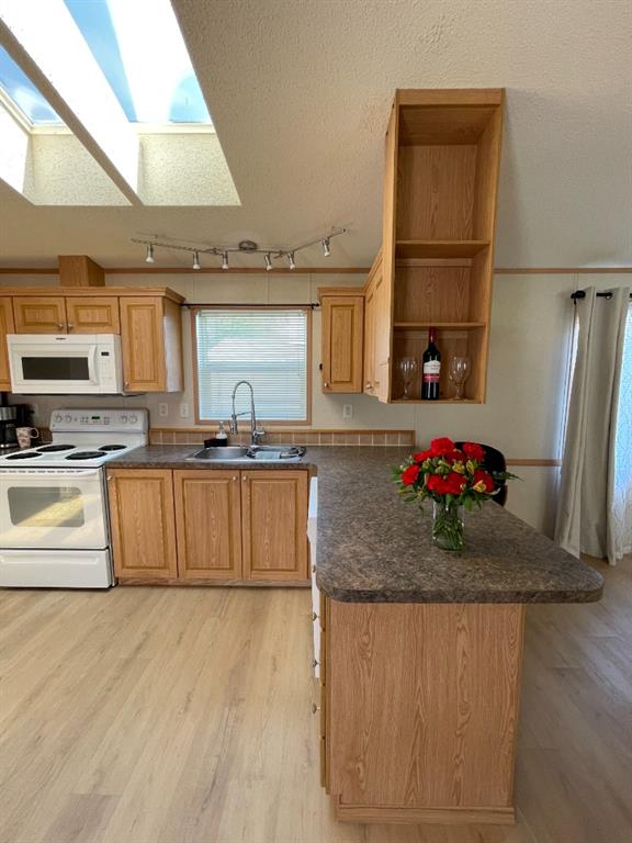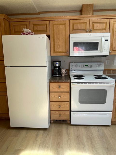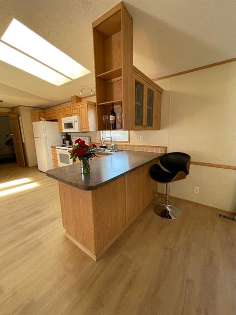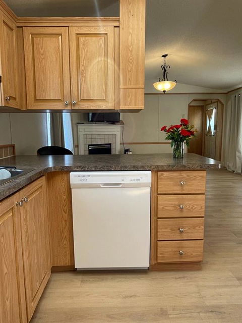 What a wonderful place to call home that has had over $20,000 of upgrades in this year! This newer modular home built in 2006 and has seen lots of upgrades and updates including luxury vinyl plank flooring (2022) 42 year asphalt roof shingles (2022) kitchen appliances (2022) paint (2022) and the list goes on! On the inside there are lots of great windows and even a skylight to let the natural light in. Good sized bedrooms with even the master bedroom having a walk-in closet and full 4 piece ensuite. Summer will be pleasant with your central air conditioning and the colder days are cozy with your fireplace in the living room. Your deck off the kitchen is a big 16’X16′ and the patio area is especially private with your tall fences and firetable ready to enjoy. There is a large shed for your storage, a long driveway that can fit 2 cars, and for extra RV/boat etc storage just a short distance away (for a small fee to the Park management.) There are playgrounds close by and even the new Farmers Market currently being built is a few minute walk away.