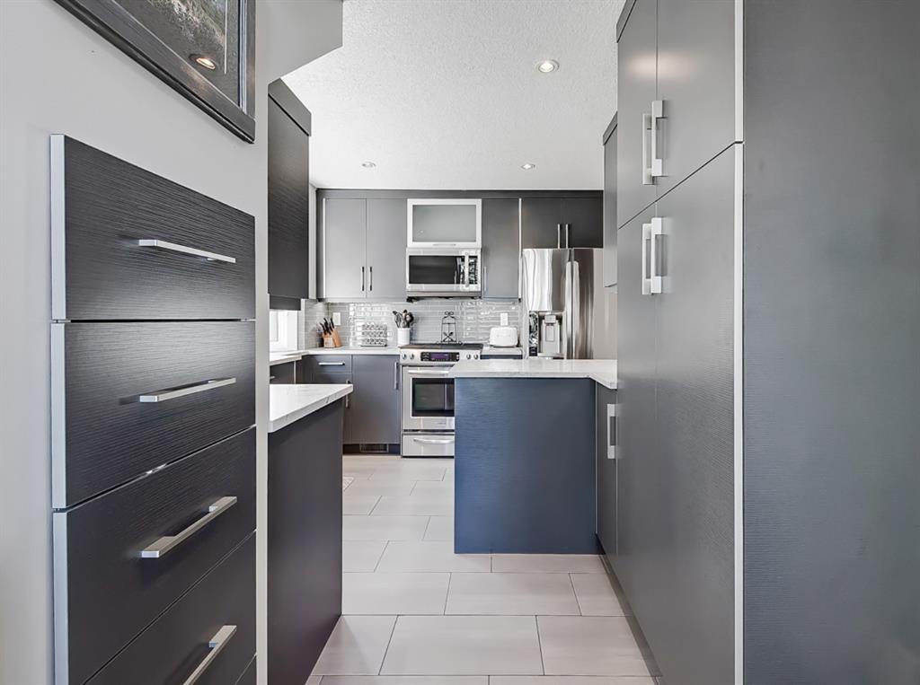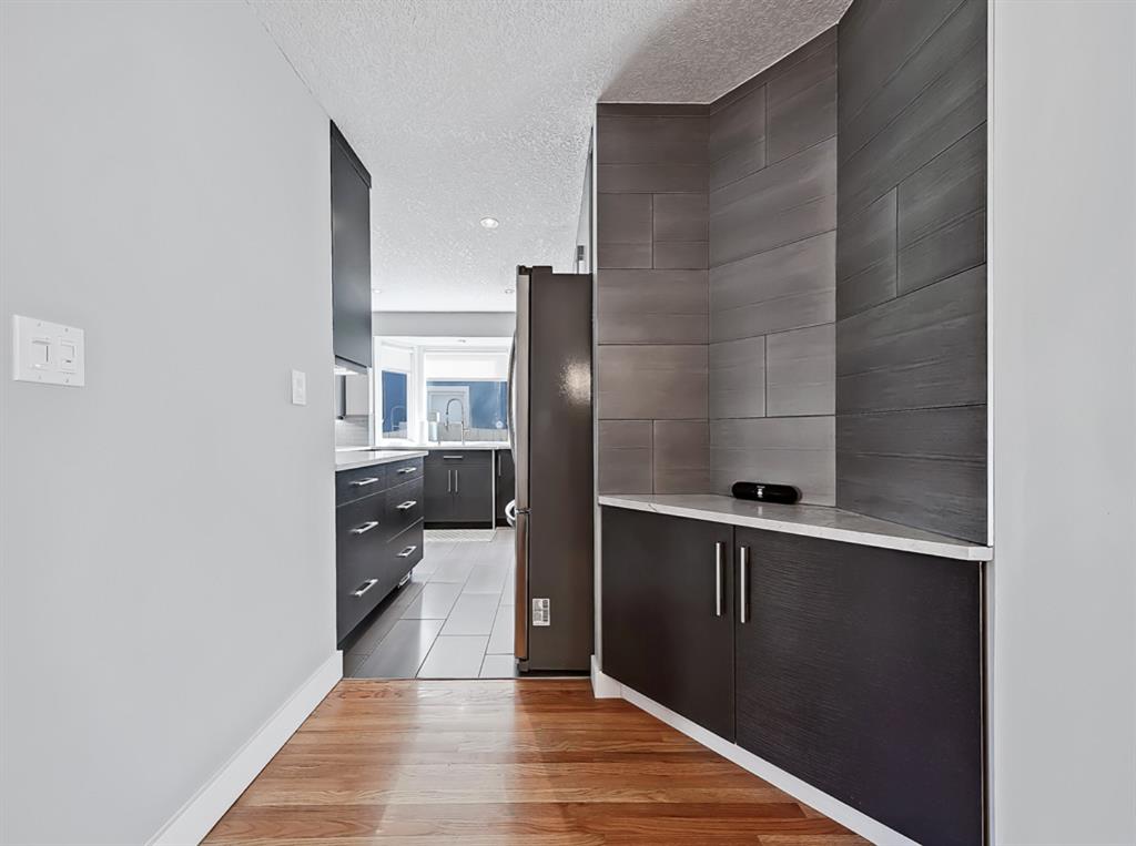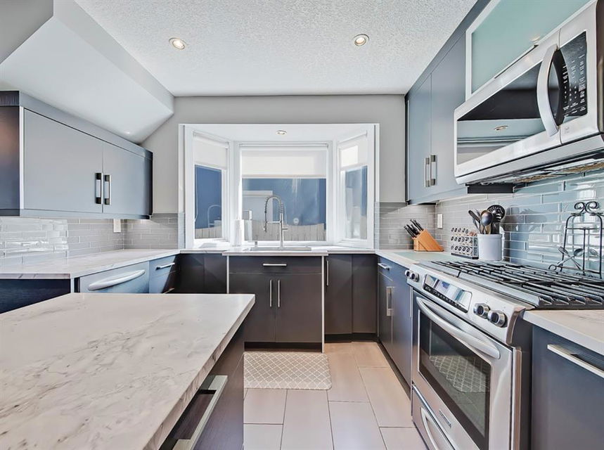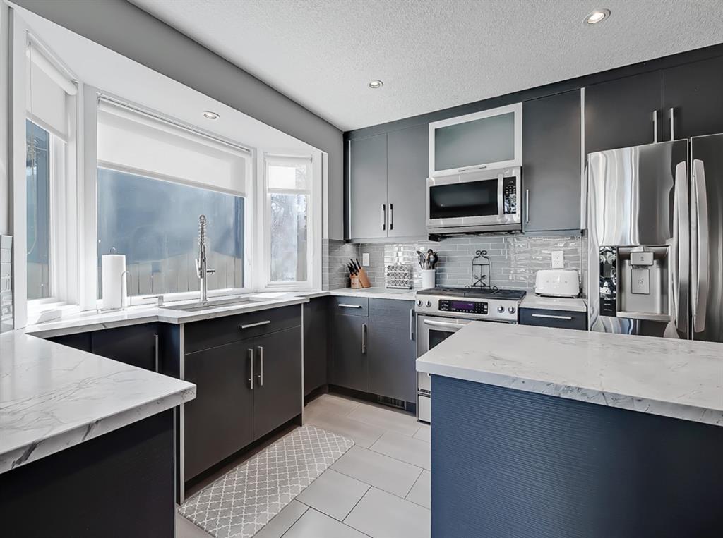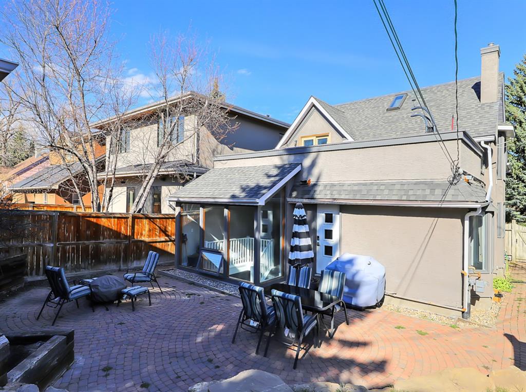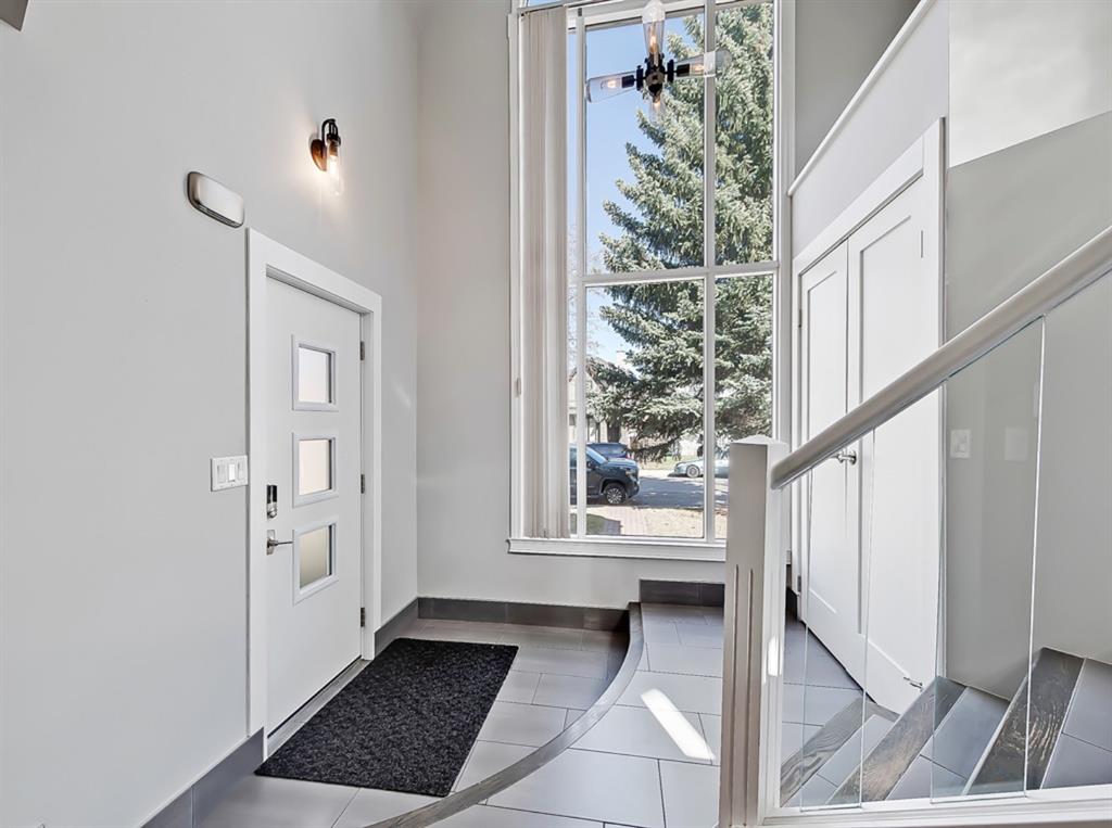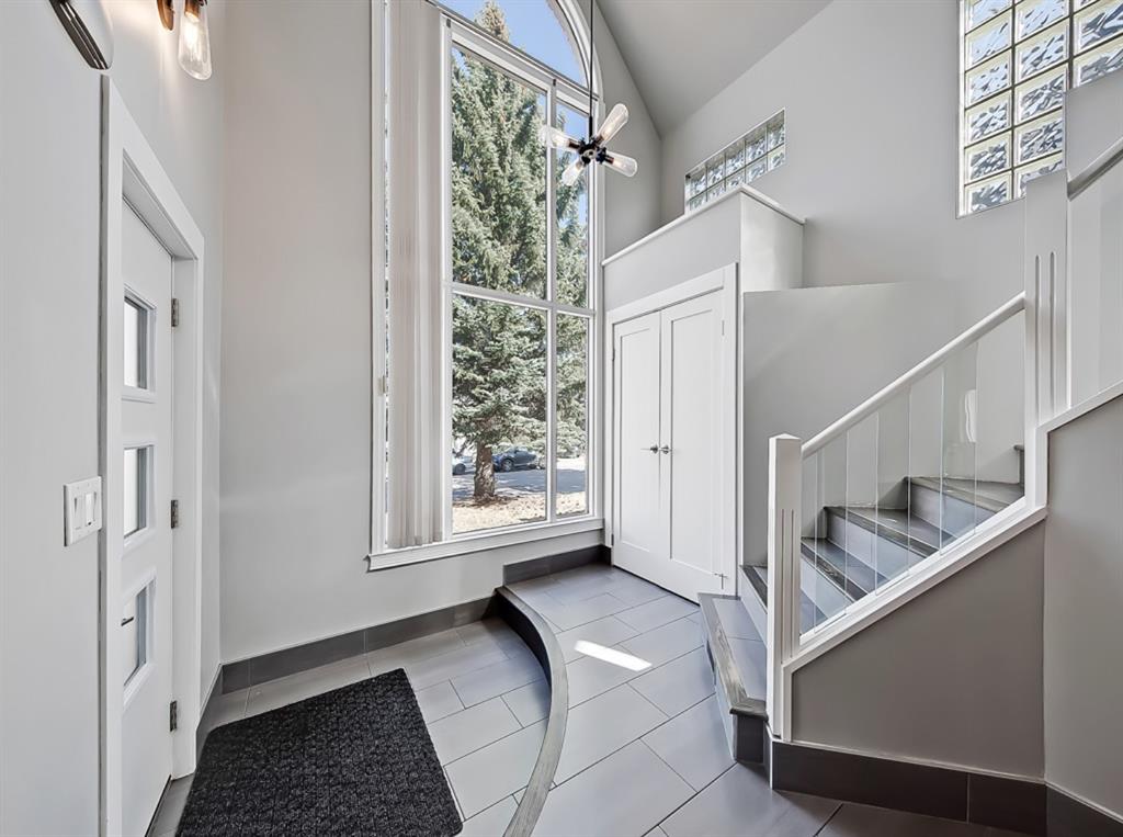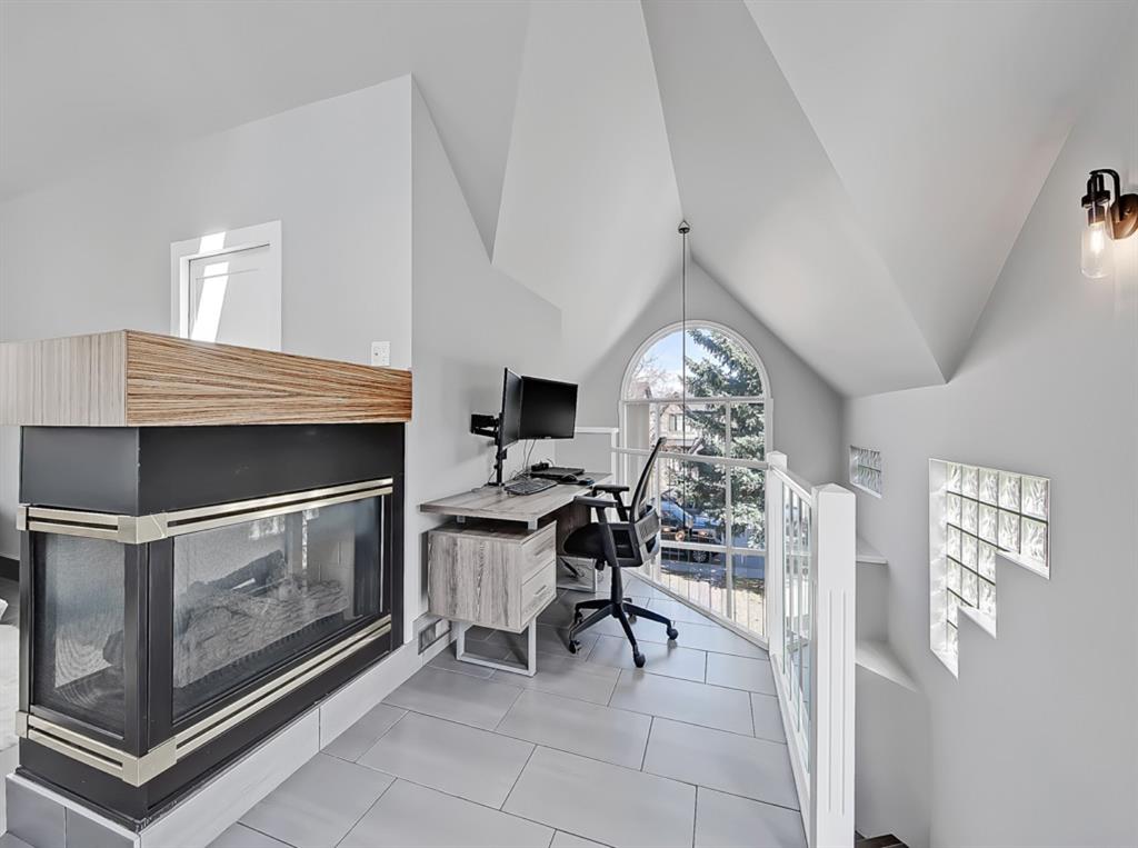 The entry-way is highlighted by an elegant window complimenting the 20” ceiling which floods the home with natural light. The updated kitchen offers ample cabinet space, ss appliances, quartz countertops and a gas stove. Conveniently located off the kitchen is a large dining room open to the front living-space accented by a tiled gas fireplace and built-ins. Enhancing the main floor is an additional bedroom and full bathroom. Perfectly placed office/sunroom overlooking the backyard drenched in light from 3 massive windows complementing today’s working lifestyle.
