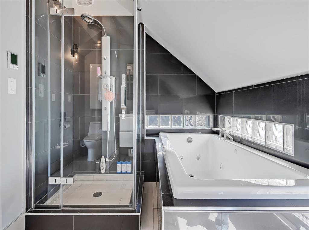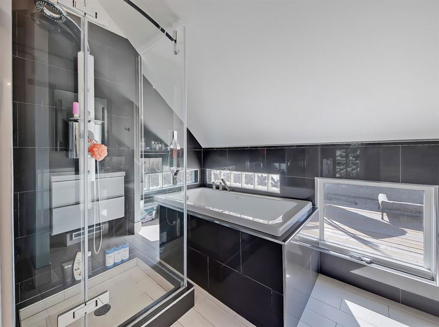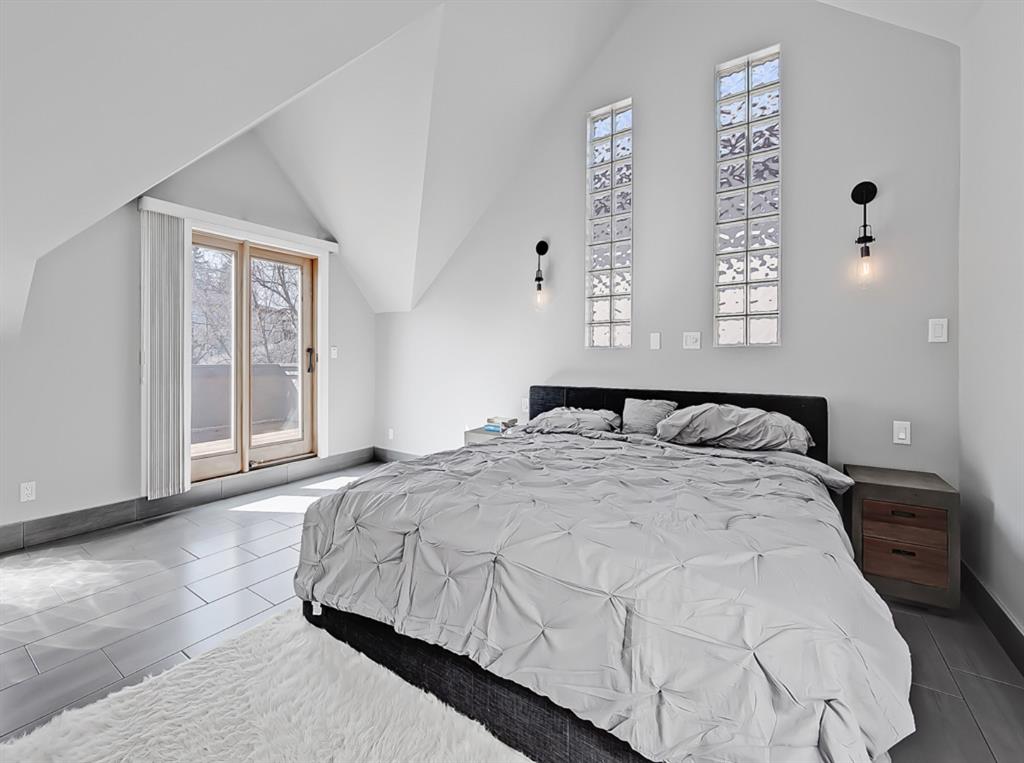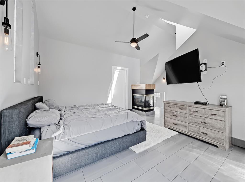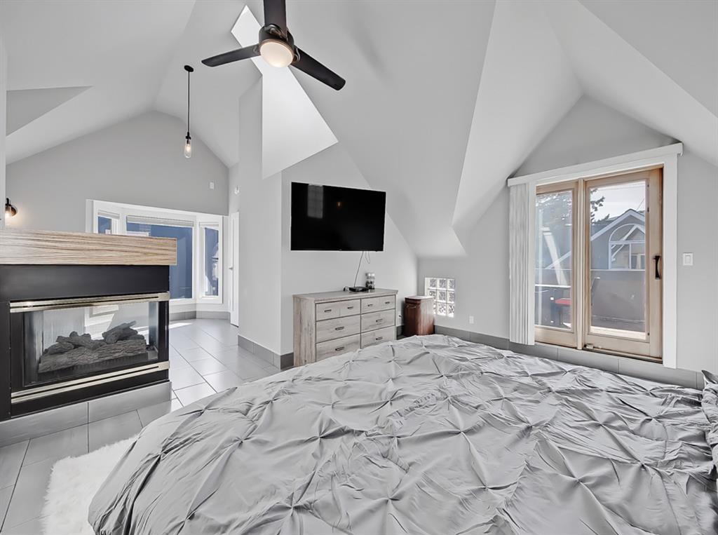 An ideal master bedroom. Soaring vaulted ceilings, walk-in closet, spa-like ensuite, soaker tub, triple sided fireplace along with your own private deck gives the getaway experience at home.