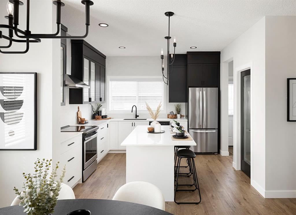 Midtown – 229 Midgrove Mews SW: Welcome to this 1,612 sq ft Delta model built by Shane Homes. This PRE-CONSTRUCTION 2-storey home features 3 bedrooms & 2.5 bathrooms and a double detached garage. The open main floor features an L-shaped kitchen with granite or quartz countertops and island, a large walk-in pantry, Whirlpool S/S appliances; dining area, living room and 2 pc powder room. The second floor has a primary bedroom with 3 piece ensuite and walk-in closet; 2 additional bedrooms, a bonus room, 4-piece main bathroom, and stacked laundry. The basement remains unspoiled. Showhome is located at 1 Midgrove Lane SW. Other models/lots are available. Excellent PRE-CONSTRUCTION opportunity for buyers as upgrades and interior selections can still be chosen. Located in Midtown of Airdrie, just steps away from the pond, pedestrian bridge, promenade with shops, and nearby schools. Airdrie is less than 20 mins to Airport, less than 10 mins to QE II, and 15 mins from North Calgary. Call for more info! Builder Size: 1,652 sq ft. RMS based on blueprints provided by the builder: 1,612 sq ft.
