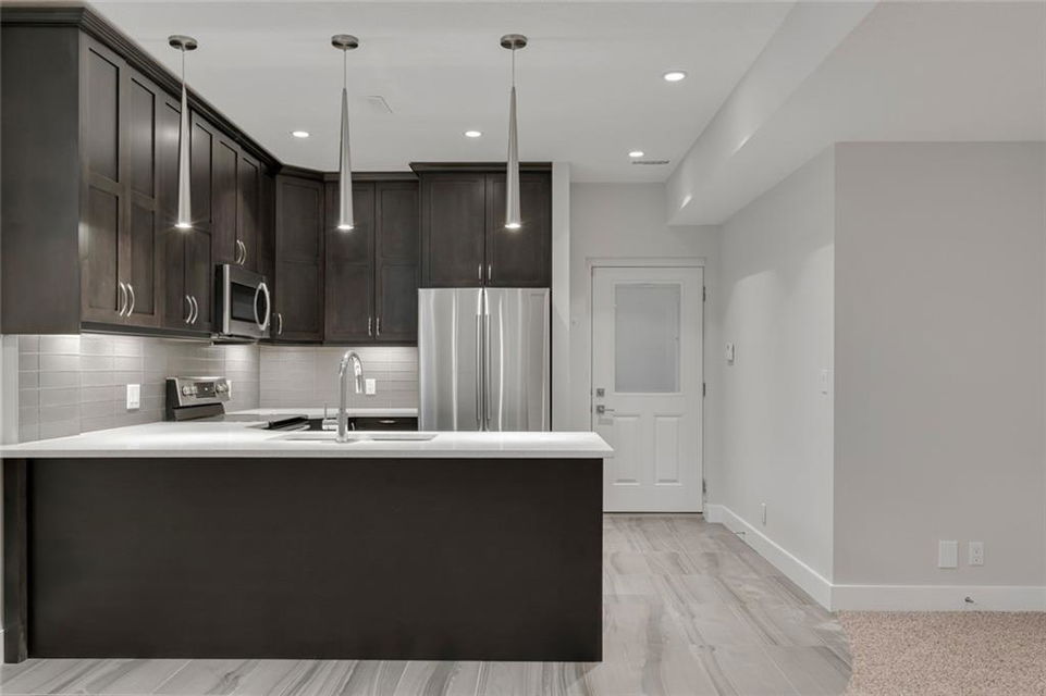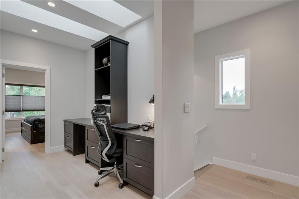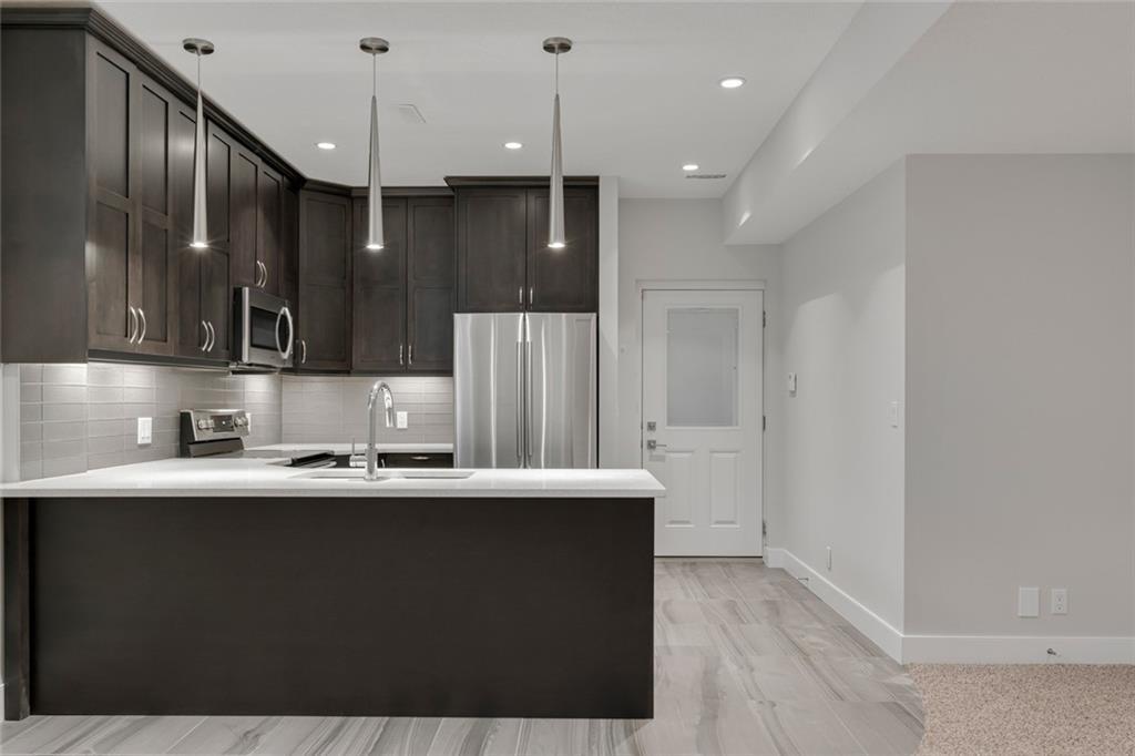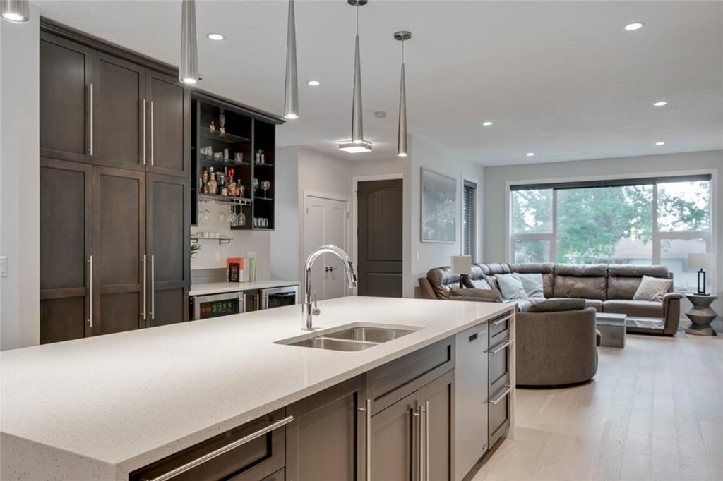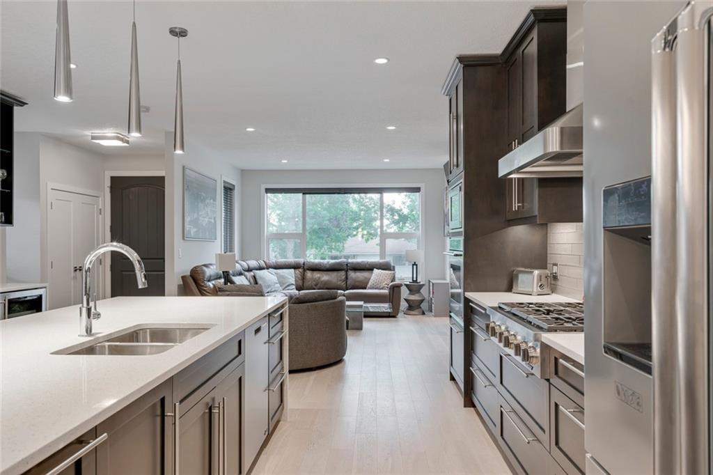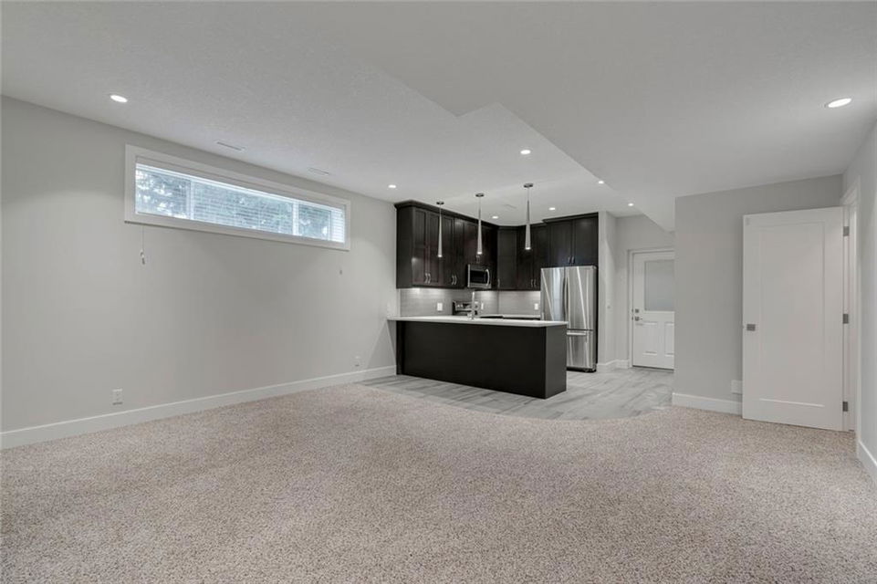 Highwood – 23 Hunter Street NW: Welcome to this 1,827 sq ft wide-lot infill with a LEGAL BASEMENT SUITE on a quiet street in this beautiful neighbourhood. The main floor features an open kitchen with 10’ quartz waterfall island with seating for 4, stainless steel appliances & beverage centre; living room with gas fireplace; dining room & 2 pc powder room. The upper floor has a master bedroom with walk-in closet & 4 pc ensuite, 2 additional bedrooms, built-in desk for 2, 4 pc main bathroom/laundry room. Basement legal suite has a separate entrance with a kitchen/stainless steel appliances, breakfast bar; large living room; bedroom; 4 pc bathroom & laundry. Custom built in 2014 with great attention to detail including parking for 3 vehicles, separate heating systems & laundry. Great potential for generating extra income, a live-in nanny/mother-in-law or just an extension of the home. Located close to all amenities including schools, outdoor rinks & pool, parks & playgrounds. Call for more info.