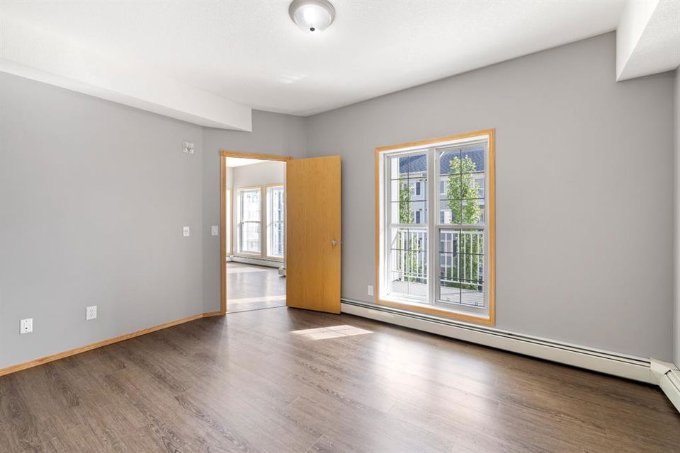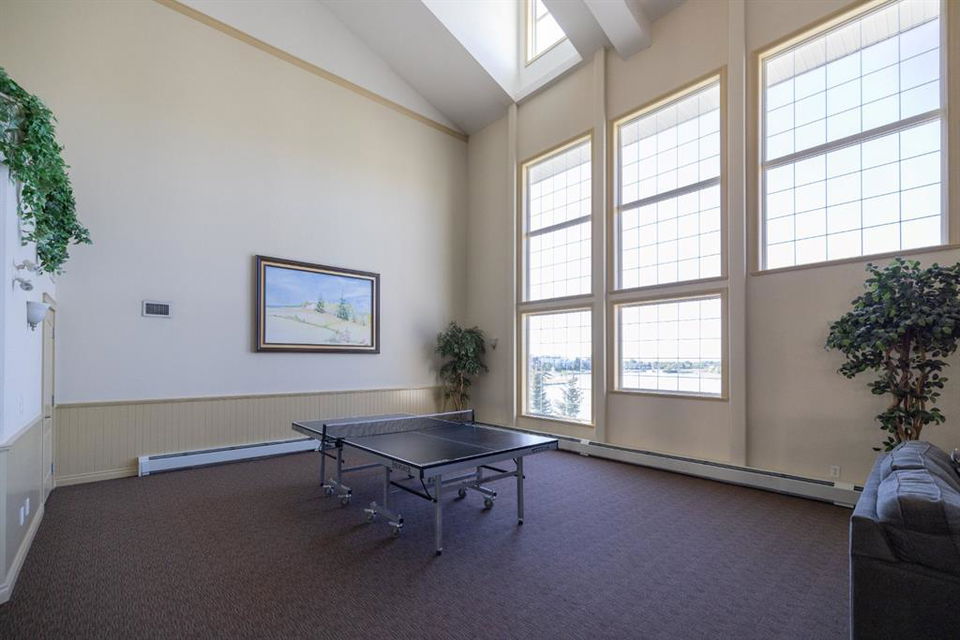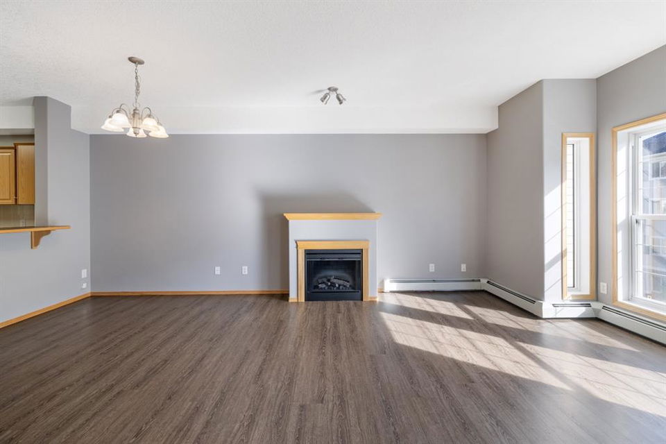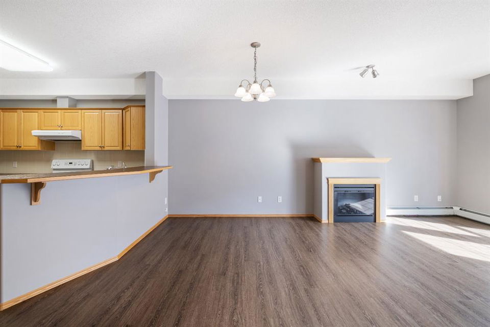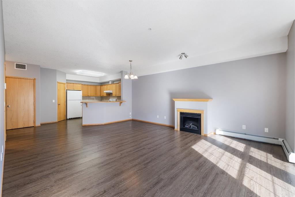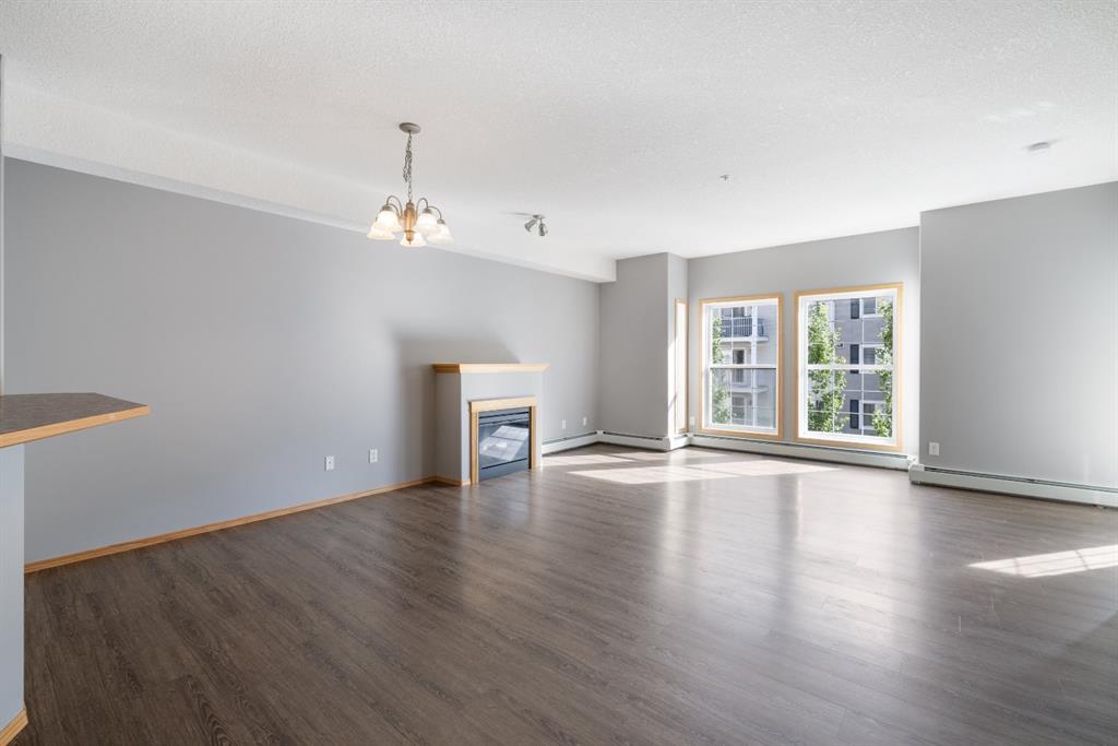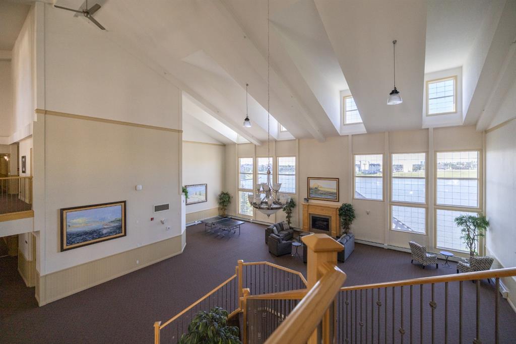 Welcome to Country Estates on the Cove!! This 40+ complex is located in the desirable Lakeside community of Country Hills Village. This is resort-style living at its best! Enjoy the many amenities including an indoor pool, steam room, theatre, library, party room, car washes, bowling alley, woodworking shop, sewing/craft room, coffee lounge, guest suites and numerous banquet facilities and the amazing Lake Room with beautiful views of the lake. This complex is a true community with monthly activities organized by the residents. Unit 2364 is a large 910 sq ft, 1 bedroom, 1 bathroom unit with 9′ ceilings, located in building 2000 on the 3rd floor. Inside the apartment, you will notice the bright East facing large open concept living, dining and kitchen. The large dining space is next to the kitchen which features a breakfast bar and lots of cupboard space for the gourmet chef! This unit features a large living room with a cozy electric fireplace for those cool winter evenings. Exit onto the covered balcony with a view of the treed green space and enjoy BBQing on the East facing deck as propane BBQs are permitted. The large bedroom features a dream walk-in closet, big enough to hold all your shoes. The in-suite Laundry room has loads of storage space and includes an upright freezer. This unit has luxury vinyl plank flooring throughout and has been well looked after. Access the pathway system just steps from the building or enjoy the view from the lakeside patio at building 1000, where you can enjoy access to the pathway and take long walks around the lake. Community amenities are ultra-convenient with Landmark Cinemas, Superstore, Sobeys, VIVO and much more. Walkability is fantastic, you will not be disappointed!!