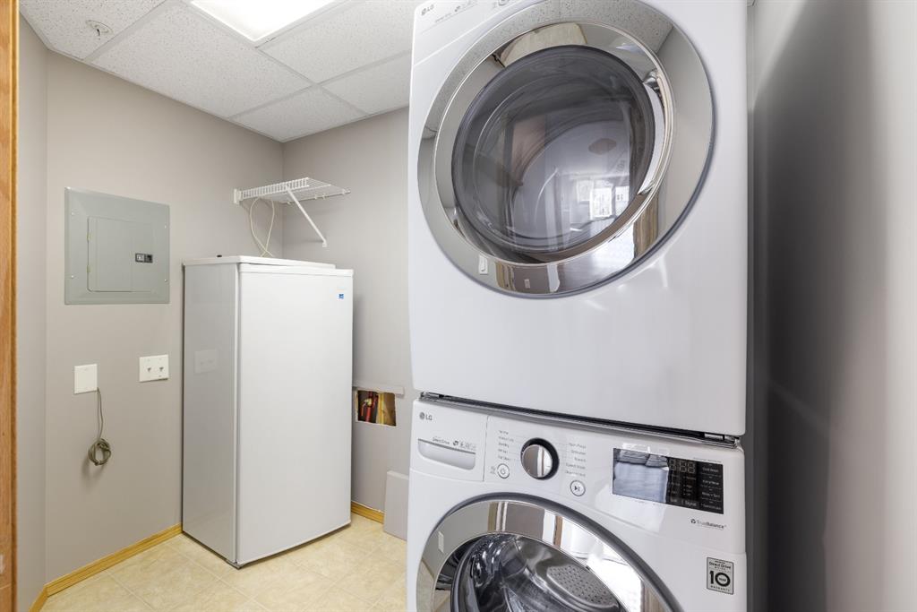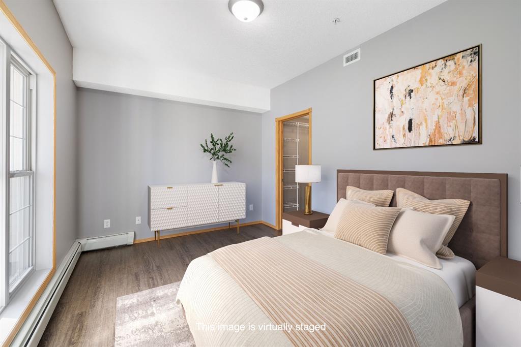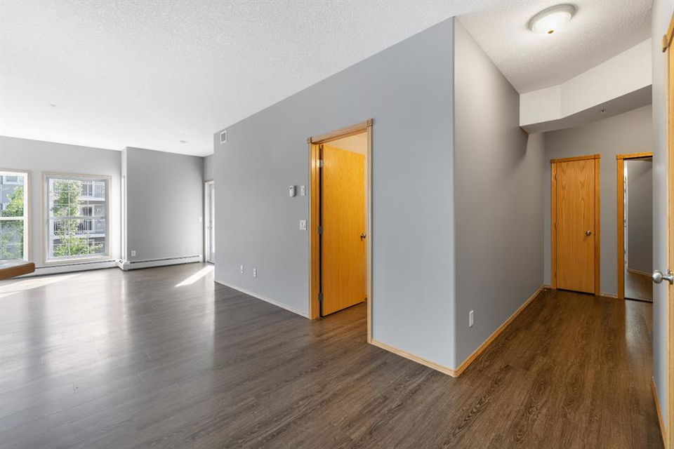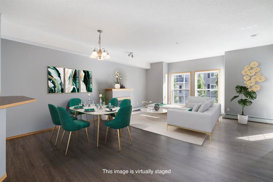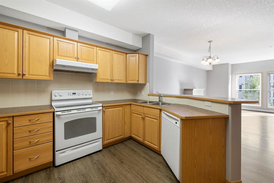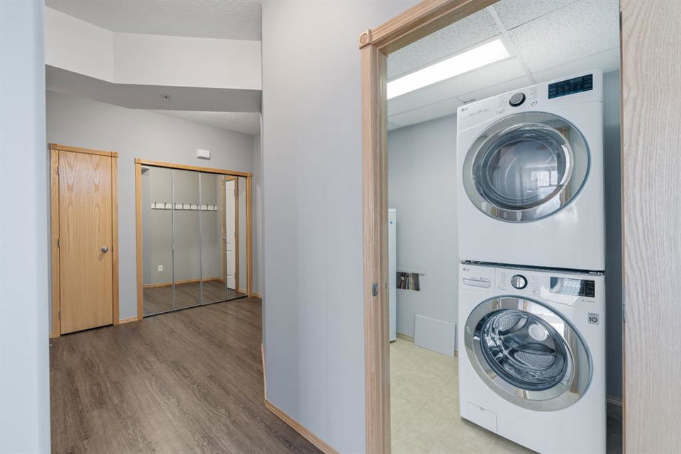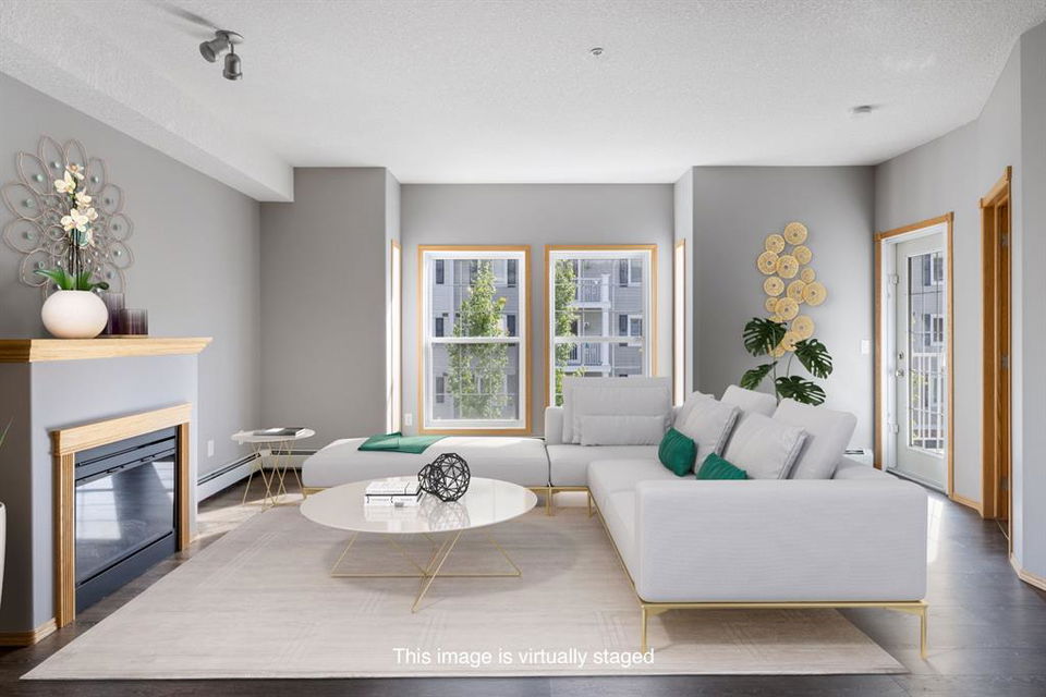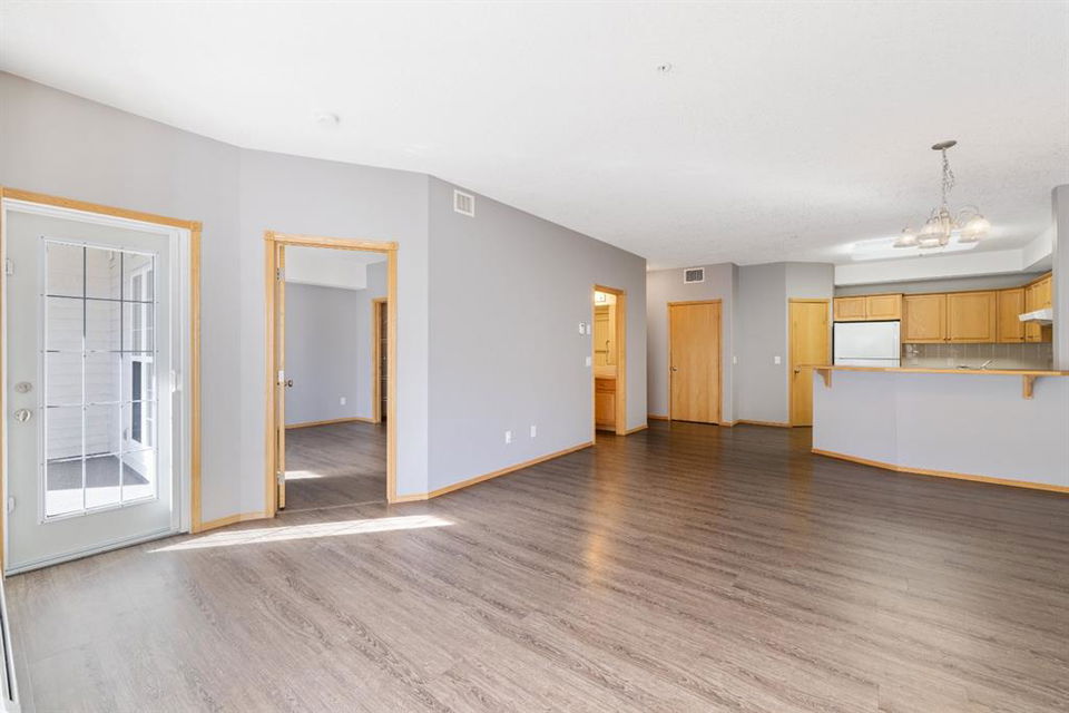 Welcome to Country Estates on the Cove!! This 40+ complex is located in the desirable Lakeside community of Country Hills Village. This is resort-style living at its best! Enjoy the many amenities including an indoor pool, steam room, theatre, library, party room, car washes, bowling alley, woodworking shop, sewing/craft room, coffee lounge, guest suites and numerous banquet facilities and the amazing Lake Room with beautiful views of the lake. This complex is a true community with monthly activities organized by the residents. Unit 2364 is a large 910 sq ft, 1 bedroom, 1 bathroom unit with 9′ ceilings, located in building 2000 on the 3rd floor. Inside the apartment, you will notice the bright East facing large open concept living, dining and kitchen. The large dining space is next to the kitchen which features a breakfast bar and lots of cupboard space for the gourmet chef! This unit features a large living room with a cozy electric fireplace for those cool winter evenings. Exit onto the covered balcony with a view of the treed green space and enjoy BBQing on the East facing deck as propane BBQs are permitted. The large bedroom features a dream walk-in closet, big enough to hold all your shoes. The in-suite Laundry room has loads of storage space and includes an upright freezer. This unit has luxury vinyl plank flooring throughout and has been well looked after. Access the pathway system just steps from the building or enjoy the view from the lakeside patio at building 1000, where you can enjoy access to the pathway and take long walks around the lake. Community amenities are ultra-convenient with Landmark Cinemas, Superstore, Sobeys, VIVO and much more. Walkability is fantastic, you will not be disappointed!!