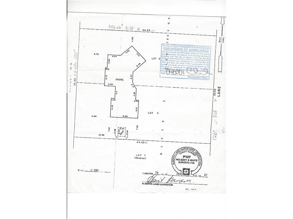 Builder / Investor Dream LOT ! 2 X 60 ‘ Frontage =120 ft. FRONTAGE X 146 Ft. Deep Double R-C2 Lots siding on to Victory PARK; backing to the Escarpment overlooking ELKS GOLF COURSE,GREEN DEERFOOT VALLEY ,and NOSE HILL CREEK. Subdivide and build one Dream Home plus 2 Infills OR apply to subdivide in 3 X 40 Ft. Front LOTS. 1957 Custom Built 1655 sq. ft. Bungalow straddles both 60 ft lots. Home in reasonable condition. Kitchen updated with Oak cabinets in 1987. Hardwood flooring installed in LR, DR, Bdrms in early 2000’s. Original bathrooms, original basement. Original Boiler heating system, Electric, and original windows. Roof shingles replaced approx. 5 years. ago. List Price is Primarily LAND VALUE.