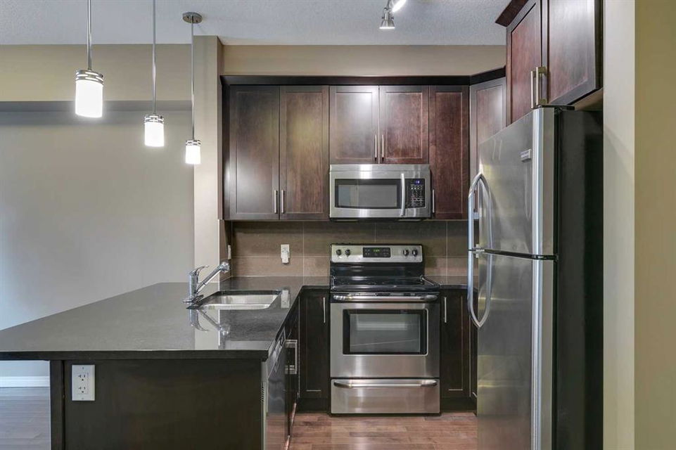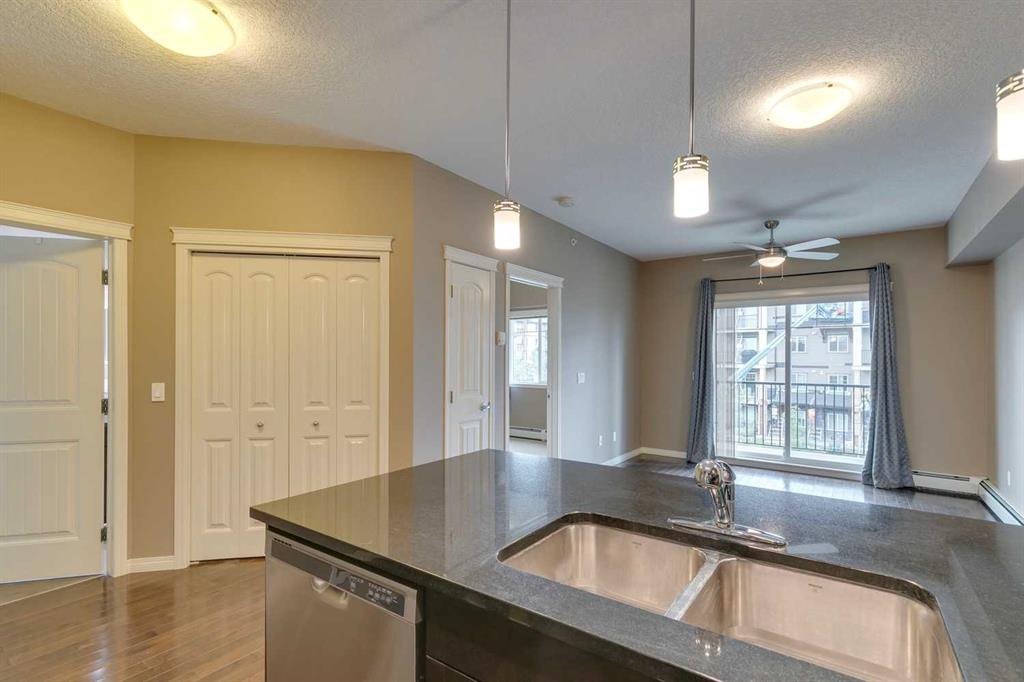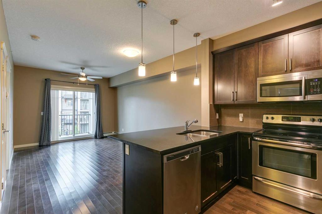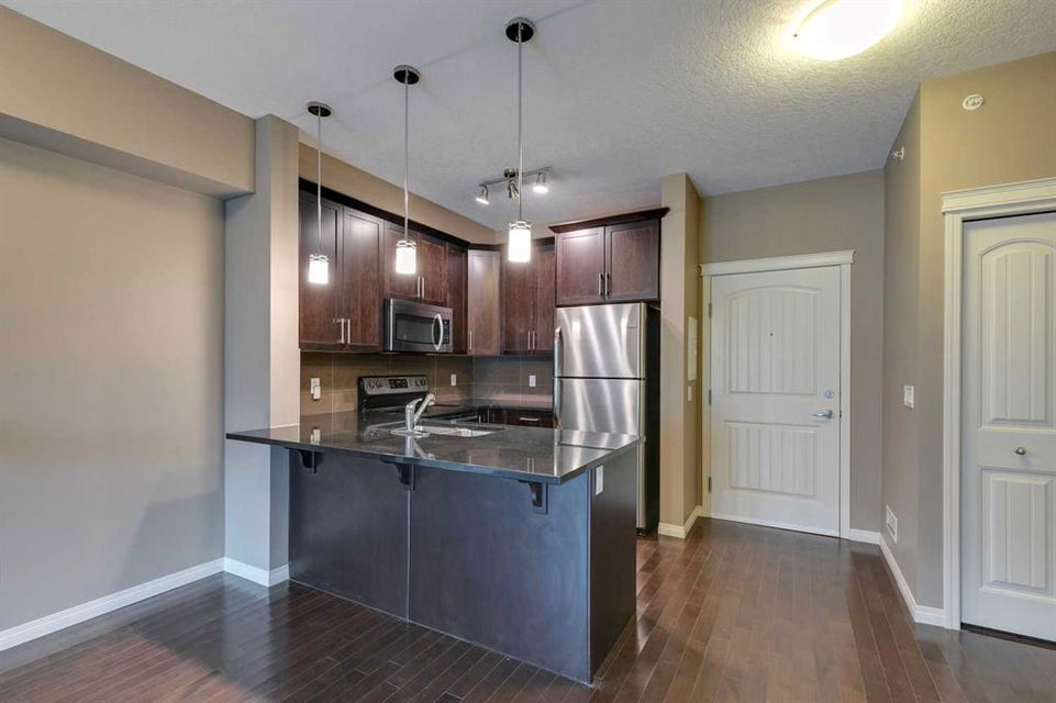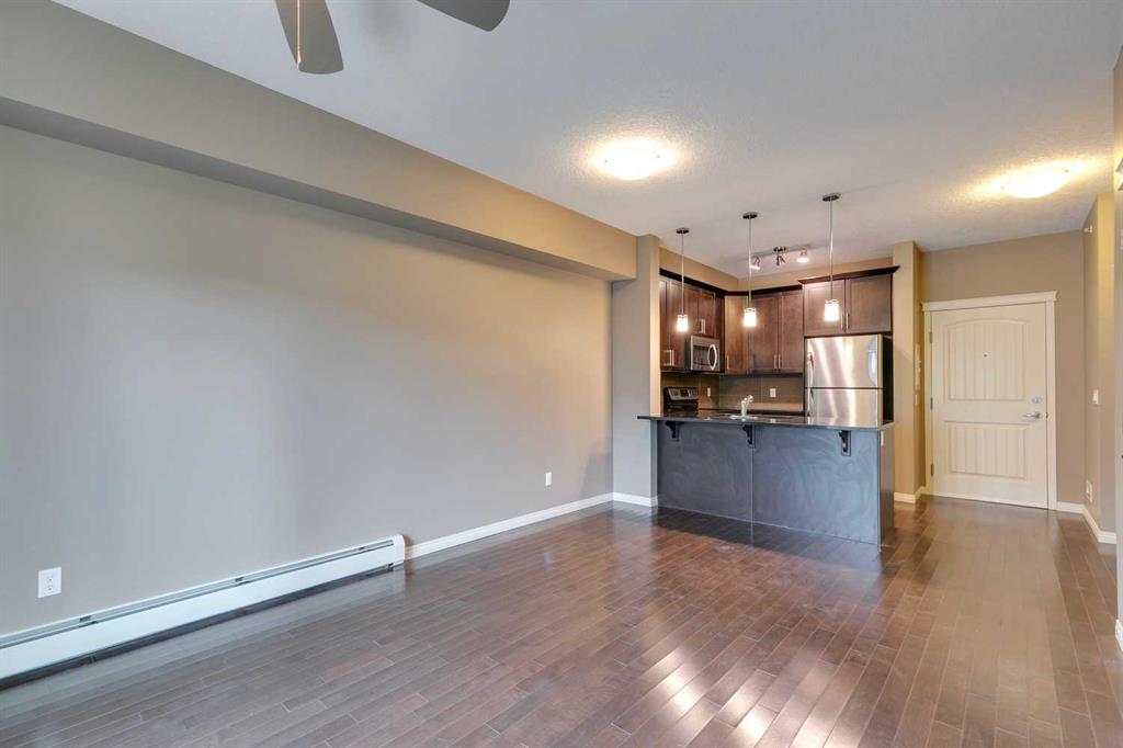 Panorama Hills – Panorama West – #2405, 175 Panatella Hill NW: Welcome to this well-maintained TOP FLOOR unit in Panorama West of Panorama Hills. This 531 sq ft, 1 bedroom, and 1 bathroom unit features hardwood floors, a kitchen with stainless steel appliances, a breakfast bar, and a dining area; a living room with a ceiling fan and sliding door access to the west-facing balcony with views of a park-like setting. The bedroom has a walk-through closet and access to the 4 pc bathroom. This unit has stacked in-suite laundry and a titled parking stall. Located in the desirable community of Panorama Hills, this location provides quick access to Stoney Trail, and is steps away from shopping, restaurants, walking paths, schools, parks, playgrounds + much more! This turn-key home is ready for a quick possession. Call for more info!