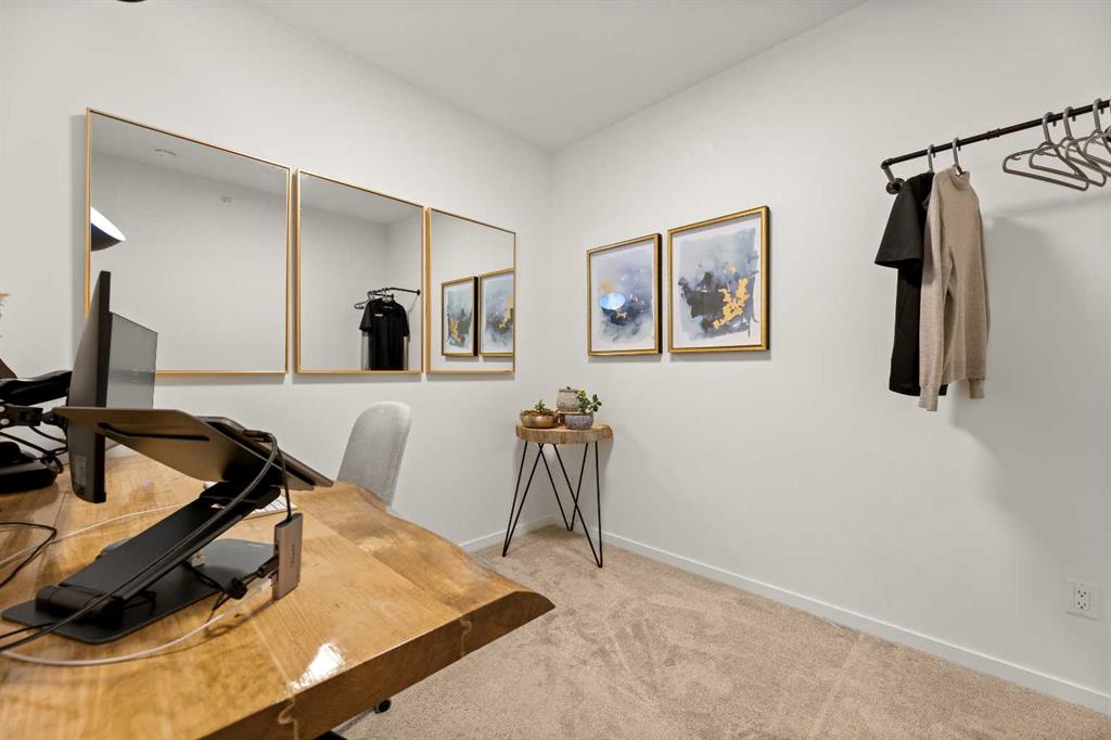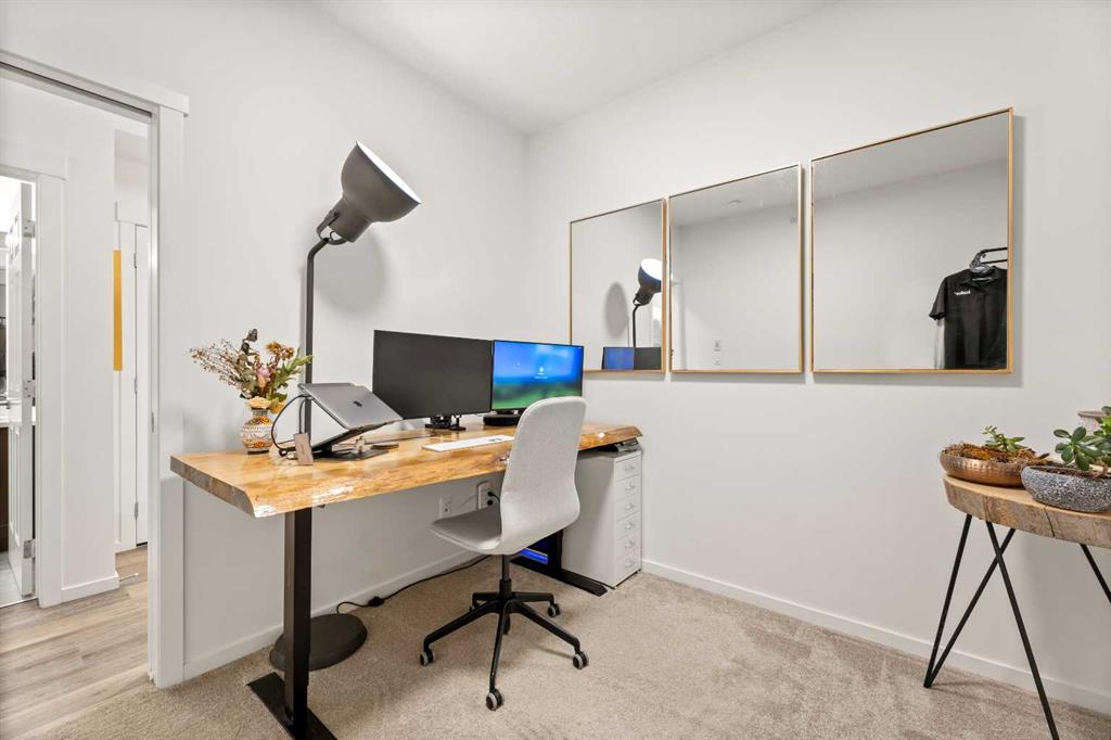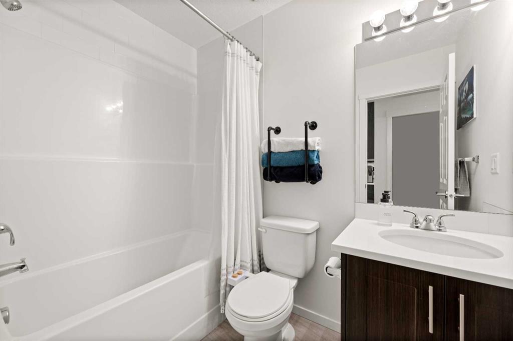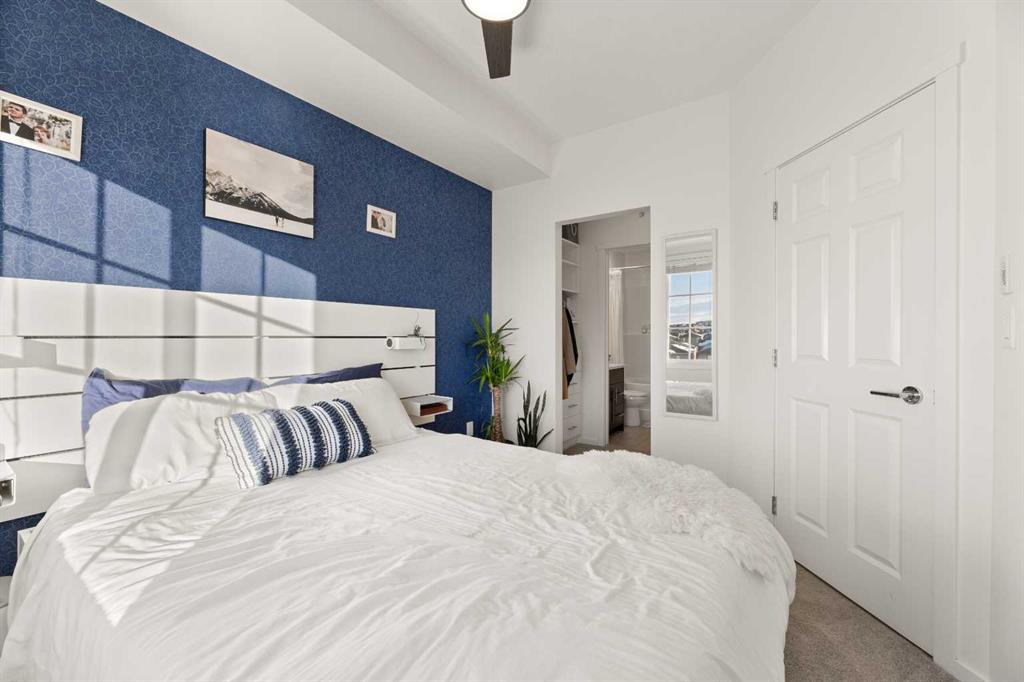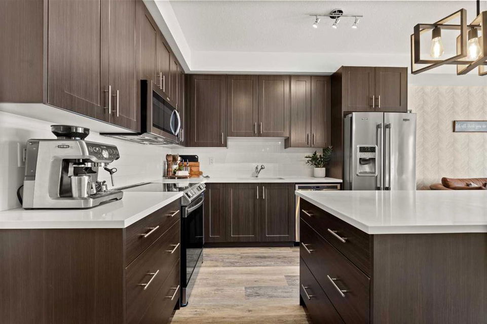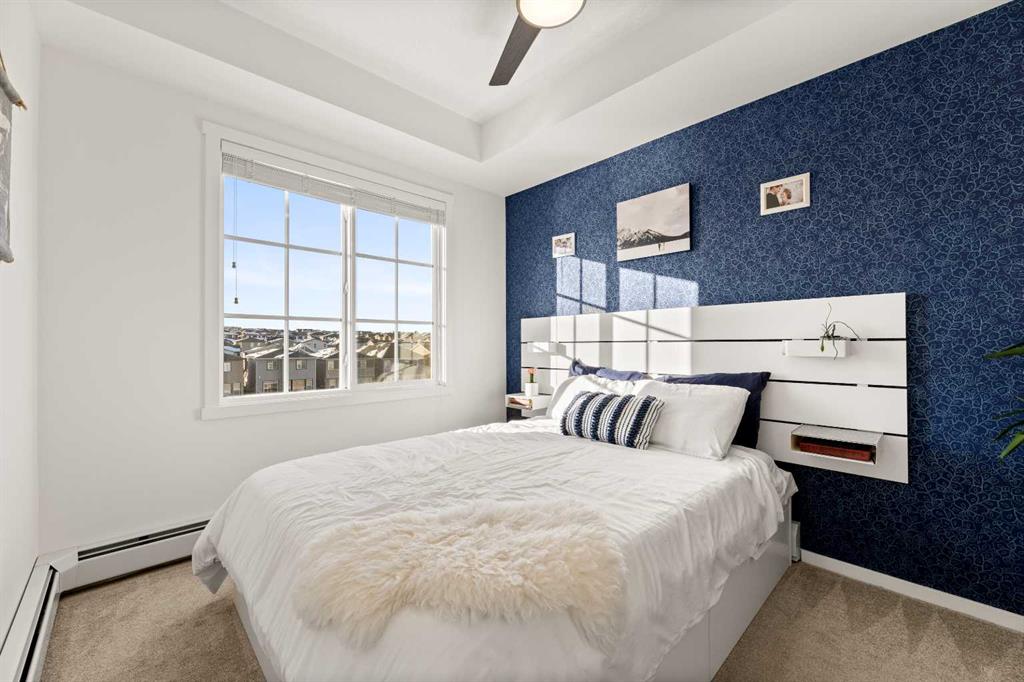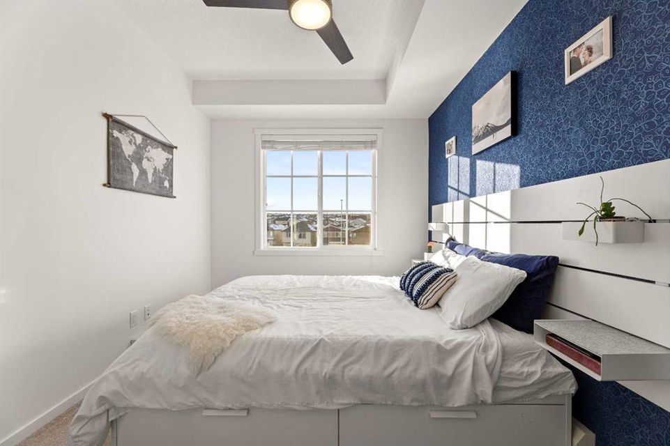 Nestled within picturesque Sage Meadows, this sleek top FLOOR TWO-bedroom, TWO full bathroom condominium with concrete floor sound barriers has been beautifully maintained and is tailored perfectly for young professionals or those seeking a downsized lifestyle. As you enter, you are greeted with stunning modern finishes, vinyl plank flooring and 9′ ceilings. The kitchen is a chefs delight with subway tiled backsplash, upgraded faucet, full height kitchen cabinets, quartz countertops and upgraded stainless steel appliances. The kitchen seamlessly unfolds into the spacious dining and living room. Just off the living room, you can step outside on your balcony with a gas line for BBQ and enjoy those warm summer evenings. Both bedrooms are generously sized, with the primary bedroom offering a custom designed built in walk-thru closet and 4 piece ensuite. An additional four piece bathroom, in unit laundry, a storage locker, and a titled energized parking stall near the building entrance make this home complete. Conveniently located mere minutes from Creekside Shopping Center and Sage Hill Plaza, this home ensures easy access to urban amenities. Embrace a lifestyle where the beauty of nature meets the convenience of city living, all within easy reach of major routes like Deerfoot and Stoney Trail.