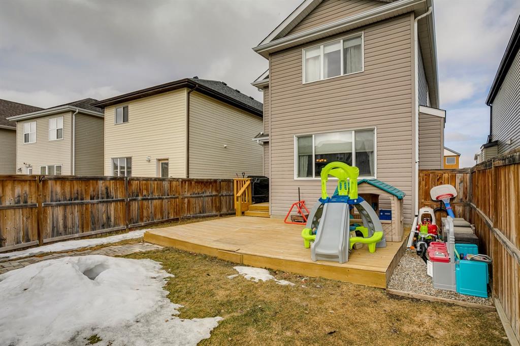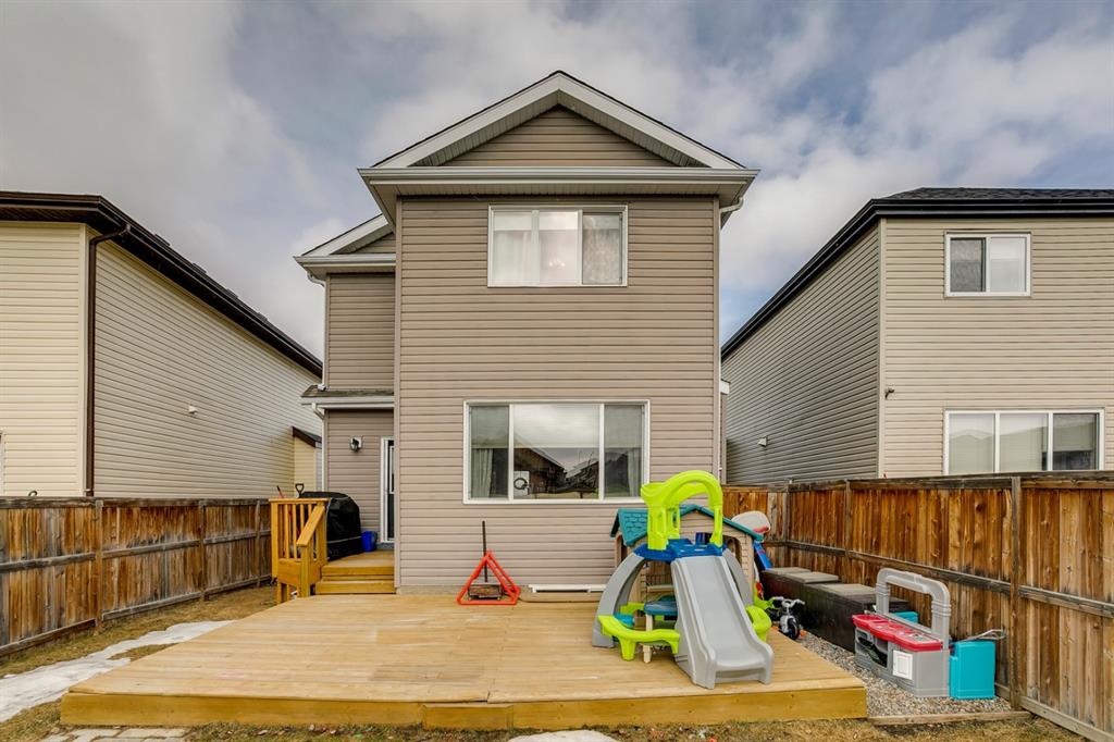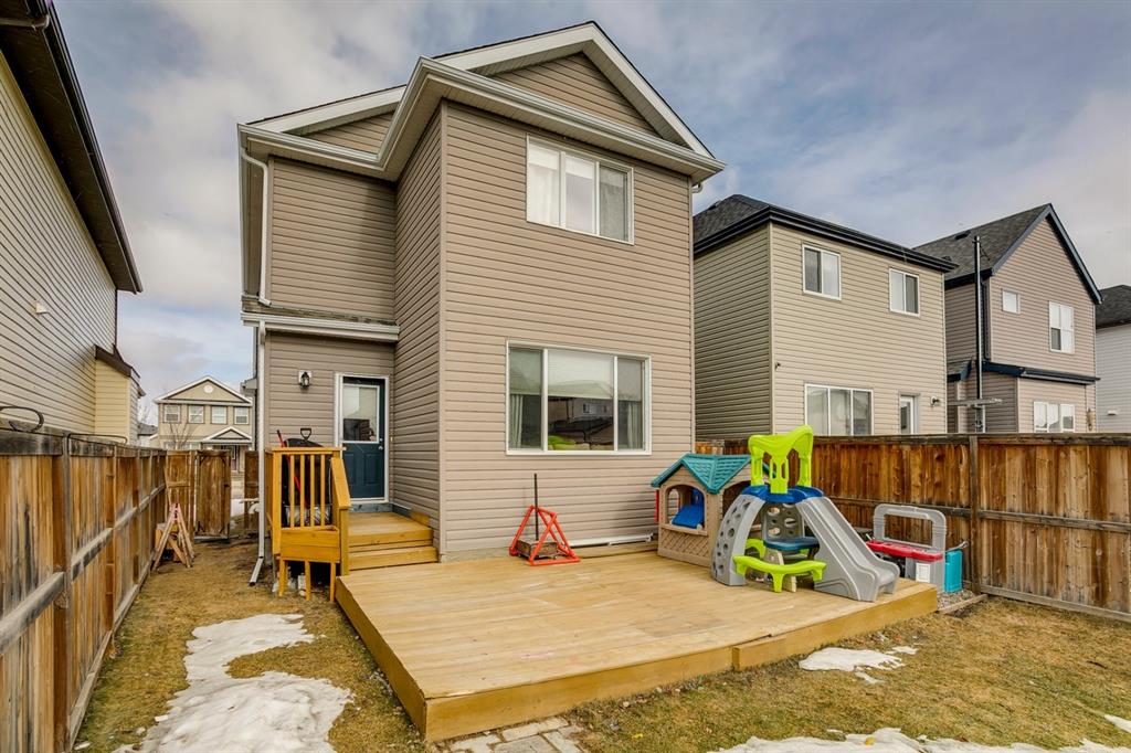 Copperfield – 241 Copperstone Gardens SE: Welcome to this updated 1387sqft – 2 storey, 3 bedrooms + 2.5 bathroom family home located on a quiet street in Copperfield. The main floor features newer laminate flooring throughout, kitchen with new quartz countertops, island and corner pantry; breakfast nook; living room and 2 pc bathroom. The upper level has a spacious primary bedroom with 4 pc ensuite, 2 additional good sized bedrooms with 4 pc main bathroom. Lower level has been framed and ready for completion. The south-facing backyard is fully landscaped with a large deck great for a summer BBQ and has ample space to build a double car garage. Recent updates include: new roof in December 2020, renovated 2 pc bathroom, fresh paint + more. This immaculate home is steps away from a park, close to schools, playgrounds and a short drive to Stoney Trail or Deerfoot Trail. Call for more info.
