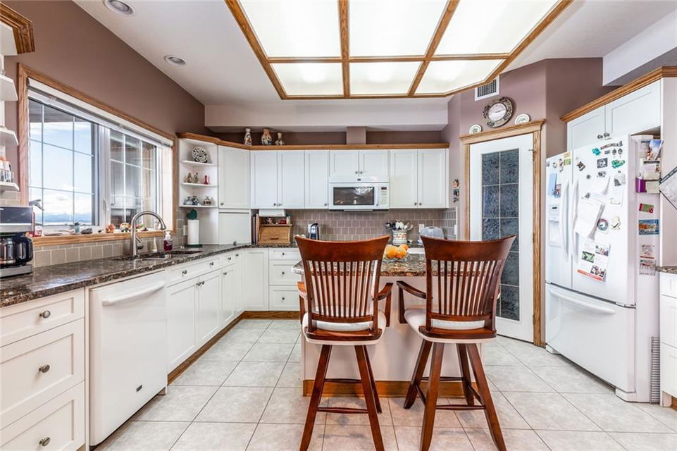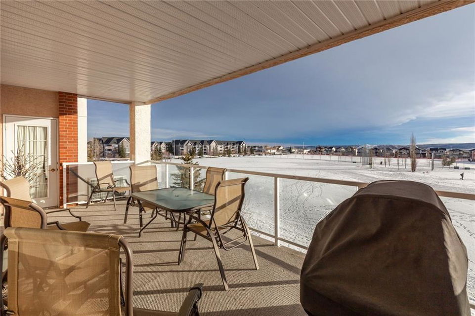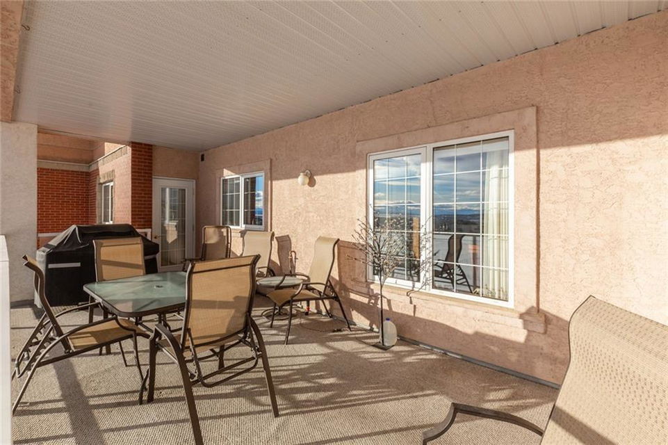 Welcome to the sought after Sierras of Tuscany. This well planned 40+ adult community offers a very desirable, maintenance free lifestyle. This beautifully appointed 1,440 sq ft condo with 9′ ceilings boasts panoramic mountain views & a sunny south exposure. The open floor plan features a spacious foyer with tile flooring & double closets, a huge combination living room/dining room with floor to ceiling custom built-ins that include a gas fireplace, open shelving & lots of storage. The spacious kitchen features timeless white custom cabinetry, granite countertops, a centre island, walk-in pantry, a built-in desk & sink with a window overlooking the incredible view. The second bedroom is very large with double French doors that open to the living room. There are 2 built-in work stations, lots of custom storage & a Murphy bed. The king-size master bedroom has private access to the huge south deck as well as a private 5 piece en-suite & a large walk-in closet. There is also a 4 piece main bath.