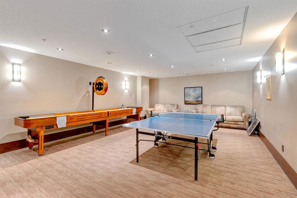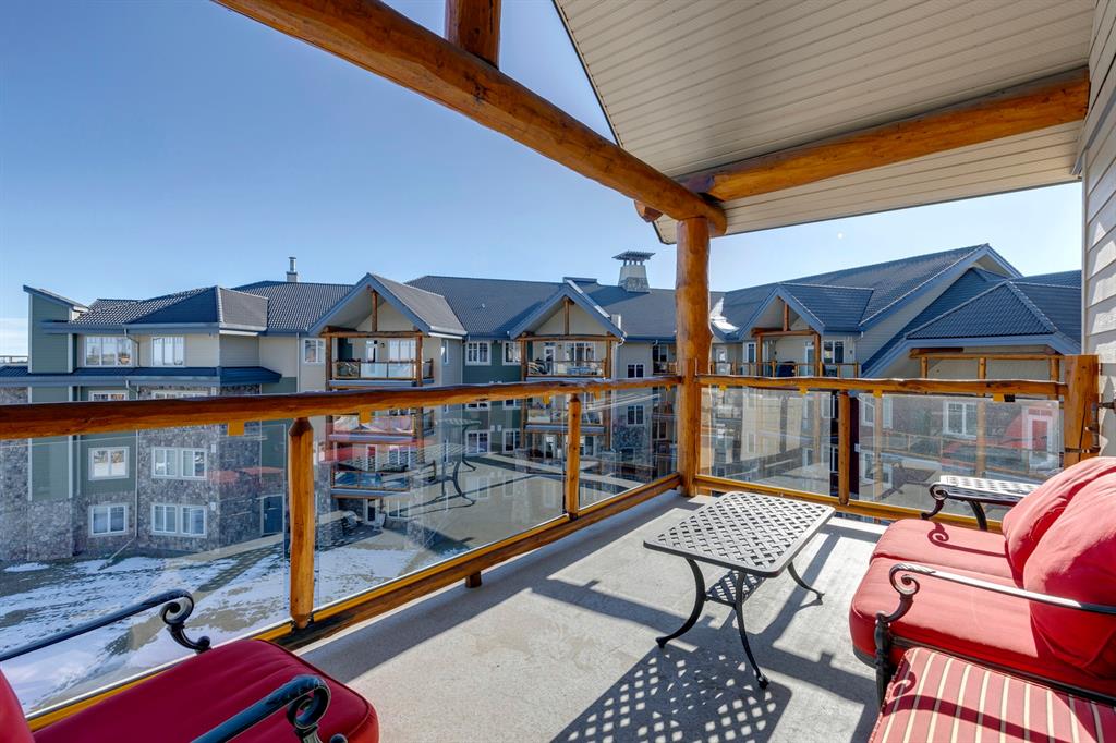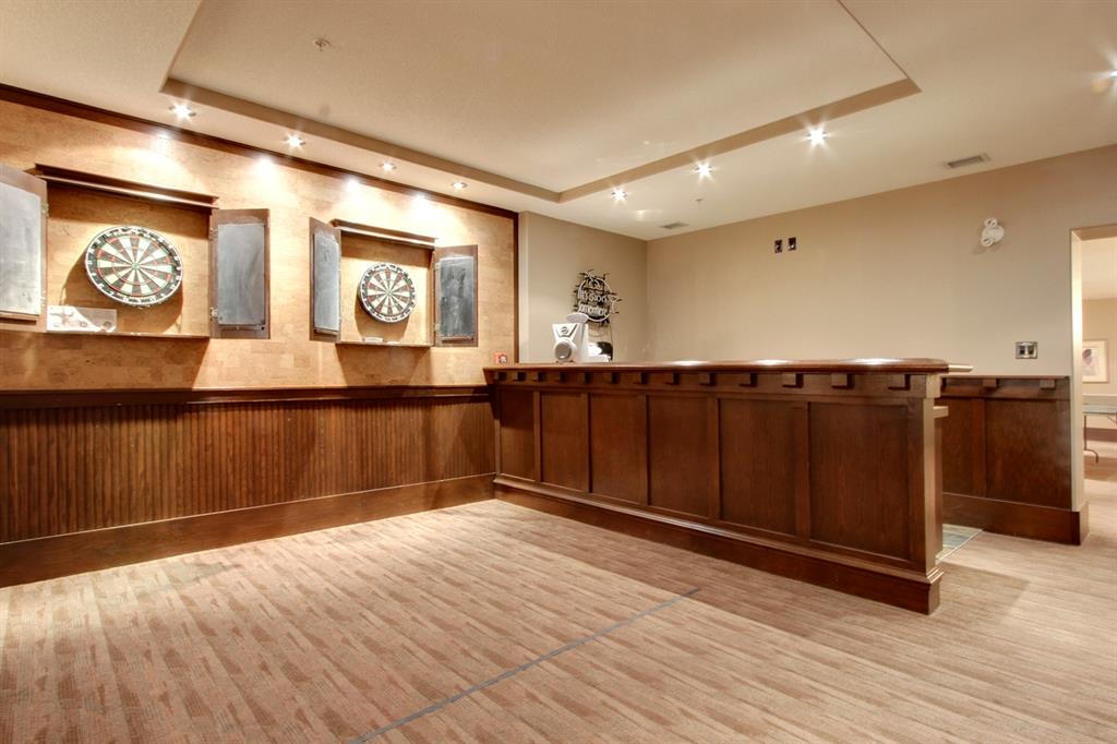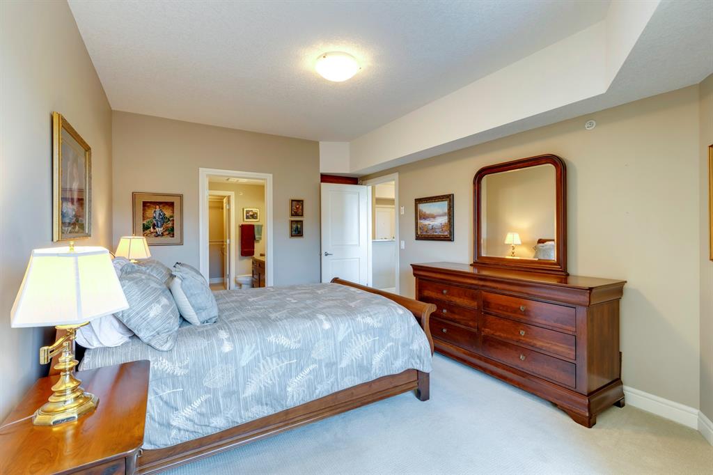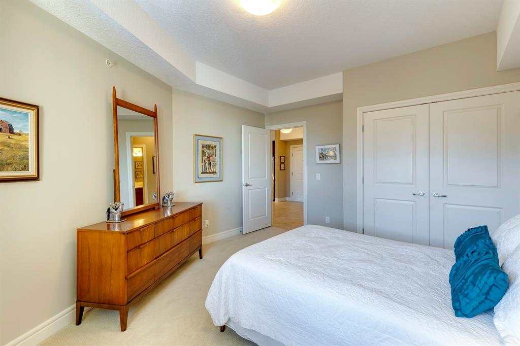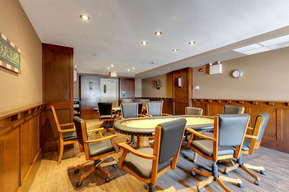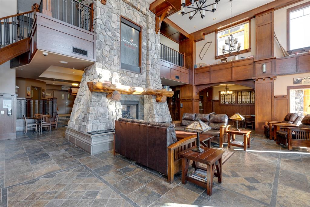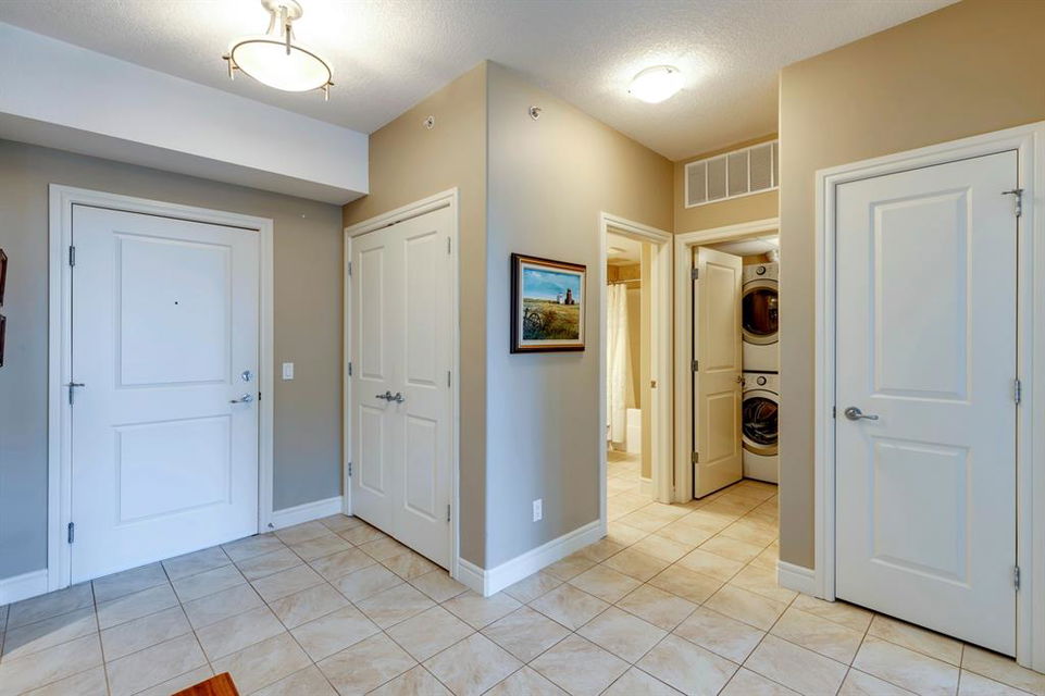 Sanderson Ridge – Evergreen – #2428, 2330 Fish Creek Boulevard SW: Fish Creek Park could be your backyard in this top floor 1,187 sq ft 2 bedroom + 2 bathroom unit in sought-after Sanderson Ridge. This unit includes central A/C, one titled underground parking stall, and an assigned storage locker. The open floor plan features a kitchen has stainless steel appliances, granite countertops, a corner pantry, and a breakfast bar with seating for 3; the dining area opens to the living room with a gas fireplace and access to the large covered balcony with BBQ gas hook up; the large primary bedroom has built-in California Closet shelves and a walk-in closet and a spacious 3 pc ensuite with glass shower; the additional bedroom has custom closet with California Closet organizers; 4 pc main bathroom, laundry room with stacked washer/dryer and space for freezer and additional storage. Enjoy the views of beautiful Fish Creek Park from your private balcony. Sanderson Ridge is a 40+ building with endless amenities including a guest suite, indoor swimming pool, sauna, hot tub, movie theatre, bar, ping pong table, shuffleboard, darts, a 5-pin bowling alley, wine-making room, craft and sewing area, woodworking shop, barber shop, fitness center, library, billiards, poker room, hair salon, ample visitor parking & much more! Condo fees include heat, electricity, and water. Located in Evergreen conveniently located close to walking paths, minutes away from Stoney Trail, Macleod Trail, and Shawnessy Shopping Centre. The building and the unit are well-maintained. Easy to show with quick possession available. Call for more info!