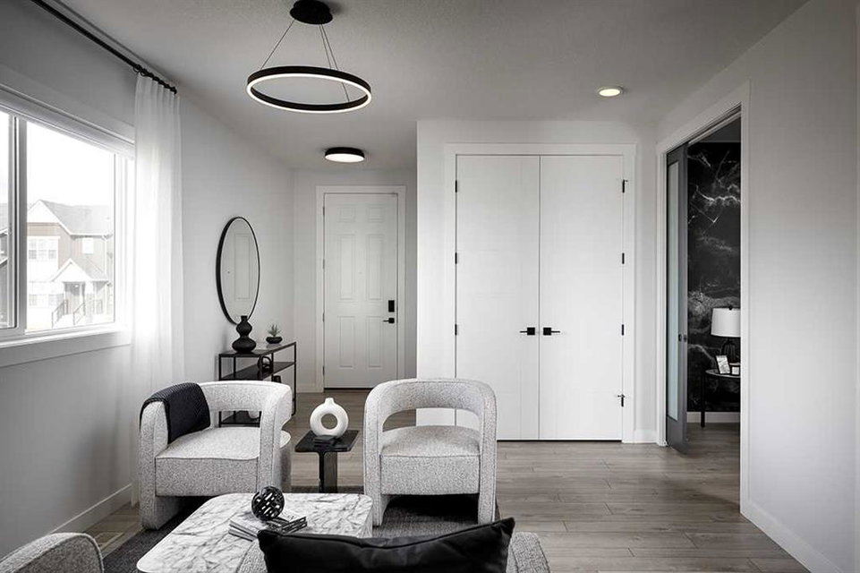 Shane Homes presents a pre-construction opportunity to customize the Saffron II in the NE community of Cornerstone. This popular design features a double attached garage and a convenient side entry on the main level. The main floor is thoughtfully laid out with a super kitchen and spice kitchen, ideal for cooking and entertaining. A main floor bedroom and full bathroom offer flexibility for guests, extended family, or a home office, while the sitting room and dining area create comfortable everyday living spaces. Buyers can customize both the floorplan and interior finishings with Shane Homes to suit their lifestyle. Upstairs, the spacious primary bedroom includes a full owner’s ensuite. An additional bedroom features its own private ensuite, while two other bedrooms share a full main bathroom, providing a well-balanced layout for families. Photos are of a completed showhome and are for illustrative purposes only. Photos representative.