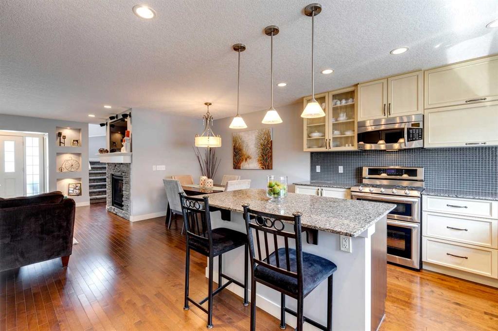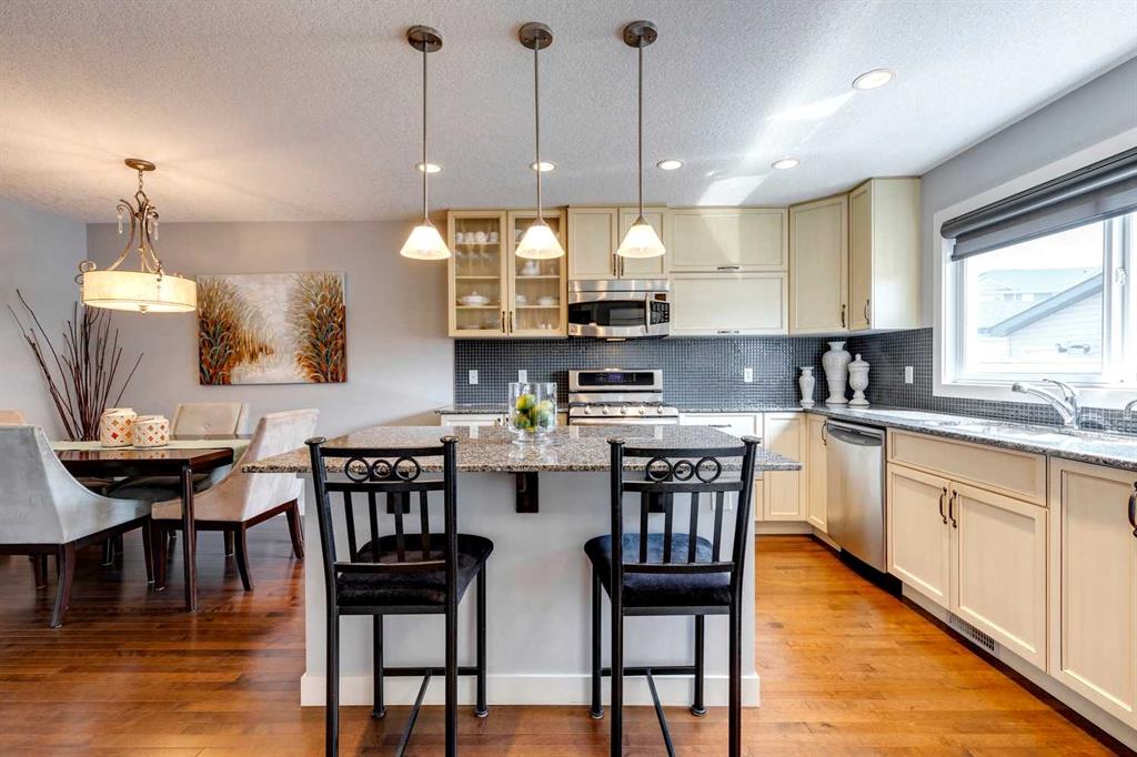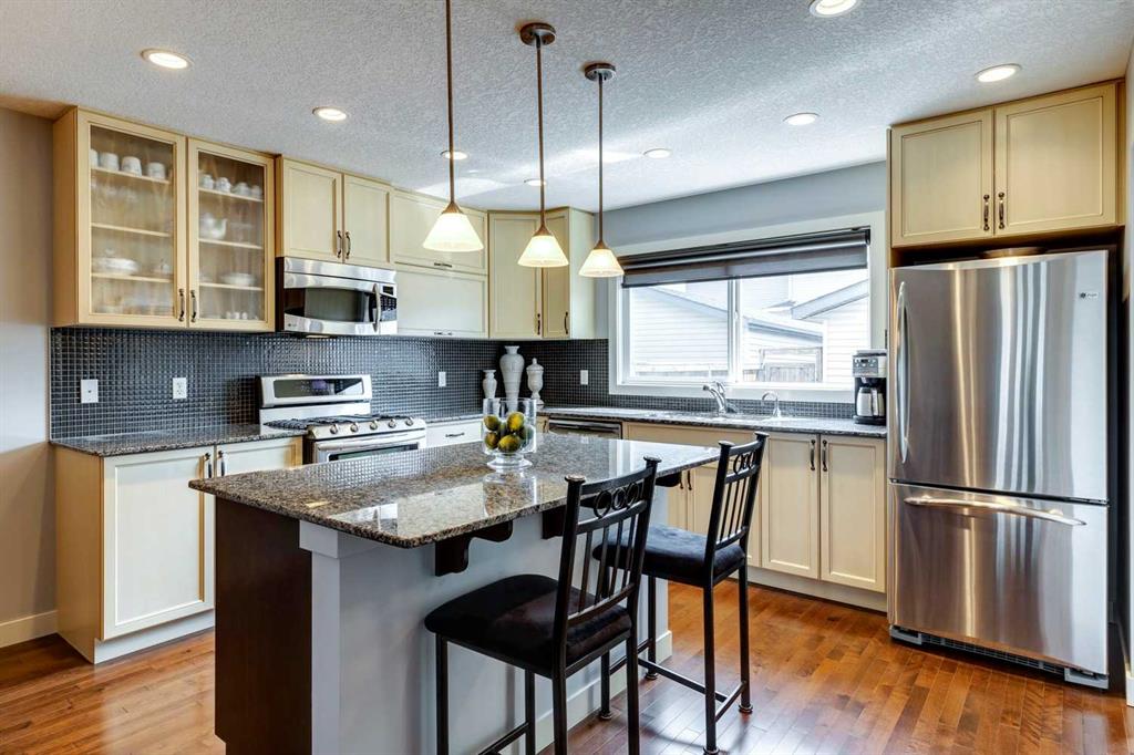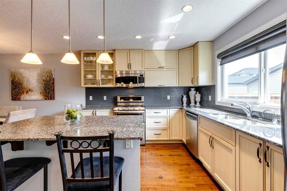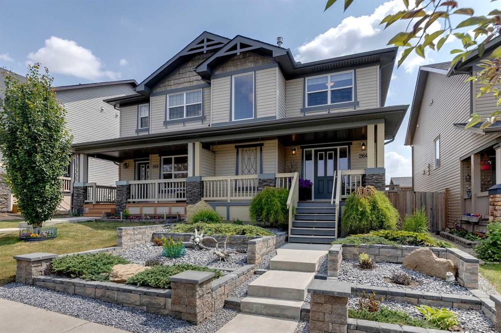 Panorama Hills – 264 Panatella Drive NW: Fantastic opportunity to own a paired home built by Shane Homes. This immaculately maintained attached 2-storey home features an open main floor with hardwood floors, a kitchen with a central island and seating for 3, granite countertops, stainless steel appliances including a 5 burner gas range, instant hot water tap, toe-kick vacuum, a large walk-in pantry, and open to the dining area; living room with gas fireplace with mantle and stone surround and lighted art niches; a 2 pc powder room and back entrance with closet complete the main floor. The upper level includes brand new carpet throughout, a primary bedroom with views of the backyard, a walk-in closet with pocket door, 3 pc ensuite with tiled shower, rainfall shower head, and bench; 2 additional good-sized bedrooms each with deep closets; a 4 pc main bathroom with soaker tub and shower head. The basement remains unspoiled with a laundry area and sink. Enjoy relaxing on the covered front veranda overlooking the park and playground across the street. The yard has low-maintenance landscaping throughout, including a composite rear deck and patio. The oversized double-car garage has plenty of room for cars and toys + features a separate electrical panel with a 30 amp 240-volt receptacle plug. This original owner’s home features many builder upgrades throughout. Located in desirable Panorama Hills close to all amenities, schools with quick access to all major roadways. Call for more info!
