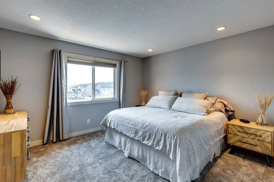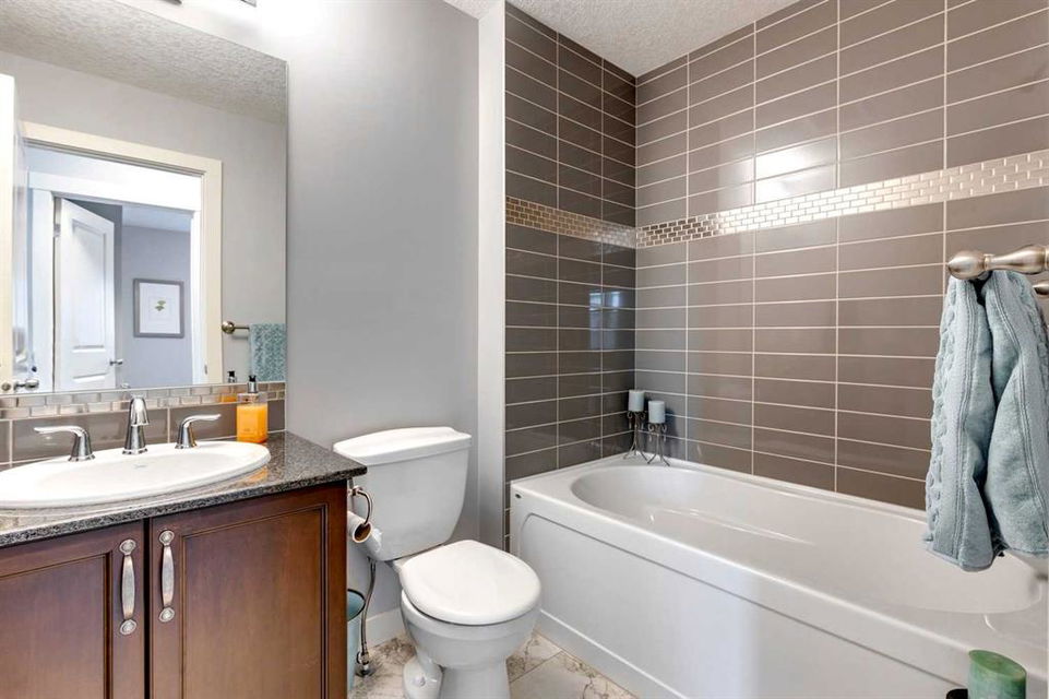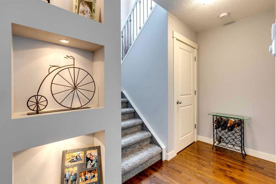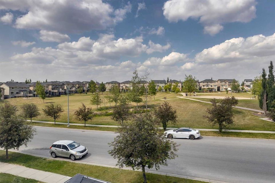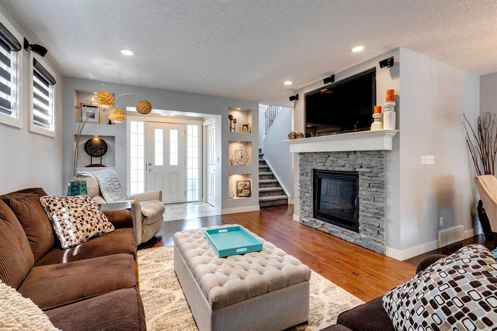 Panorama Hills – 264 Panatella Drive NW: Fantastic opportunity to own a paired home built by Shane Homes. This immaculately maintained attached 2-storey home features an open main floor with hardwood floors, a kitchen with a central island and seating for 3, granite countertops, stainless steel appliances including a 5 burner gas range, instant hot water tap, toe-kick vacuum, a large walk-in pantry, and open to the dining area; living room with gas fireplace with mantle and stone surround and lighted art niches; a 2 pc powder room and back entrance with closet complete the main floor. The upper level includes brand new carpet throughout, a primary bedroom with views of the backyard, a walk-in closet with pocket door, 3 pc ensuite with tiled shower, rainfall shower head, and bench; 2 additional good-sized bedrooms each with deep closets; a 4 pc main bathroom with soaker tub and shower head. The basement remains unspoiled with a laundry area and sink. Enjoy relaxing on the covered front veranda overlooking the park and playground across the street. The yard has low-maintenance landscaping throughout, including a composite rear deck and patio. The oversized double-car garage has plenty of room for cars and toys + features a separate electrical panel with a 30 amp 240-volt receptacle plug. This original owner’s home features many builder upgrades throughout. Located in desirable Panorama Hills close to all amenities, schools with quick access to all major roadways. Call for more info!