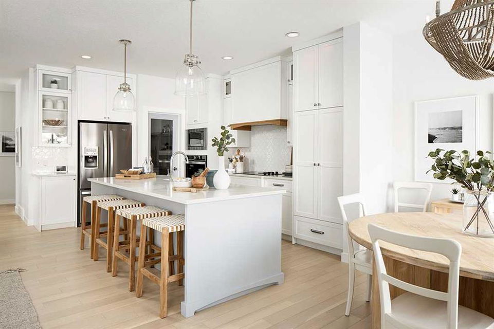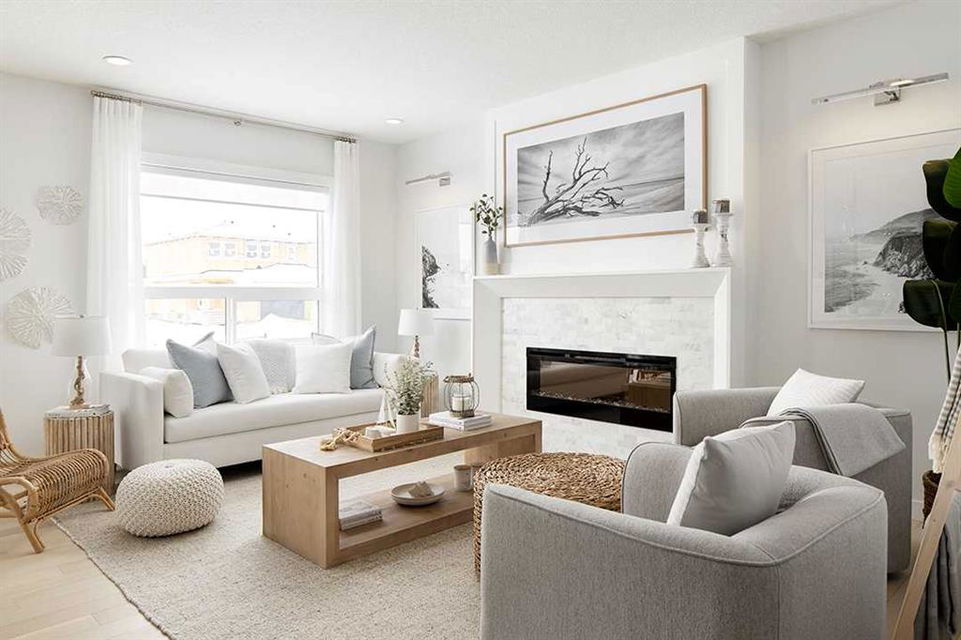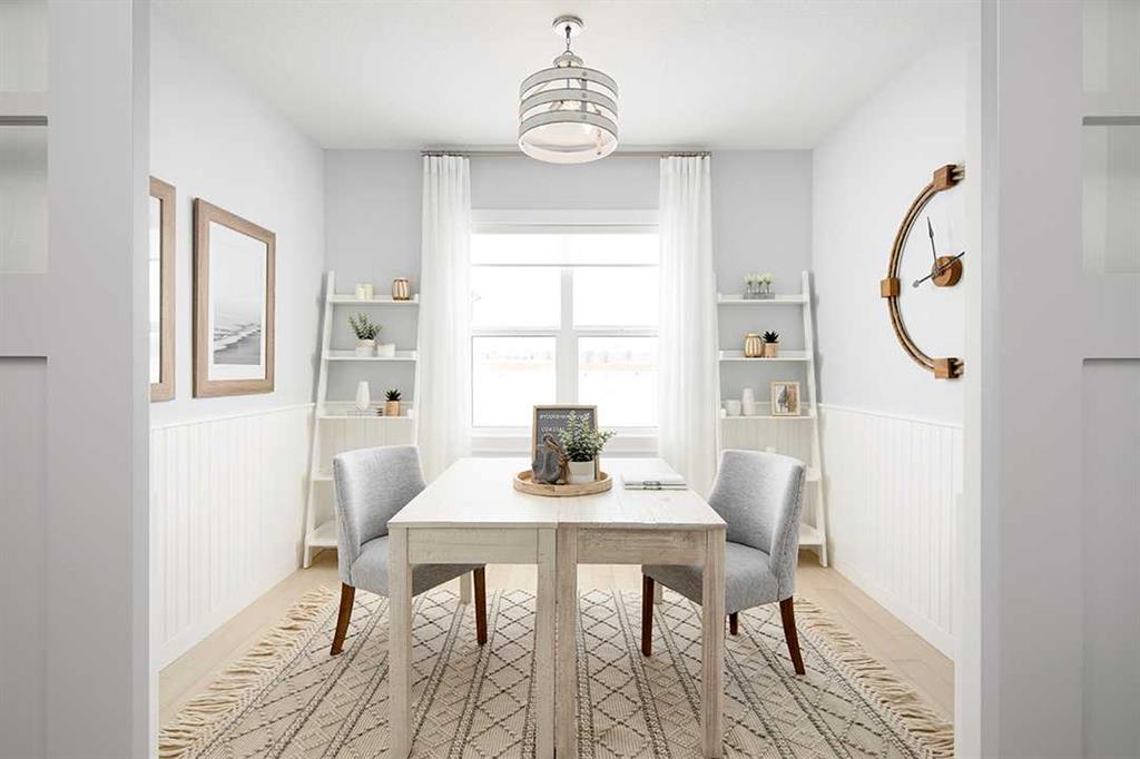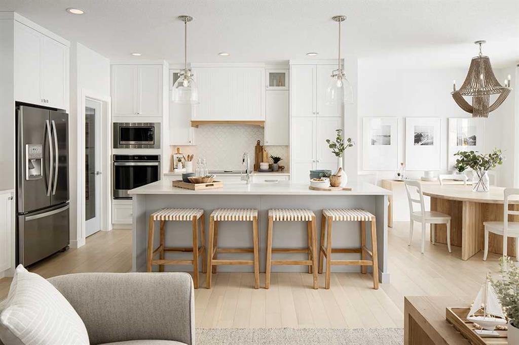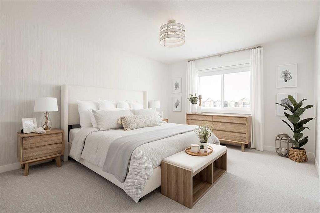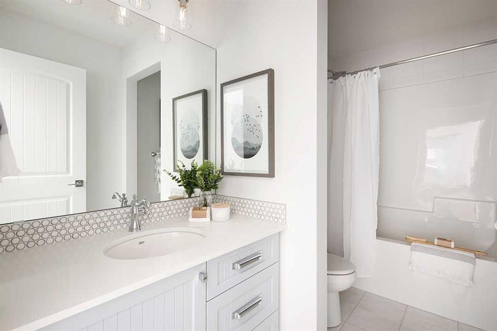 Midtown – 3 Midgrove Drive SW: This is a fantastic opportunity to own the current Shane Homes Showhome in Midtown. This Manhattan III showhome is brand new and never lived in with 2,299 sq ft, plenty of builder upgrades throughout, 4 bedrooms, 2.5 bathrooms and an attached double car garage. The open main floor greets you with a spacious open-to-above foyer, a bright white kitchen with a central island with seating for 4, ample cabinets for storage, stainless steel appliances including a built-in hood with custom cabinetry, walk-through pantry leads to the mud room; breakfast nook with west views; living room with custom mantle and surround feature on the electric fireplace; 2 pc powder room leads to the tiled mudroom with bench and lockers. The upper level features a primary bedroom with walk-in closet, spa-like 5 pc ensuite complete with soaker tub, glass shower with bench, dual sinks, and toilet with separate door; 3 additional bedrooms – 2 bedrooms with walk-in closets; central bonus room; 4 pc main bathroom; laundry room with folding shelf, hanging rod, shelf and additional linen storage. The lower level basement remains unspoiled. This corner lot has a west backyard backing onto a walking path and pond. This showhome located in Midtown of Airdrie is just steps away from the pond and pedestrian bridge, promenade with shops, and nearby schools. Airdrie is less than 20 minutes to the Calgary airport, less than 10 minutes to the QE II, and 15 minutes to north Calgary. Call for more info!