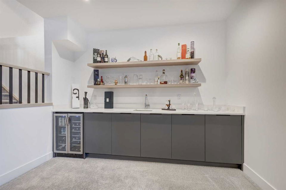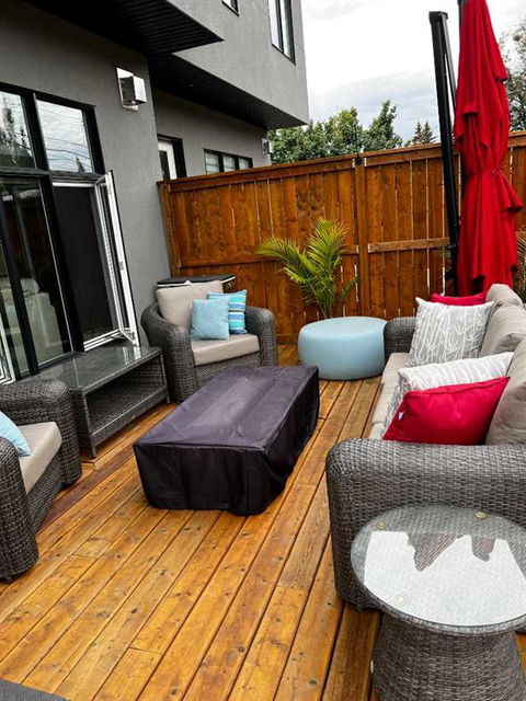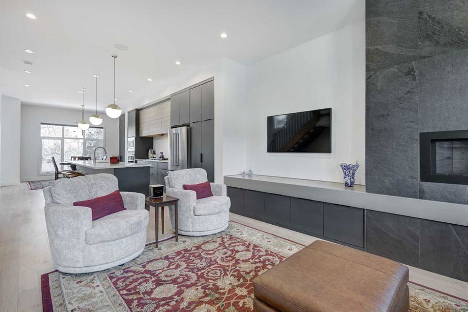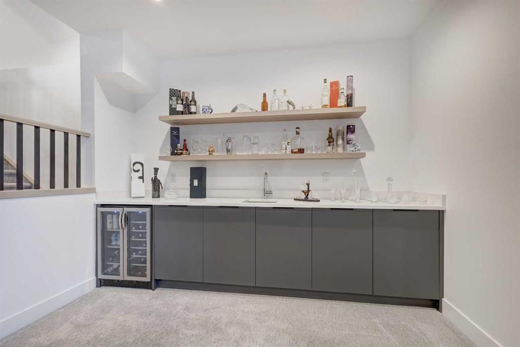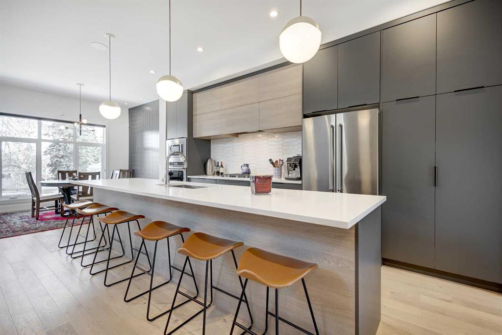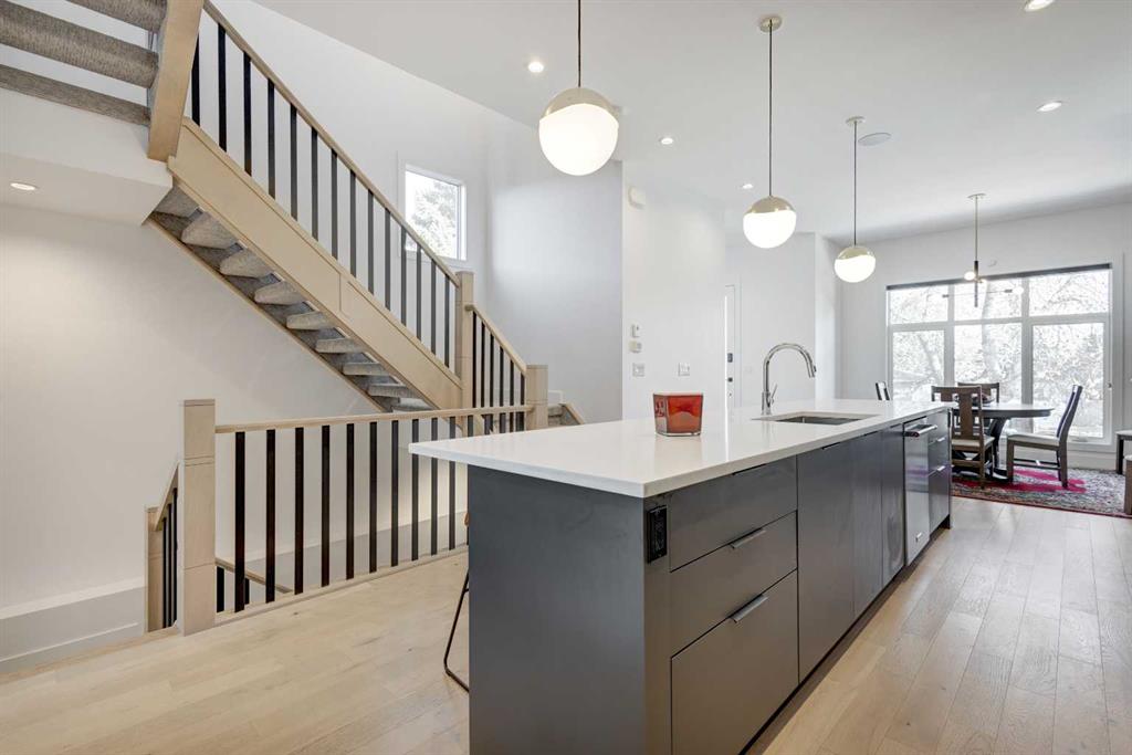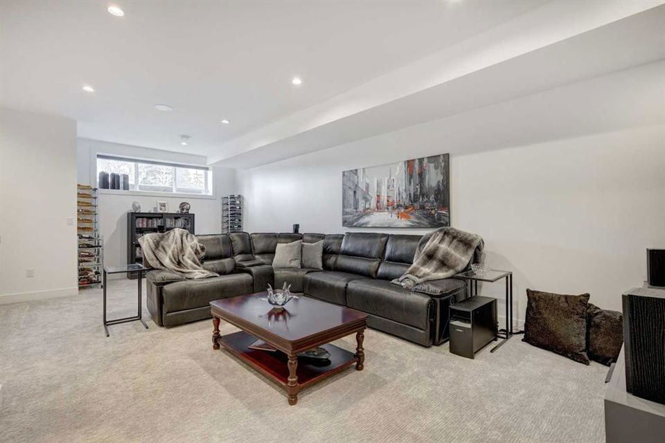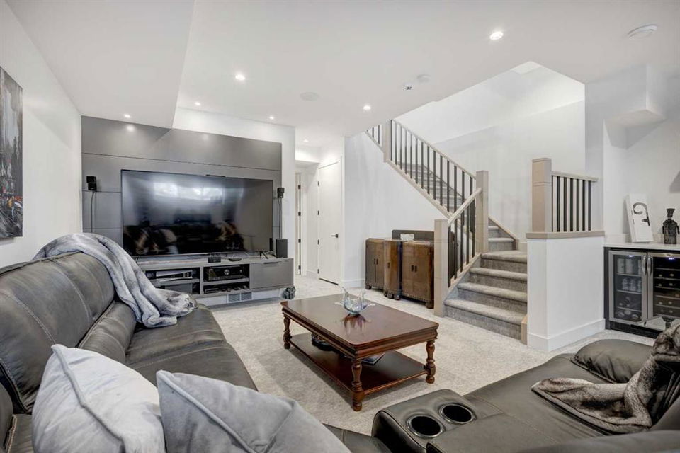 Welcome to this exceptional custom-built luxury home in the highly desirable community of Glenbrook. With over 2500 sq ft of developed space and a double detached garage, this 4-bedroom, 3.5-bathroom residence offers the perfect combination of elegance, sophistication, and modern design. Situated on a picturesque tree-lined street with proximity to parks, schools, and transit, this home is ideal for families and professionals alike. The thoughtful design and attention to detail are evident throughout, with premium finishes and an open-concept layout that flows seamlessly. As you enter, you are greeted by a spacious foyer and a mudroom featuring custom-built cabinetry. The bright, sun-drenched dining room boasts oversized windows, showcasing a designer shiplap wall that adds both character and warmth.The chef-inspired kitchen is a standout feature of the main level, offering a massive 14-foot island, gas range, built-in appliances, and custom cabinetry that provides ample storage. The living room features custom built-ins surrounding a cozy fireplace, creating the perfect setting for relaxing or entertaining. A half bath and a mudroom leading out to the backyard complete the main floor layout.Ascend the stairs to the upper level, where you’ll find the luxurious primary suite, featuring vaulted ceilings, a spacious walk-in closet, and a stunning ensuite with heated floors, a custom shower, a soaker tub, and dual vanities. Two additional generous bedrooms share the main bathroom, and a dedicated laundry room with sink and storage adds convenience. The fully finished basement is designed for both relaxation and entertaining, with a wet bar and beverage center, a large recreation room, a fourth bedroom, a full bathroom, and plenty of storage space. The west-facing backyard is a private oasis, featuring a large deck with dual gas lines, perfect for outdoor dining and relaxation, as well as a fully fenced yard and a double detached garage that’s insulated and drywalled.This home is packed with additional upgrades, including air conditioning, a Phantom screen, a floating staircase, Wi-Fi-enabled dimmer switches, custom blinds, and under-mount lighting. Plus, a front deck area allows you to enjoy the morning sun. Offering premium upgrades and a thoughtful design, this home is truly a rare find in one of Calgary’s most sought-after neighborhoods. Don’t miss the opportunity to make this your dream home – book your private showing today