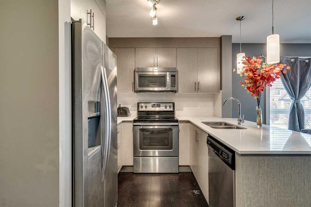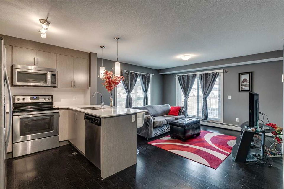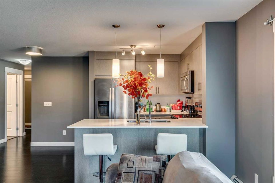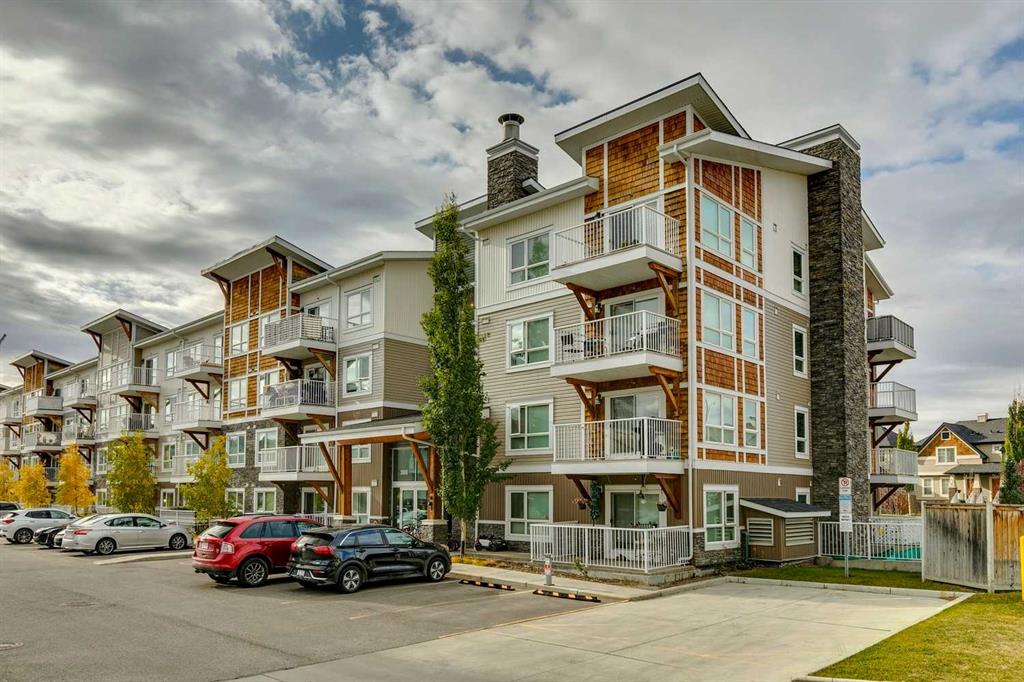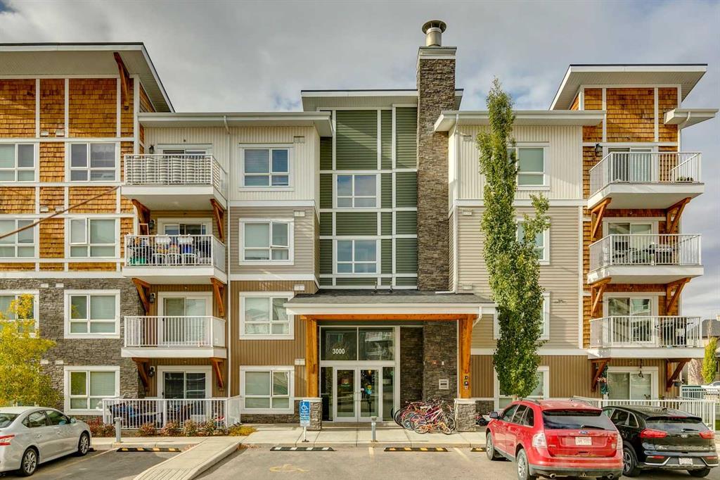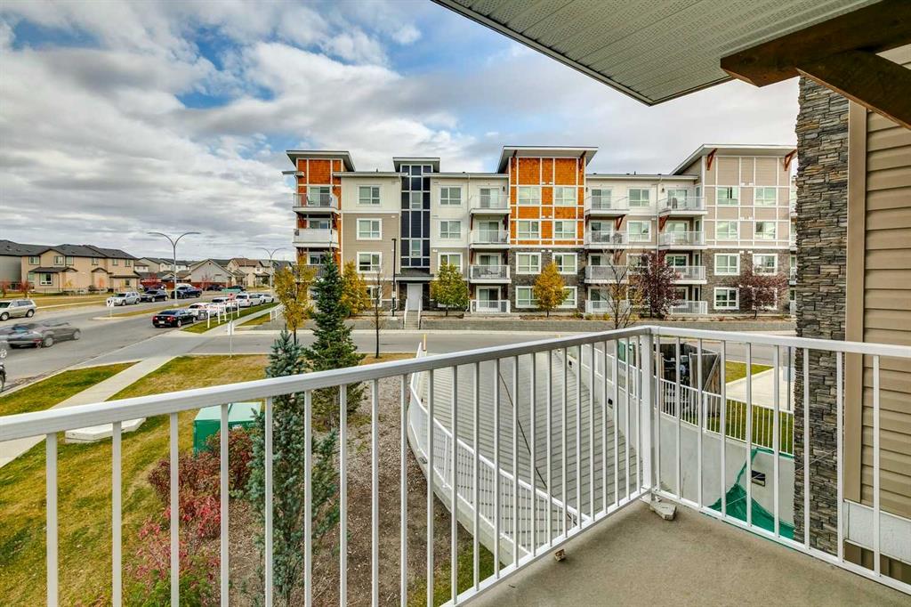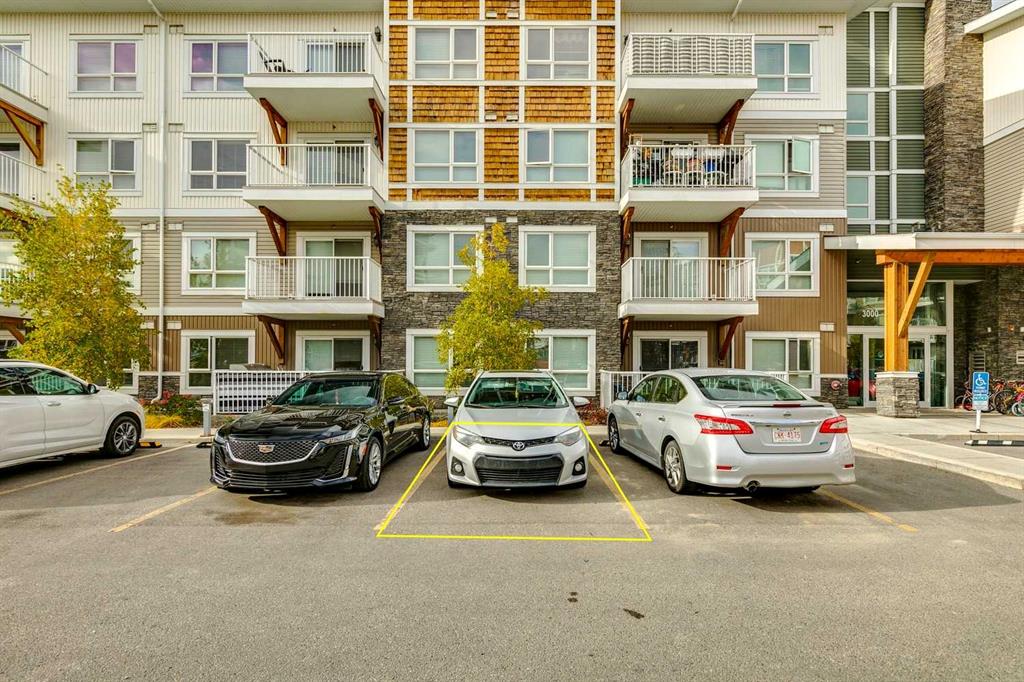 Orchard Sky – Skyview Ranch – #3202, 302 Skyview Ranch Drive NE: Situated on the 2nd FLOOR, this 855 sq ft CORNER UNIT features 2 bedrooms, 2 bathrooms and 2 TITLED parking stalls. This open floor plan includes cork floors throughout the foyer, kitchen, and living room and lots of windows for plenty of natural light. The bright kitchen has stainless steel appliances, a breakfast bar with seating for 2 and a dining area that opens to the living room providing access to the balcony; the primary bedroom has a walk-through closet and 4 pc ensuite with tile floors; a 2nd bedroom and 4 pc main bathroom complete this unit. The entry includes a mirrored closet, built-in desk space, and a stacked laundry room with space for storage. Included with this unit are 2 titled parking spots (one in the underground parkade; the second stall is located on the surface parking lot) and a storage unit in front of the unground parking stall. This a wonderful opportunity to own in popular Orchard Sky! Great location near green space, playgrounds, schools, restaurants, and transit with quick access to Deerfoot Trail (QEII), Stoney Trail, Country Hills Blvd, and a short commute to the airport. Call for more info!